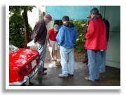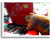 By Frank Maldari I promised my wife, Michele, that I wouldn’t use clichés to describe the tech session we held on June 14th, but first a little background. After acquiring my ‘72 GTV a few years ago, the previous owner advised rebuilding the Spica fuel injection pump. Thinking I had enough skills to do the removal, installation, and tuning, I extracted the pump and sent it to Wes Ingram for a complete rebuild. After getting the pump back, installing it, and tuning it with the help of Wes’s manual, I was able to bring the car’s performance up to where I felt it should be. Wes’s book was invaluable for this job, and I recommend it to anyone who is contemplating a rebuild or who just wants to make sure his or her Spica system is tuned correctly. Other resources are the Spica threads on the Alfa Bulletin Board and the Oregon chapter’s notes on Spica tune-up procedures. When Alfa Romeo introduced Spica fuel injection on US cars, it was considered a mystery and the belief, at the time, was that it was unreliable and beyond the understanding of the average enthusiast. Wes Ingram changed this perception, and through his book and rebuild service has kept many cars from being converted to Weber carburetors. The knowledge base for the Spica fuel injection system is better than it has ever been. I would have to say that everyone at the session had unique knowledge of the system that, when combined, proved to be beneficial to everyone who attended. We could have planned the tech session back in April or May, when Alfa owners are just getting their cars on the road, but we felt that the probability of a cold, wet weekend was just too high. Besides, it’s hard to get the engine up to operating temperature (185 deg F) when the temp outside is 40 deg F. So we scheduled the event for mid-June, looking forward to those nice, warm, dry weekends with just the hint of a breeze. As it turned out, we missed that by one day. However, being the New Englanders that we are, up went the tarp and to work we went. Fortunately, plenty of food and drink were provided by everyone (and, for those who asked, the marinated grilled eggplant recipe is included here). Members arrived at 11:00. Gene Durso wisely didn’t want to get his Spider wet and instead came with his striking Lotus (in the correct color for an Alfa event). Peter Walker and Tom Ducibella hopped over from Beverly, and Tom Frieberger showed great spirit in journeying from Vermont. Hugh Curtin came up from Wellesley, and Michael Leccese and Greg Stidsen rounded out the local contingent. Despite on-and-off rain, we managed to cover all the basics of removing the pump, checking for proper alignment of the throttle linkage, and the all-important reference screw gap. At this point, I discovered that my thermostat opens at too low a temperature (175 vs. the preferred 185 deg F)! From there, we proceeded to check the linkages from the bell crank to the pump without disturbing the gap dimension, and the link to the throttle plates. Finally, we worked our way around to the fuel cutoff solenoid for the fuel enrichment adjustment. Of course, you need the special tool for loosening the hold-down nut, but don’t worry — I have a homemade version that works well and I believe that the club also has one to loan out. At about 2500 RPM, the best setting proved to be halfway between CCW position where the engine starts to sound sluggish and then determining CW position by passing through the highest RPM (2800) to a position to where the engine becomes sluggish again (2300-2400 RPM). This was about 1½ turns between CCW and CW rotational positions. Of course, this is only a general description of what we did; in actuality, when doing the above procedures, you should have the Wes’s manual in front of you. Tom Frieberger demonstrated a test for a proper fuel mixture setting. The long rod is disconnected while the engine is at idle and a small increase of the butterfly plate will cause the RPMs to increase slightly for a well-tuned injection pump. As a side note, I have never been happy with my distributor timing. At 5000 RPM, the advance would only go about 15 deg when brought up to 2500 RPM. Further revving to 5000 RPM would not seem to increase the advance. Tom Frieberger methodically took apart the distributor and re-installed it, and I am happy to say that it now advances properly to 30 deg at 4500-5000RPM. This is confirmed during a road test at my secret race track. Without the proper distributor advance I was not utilizing the full potential of my rebuilt pump. Now I get instant response all up and down the RPM range. Unfortunately, we didn’t have time to cover some of the other basic maintenance issues, such as how to replace the Spica pump oil filter and lubricating the logic section. Also, we never got to the details about setting the timing belt and checking for the proper operation of the thermostatic actuator or fuel cutoff microswitch. I am thinking that we can run another tech session later in the year to cover the items we missed. What we did cover gave the average shade tree mechanic the confidence to check his or her Spica settings, and experienced enthusiasts a chance to share their considerable knowledge. I would like to thank everyone