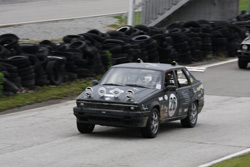 Also, I learned that all of the BS you read about the proper racing line and what they show you at the club time trial sessions is a useless load of crap for racing. Racing in conditions like this, you will never see anything that resembles "the line". Nor will you ever see anyone using it. In a crowded class like this, racing is a constant banzai session. It is amazing how aggressive the fast drivers are. Scream into the corners as hard as you can, shove the car into whatever hole appears and turn the wheel. Get on the gas as hard as you can and hope for the best. Amazingly, it seems to work on a fairly regular basis. I did my best to let the other Alfas go through unhindered. I would never admit to blocking, but sometimes guys chasing them had to put on their brakes suddenly when they caught up to me. I guess my car got real wide after Alfas went by — must have been swollen with pride in its fellows. When I finally came in, I was not a happy camper — disappointed in my performance and slightly sick from the exhaust fumes mixed with oil smoke coming into the cabin. At that point, I was having serious second thoughts about this whole effort. As the night wore on, drivers started taking their sleep turns, and our car circulated pretty uneventfully.