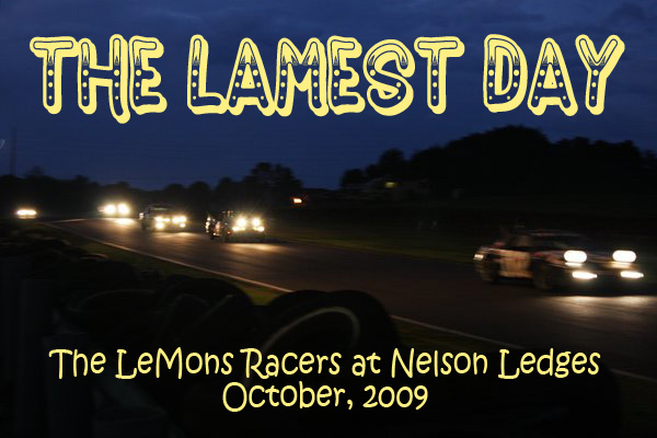 At Stafford Springs this summer, the LeMons organizers announced a true 24 hour race "The Lamest Day of Nelson Ledges" at Nelson Ledges in Ohio, former home of the SCCA's 24 hour enduro "The Longest Day". I think that, even before we left Stafford, all three teams were in agreement that Nelson Ledges was a go. A little research showed Nelson Ledges to be a very fast track. The ITS (SCCA IT class that Milanos would run in against cars prepared much like ours) track lap record was in the 95 mph range. Yikes! Even I could understand that, if the average is 95 mph, then lots of time must be spent at speeds above 95! I must admit that the thought of racing a $500 car for 24 hours at those kinds of speeds amongst other guys with similar crappy cars and limited racing experience was a little scary. Actually, a lot scary. It also sounded like a lot of fun, so we were all in. All of the teams took a small hiatus after Stafford, but pretty soon the preparation began. I had been invited to drive with Scuderia Limone and agreed, as long as they did not get mad at me for being so slow. Our usual Wednesday evening prep sessions began in earnest with a thorough assessment of the car's condition and then the generation of the necessarily long "to do" list. Man-o-man, talk about scary — drive shaft donuts, bad. Transaxle mounts, bad. CV joint boots, bad. Steering rack had come apart — literally. Cooling system issues. Bell housing mount replacement (RTV can only hold things together for so long). Tie rod ends, lower ball joints. Fortunately, the Carbotech race pads were still in great shape with lots of material left. Similarly, the Brembo rotors were fine. And, most amazingly, the Hankook "race" tires were also completely intact. One critical difference for this race was that, since it would actually run for 24 hours — on a track with no lighting — headlights became a critical requirement — which we would have to add back in because we had hacked them out for the last two races. The prior surgery had been of the "no going back" type, so an alternative mounting solution would have to be "engineered". We also discussed things we could do to make the car faster and still stay in the $500 budget. There had been constant "discussion" on changing the Verde transaxle to the lower final drive unit from a 2.5L car. Similarly, we had discussed going to heavier torsion bars, rear springs, and shocks, because this car leaned in the corners. The team committed to making these changes. Interestingly (and thankfully), careful shopping and trading of parts led to a completely cashless transfer of hardware. Now all we had to do was make the swap. The maintenance work took a lot more time than any of us had anticipated, but was nothing like the upgrade work. Sheesh. Many late nights and many pizzas later, it was time to put our used suspension parts in the car. Actually, it went pretty easily except for the torsion bar change — a prolonged struggle that will never be forgotten by any of us. I am convinced that the root of our problem is that the car might/must have been hit in the right front at one point, thereby making the torsion bar on that side a permanent part of the unibody. Hard to say for sure, but it looked that way to me — that is my story and I'm stickin' to it.