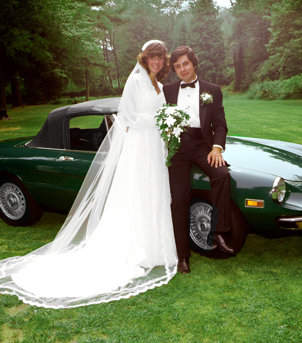 In 1981, Lauren & John DeWaele pose in front of their '74 Spider on