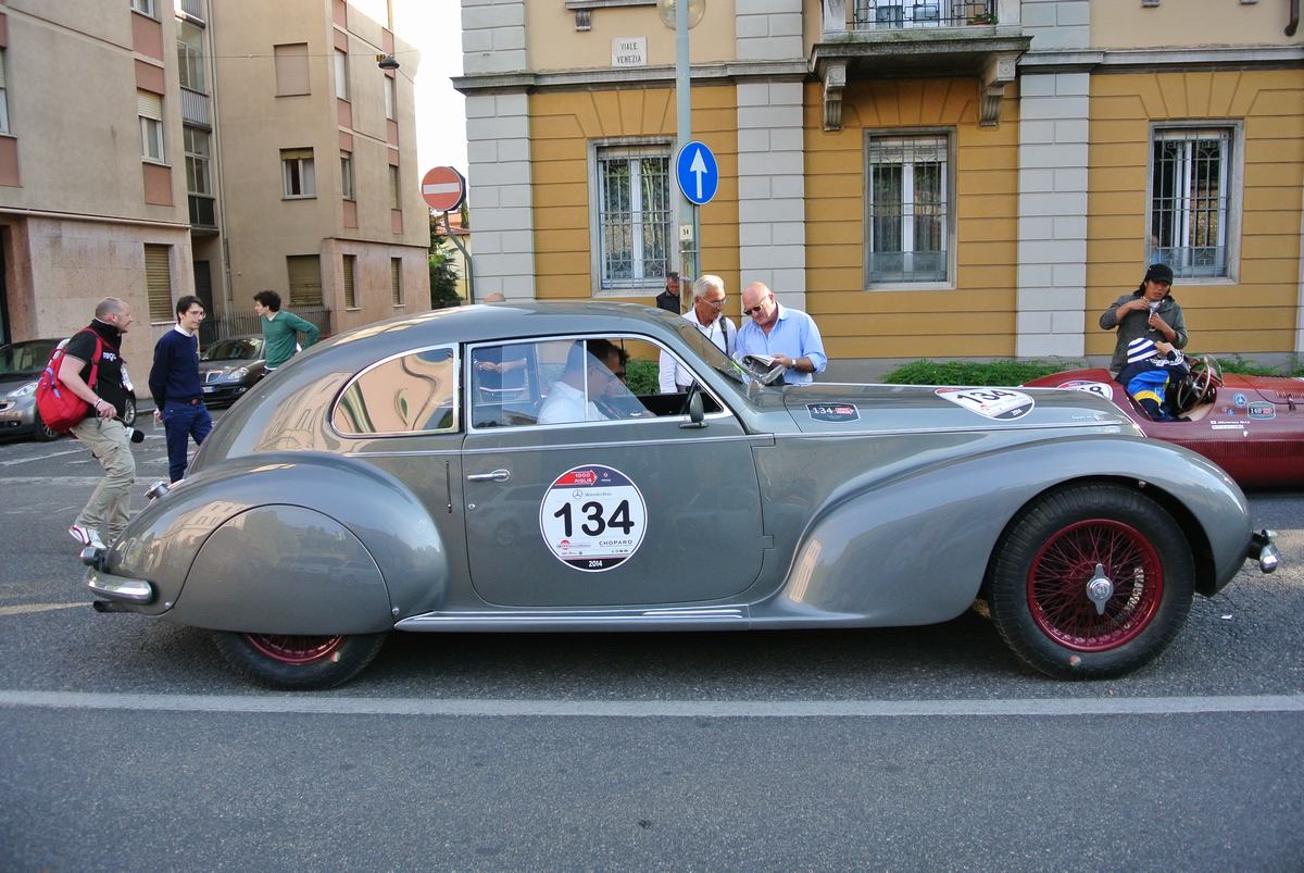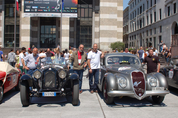 The current Mille Miglia are "historic re-enactments"; in reality, they are vintage rallies with time/speed/distance sections. Cars that ran in the original races from 1927 to 1957 are eligible to apply. The MM organization has a multi-stage selection process that is followed to winnow out the many entries. Cars that actually ran the race get preference; next, car models that ran the race, etc. Of course, this being Italy, there may be some wiggle room on selection, but in general they follow the rules pretty closely. All of the factory museums send cars and that probably uses up about 150 slots or so. Alfa had several cars this year, some 6C and 8C models and a 2000 Sportiva. Officially, 375 cars are accepted, and then a bunch more "tribute cars" and some other types. I think there were something on the order of 500 cars entered in one form or another.