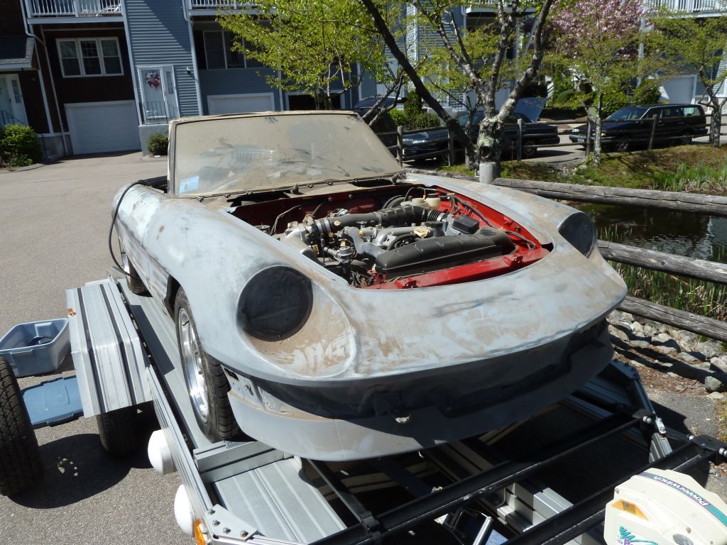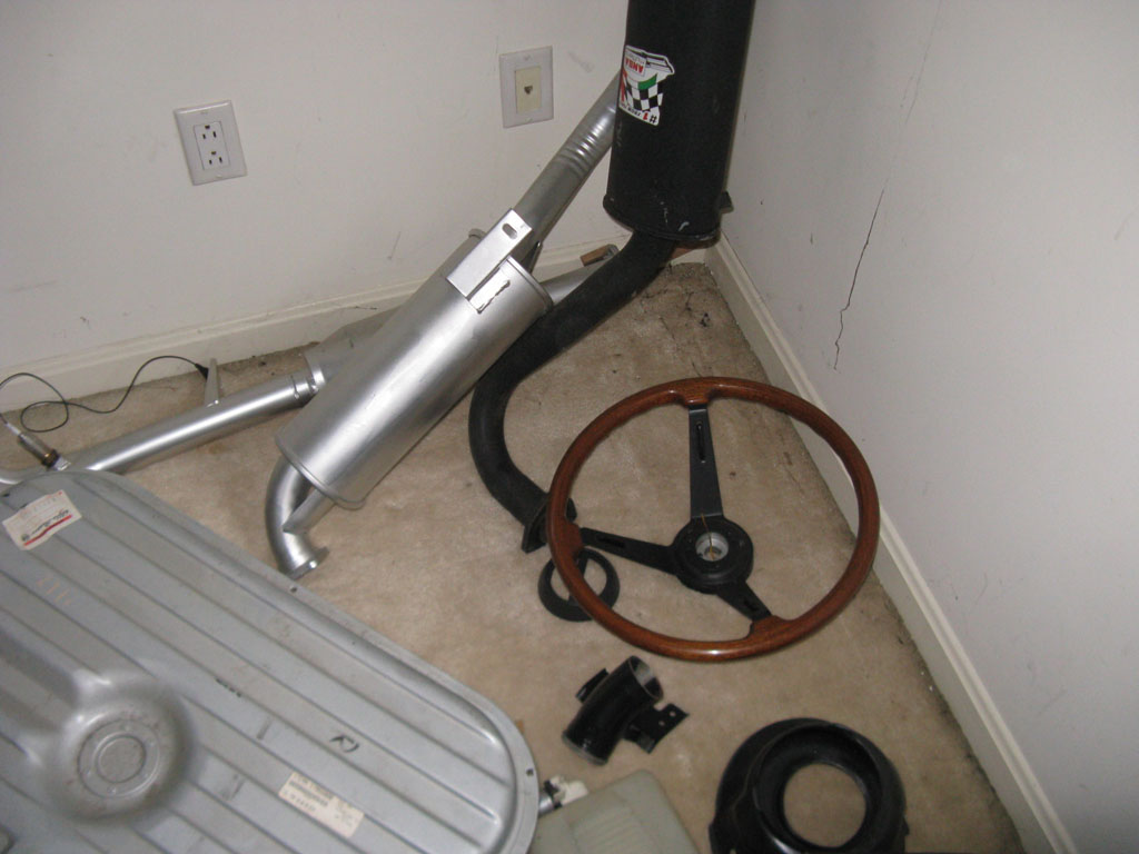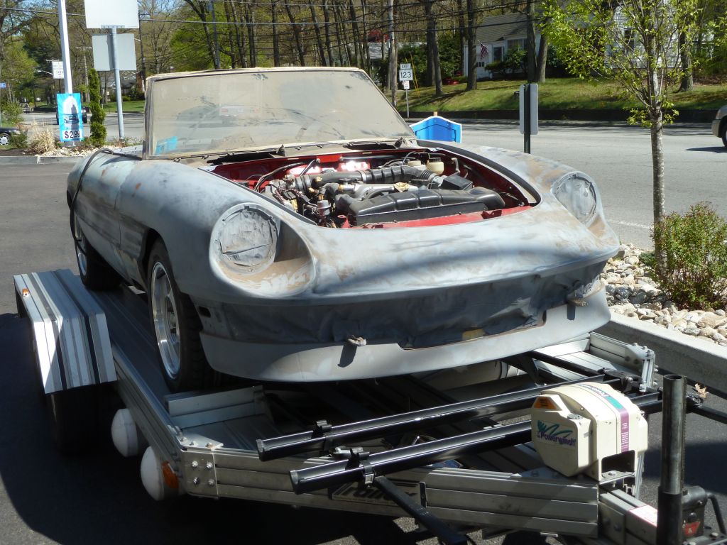 Parte Prima - The Buy It all started innocently enough a little over a year and a half ago – Spring of 2012. Things had been quiet on the 24 Hours of LeMons front. Brian Shorey had moved to the land of Then Tom Lesko circulated an email – a local widow had inquired if he could help her sell her late husband's '86 Spider. He had been restoring and modifying it to be his dream car. Unfortunately, before the project's completion, he had become ill and subsequently died. His dream died with him and the car had sat, moldering in his garage, for almost 20 years. Tom courteously visited to inspect the car. After the shock wore off, he sent around the email and some grim pictures describing a parts Spider that was available. I sent it around to some of the halfhearted Limonisti. Unfortunately, Jim Scutti got excited about the project. Jim is a Spider kind of guy and this was a project that appealed to him. Not me. I figured a Spider in LeMons racing was just plain stupid. I mean, the whole thing is stupid, but a Spider would take stupidity to a whole new level. They are very small, very open, slow, and did I mention very small and open? The thought of racing a Spider mirror-to-mirror with big GMs, Fords, Volvos, BMWs etc. just seemed plain stupid on the face of it, and in the words of Forrest Gump, "Stupid is as stupid does." However, never let it be said that stupid ever deterred us. What the hell, it's worth a look. Against his better judgment, Jonathan Kirshtein agreed to join in (see Forrest Gump above) – at least until we knew what we were up against. In a morbid curiosity sort of way, how could you not? Off we went to look the car over. When we finally got into the garage to inspect it, shock does not begin to describe the emotions that rolled over us. Overwhelming tragic loss and hopelessness were more like it. In a dark and cramped garage, sitting on sawhorses and covered with trash, in primer gray, sat a sad Spider shell. No rear suspension, no driveshaft, no rear axle, no interior (at all – metal wherever you looked), no trim, top, steering wheel, bumpers. In fact, nothing that made it a car. Windshield in place, engine and transmission in place, dash in and the speedo only showed 58K miles. Front suspension in. That was about it. Body an unbelievable mix of straight panels except for the outer rocker panels which were cut off the car. Rust-free-ish but plenty of holes and weird stuff. Inside the rocker area was an array of homemade reinforcement brackets running the complete length of the car. Big holes in the floor pans had been repaired by brazing in metal sheets – probably by the DPO before this DPO, because there were plenty that had not been repaired yet. Doors had been set in and completely Bondo'd over – no handle hardware or even holes for same. The complete rear valance had been removed and an aftermarket plastic panel added – with a quad-pack of round taillights. To make the picture even more appealing, the floor of the garage was not actually visible. It was covered entirely with trash of all types, in some places a good 4-6 inches deep. Holy Frickin' Moly. After the initial shock wore off, we started looking a little more earnestly. As we looked, the picture started to shift a little. There was bad sheet metal, but around all the suspension joints the car was rock-solid. In fact, most of the car was solid – and straight. It had not been hit anywhere. It seemed to have all the bracketry in place – all the stuff you need to hang parts properly – without the annoyance of having to fabricate every little thing you need. We turned up more and more parts – most of them cleaned, painted, and for the most part looking brand new. As the "inventory" grew, it looked less and less of a disaster. The engine bay was painted bright clean and red. Of course, it was clear the car had originally been black – which begs the question, why did he decide to paint a black car red? Couldn't he find a red one? Anyway, the engine looked pretty clean. Cam covers polished brightly – had he rebuilt the engine? In fact, everything in the engine bay looked clean and shiny. Labeled plastic bags everywhere with parts in them. Two sets of aftermarket springs, and aftermarket shocks. Rear end, spare axle shafts. The list kept growing. Then the widow asked if we wanted to see the rest of the parts upstairs! Two flights up and the shock continued. Alloy wheels. Seats freshly recovered and looking new. A new top, all kinds of trim – all either new or might as well have been. Ansa exhaust. Headlight buckets and trim. Brand new-looking bumpers, damn near perfect steering wheel. Most of the critical missing parts were there. Trunnion arm – all painted. Drive shaft – all perfect and painted, with new U-joints. Trailing arms all painted – with strange spring seats. Carpeted panels, brand new stock exhaust, brand spanking new fuel tank with ricambi originali sticker still on it. Sway bars, bumper shocks, trans console. WOW! It all looked there – certainly close enough to actually put a track car together. This was starting to look like it might work. In fact, now we were starting to worry that it might look too nice to pass LeMons muster! Team Huddle. Jim had taken the lead on negotiations and said the asking price was a little high, but within striking distance. Three things attracted us.