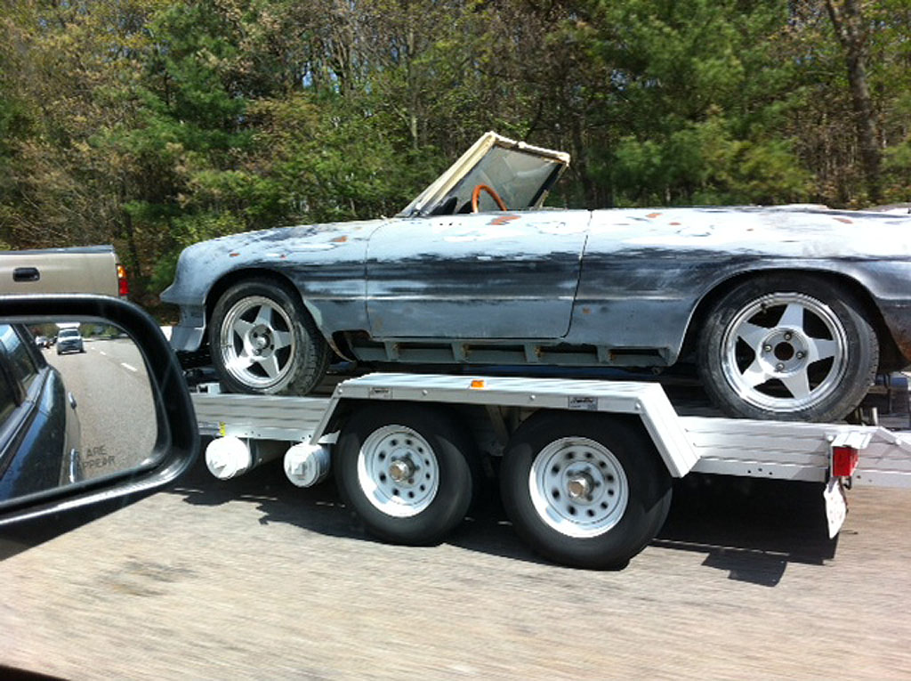 Further negotiations, deal done. Date set for pickup. Pickup – YIKES! This is when reality started to set in. The frickin' car would practically have to be rebuilt just to get it down on the ground and out of the garage. The one little fact that none of us actually owned a trailer or tow vehicle did not seem to bother anyone. Actually, there was not even a ready home for this thing either … details, details. Gotta think BIG PICTURE, baby! Like, what about a team name? The most important thing required to be successful in LeMons racing: Ya need a good team name. A lot of time spent on this – with no result to show. Much more time spent going through the rebuild in our heads (a thought experiment?), step by step, to plan what we needed to bring – no one wanted to make this trip a third time. Lists grew – parts, tools, jacks, jackstands, wheels with mounted tires, lug nuts, etc., etc. – all the minutiae that are required to hold a car together. Snow shovels to clear the garage floor (I am not kidding). Facemasks to prevent respiratory disease (again, I'm not kidding). While we made our plans for pickup, buyer's remorse started to set in. What are we doing? Racing a Spider in LeMons is STOOPID. Do you think the engine will turn over? Did anybody remember seeing a distributor? Was the ECU actually in the car? Are there any synchros in the gearbox? What about all the big gaps in the sheetmetal, especially in the places where the roll cage will anchor? Don't harsh my buzz man, we're going forward. Forza Alfa! In avanti verso la vittoria. We roped Eliot Shanabrook into picking the car up with his trailer. Meet us at 12 on Saturday. That gave us three hours to put the car together, get it off the sawhorses, pick up all the parts, and get them out of the condo. No problem. As it turns out, it really was no problem. It all went off like a Hollywood caper movie. Like The Italian Job. The only thing we were missing was the schedule sheet with the times, and practicing with stop watches. We actually had everything we needed. The car was nice and straight and everything went on easy-peasy. We were all familiar enough with the jobs at hand that we actually worked as a well-integrated team. Getting it off the sawhorses was interesting, but no Alfa hacks were harmed in the making of this car. Every now and again, I think back to that day and still cannot believe how well it went. Not sure if Eliot will ever be the same, however. He is particular about what he calls a racecar. This was not it. He enjoyed himself, though (at our expense). See part about "Stupid is as stupid does". Dropped the car at Jim's, everything put away, and beer by 3 PM. Totally amazing. Congratulatory backslaps all around. Now what? Drive fast, have fun, win races? Maybe……………. Send a suggestion, comment, question, or rude insult to Andy Help the cause! Buy some of the great leftover parts! See this ad or contact Jim Scutti. |