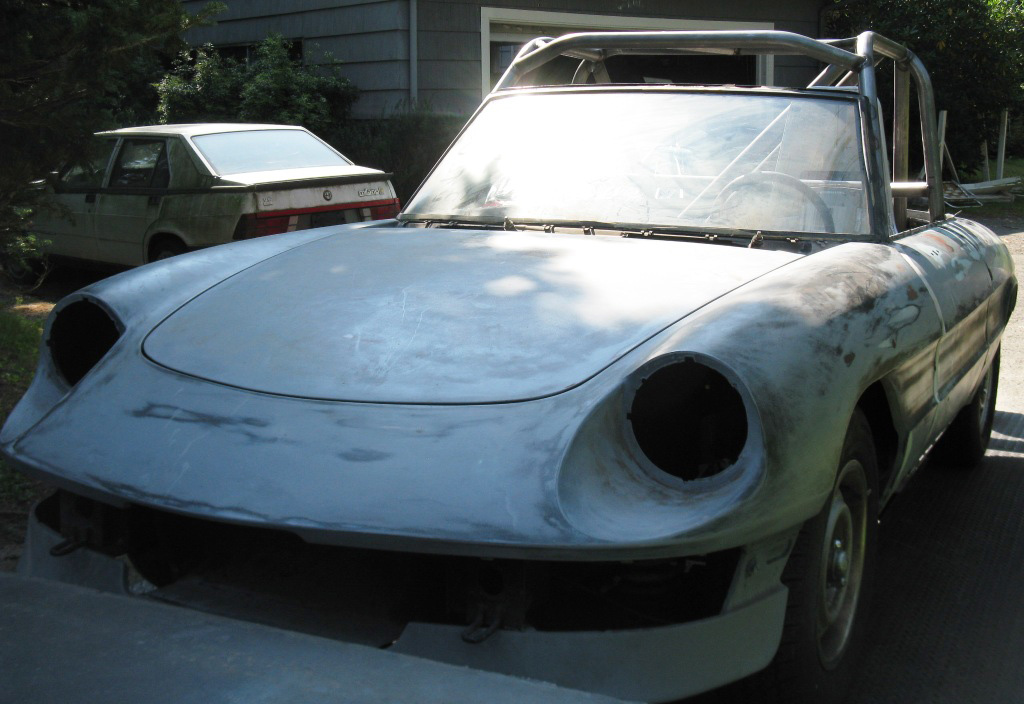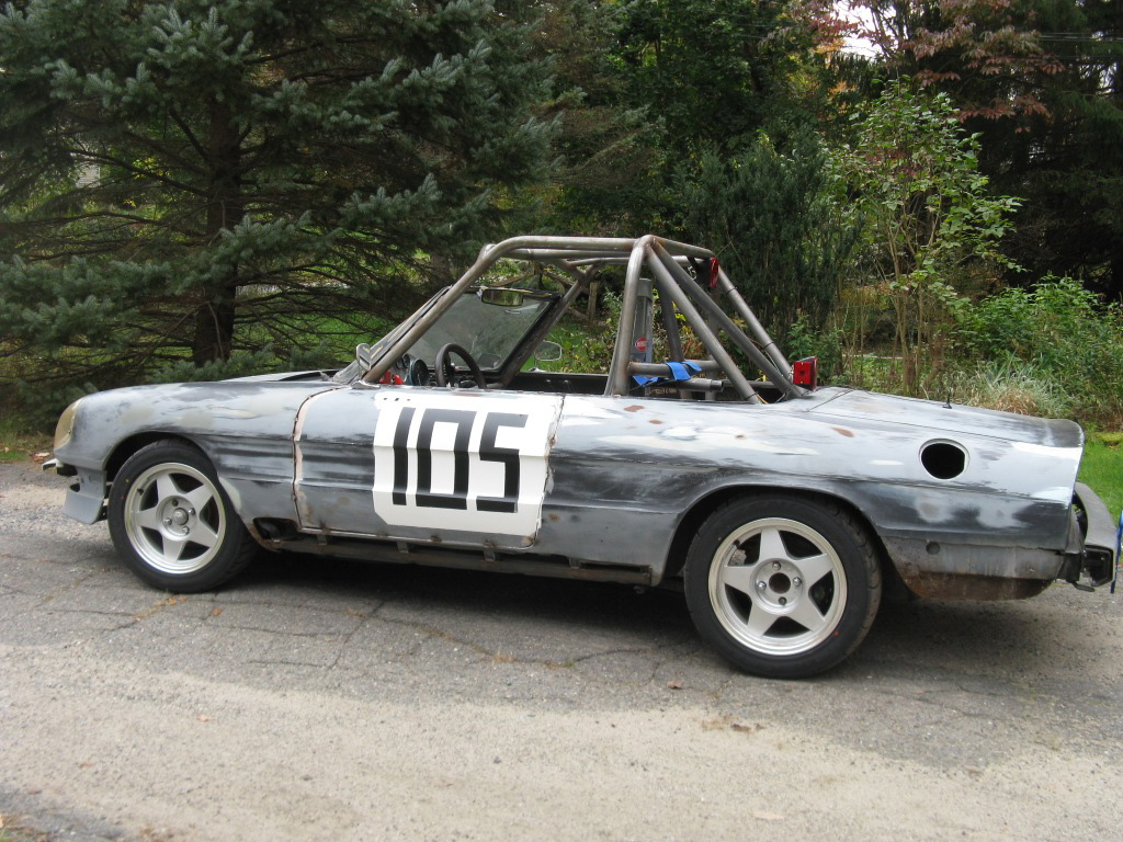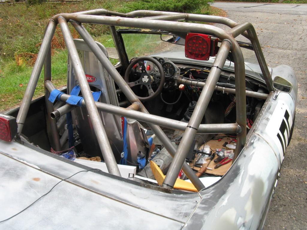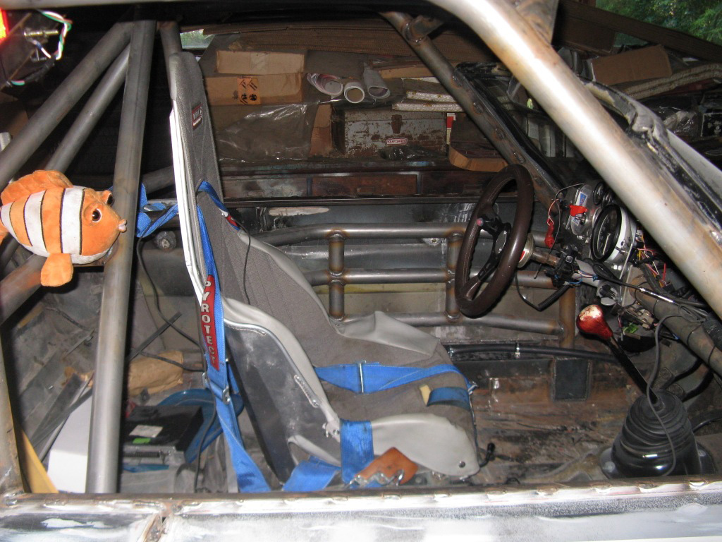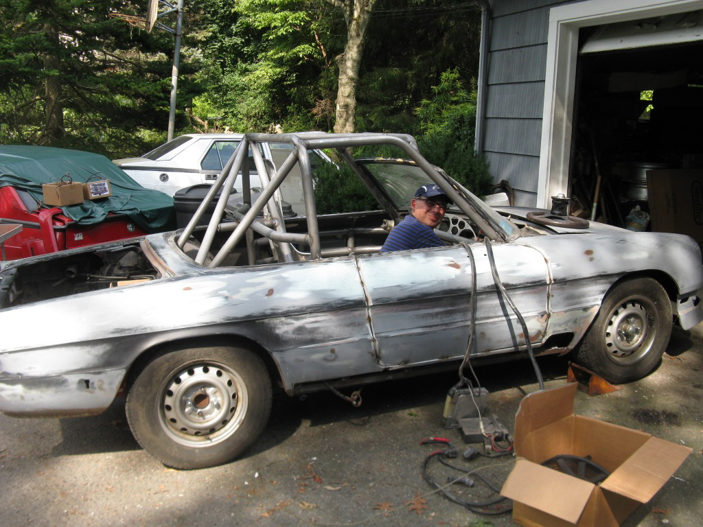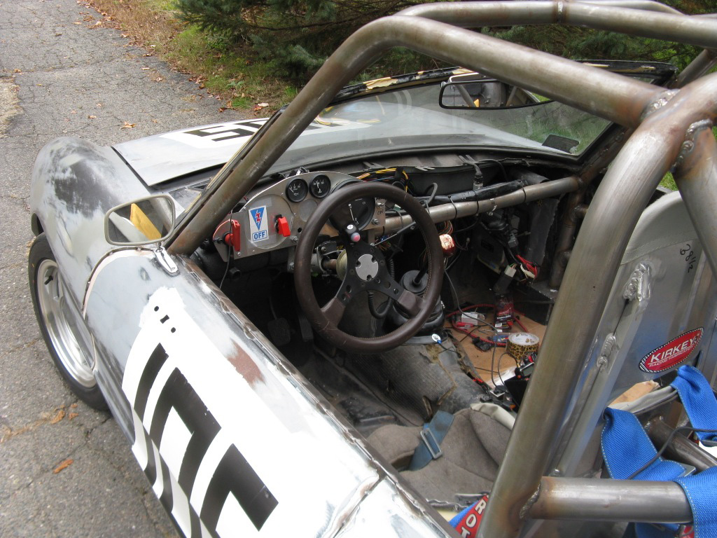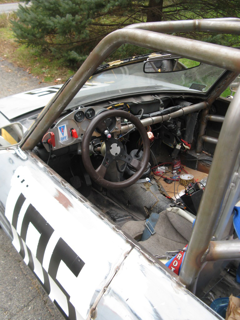 Parte Seconda — The Build After dropping the car at Jim's, our ardor cooled a little. There was a LeMons race scheduled for Loudon at the end of October and I really pressed to get the team going. It would be good to sustain momentum. I felt that, if we busted our butts, we could make it. Even with a Unfortunately, both Jim and Jonathan were heavily committed to riding in the Pan Mass Challenge (a 200-mile bike ride fundraiser for cancer research) at the end of August, and neither had even taken their bikes out of storage yet. They could see a little time devoted to the car, but most of their free time had to be spent in preparing for the Pan Mass. That put the October event out of reach. Not encouraging; nevertheless, we did spend some time on the car. In reality, a project like this is a major undertaking, and deep down inside we knew it. It is axiomatic —reviving old cars that have been sitting for a long time are giant time sinks. They are going to cause you much frustration and expense, and then more frustration and more expense. They become an exercise in serial diagnosis and repair. Find a problem (easy), find out what is causing the problem (not always easy), fix it only to find that the next item in line in that system also is broken or stuck or missing or otherwise nonfunctioning. And repeat. And repeat. Stubbornness is a really useful character trait for this sort of thing. Of course, not only were we faced with bringing back an old dormant car of unknown mechanical history, but we also had to build it to the race sanctioning body's rules. And there are A LOT OF RULES. Pages of rules about everything from roll cage to ID numbers. So much work to do, most of which, honestly, we severely underestimated. Then, of course, there is reality — sometimes it is not the last owner who screws things up. We made plenty of mistakes, most of which came back to bite us good, slowing progress even more. All of which I am very sorry to say, but ya know, it is what it is. The first order of business was to see if the engine would turn over and run. It really was critical because, if the engine was hosed, it would definitely affect our plans — in a bad way. We really needed to make sure it would turn over. If the gearbox would turn, that was even better. As "delivered", the car had no fuel system (up to and including gas pedal), no exhaust headers (or any other part of the exhaust system), no coolant or cooling system, no alternator, no battery. Pffft, no problem. It did have an ignition switch and a key, so we're good. In order to run the car, we had to put in the fuel system so we could get gas into the engine. Tank, filler neck, wiring, pumps, hoses, filters, gasoline. The engine came wired up (at least it looked complete) and a cursory check said the wiring was okay. We did have to find and install the timing sensors on the bell housing. We plumbed up all the vacuum hoses on the plenum and throttle body. Installed plugs and wires. We put oil in it, hooked up the battery. Good to go. Step 1 — It turned over by hand easily, so that was encouraging. Sigh of relief. Step 2 — Great anticipation — "FIRE IN THE HOLE!". Hit the key — dead silence. RATS! There was a severe voltage drop, but NO ENGINE TURNING AT ALL. SURPRISE! I have to admit that I really did expect it to fire right off, so I was disappointed. No matter. A little time with the DVOM and we knew we had switched 12 volts everywhere up to and including the starter. That meant the starter was frozen. Rats again. Yanked it out of the car and, while Jim and I started discussing what/where we would get new starter, Jonathan ignored us. He took the LeMons approach, and got Medieval on it. With the starter on the garage floor, with cables hooked directly up to the battery, and the starter HUMMING in an ominous way, Jon started whacking the solenoid and body with a hammer. Pretty soon that starter was turning in fits and starts and jumping around on the garage floor like it was possessed — a really funny sight. Just the way Bosch drew it up, I'm sure. Excellent! Our starter was "fine". Put it back in the car, hit the key, and the engine turned over nice and strong. The engine did not fire right off, which was no surprise. There is not much you can do on an Ljet system to influence that. We were getting fuel. Ignition timing is fixed by the system. Nevertheless, we fiddled with what we hoped would help. At top dead center, the rotor looked like it was in a correct orientation. Cap and rotor looked fine. Coil was acting properly. Checked all the grounds, reseated connectors, checked to make sure we had fuel pressure, and kept grinding away. Then, the engine coughed and started to run, spat, and died. YES! A little more wishful thinking and key turning and it finally fired and ran. It revved. It ran like home made crap, but it ran. Woo-hoo! IT RAN! It ran ... for a little while. It would not idle and would not rev to any high numbers — but it ran. We were ecstatic. It ran! We'll get to the details and sort it out. No telling what had been done to it before we got our mitts on it, but we'll get it running right (more on this anon). Starting at this point, the car lay dormant through the summer and into the fall. Jim and I started working on things like brakes — rebuilding what we had and finding parts we needed. Then one day I got an email from Brian Shorey pointing out to us that there was an ex-LeMons racer for sale in Vermont for very little money. A Geo Metro — with a NEMO theme. Jim and I actually remembered seeing it at Loudon before (FYI, a 1-litre 3-cylinder with a 3-speed automatic is a really slow and awful race car, just in case you were wondering). Why do we care about a Geo Metro race car? Because it has a driver seat, harness, and fuel cell in it! Plus, for sure there will be other bits and pieces that will be useful. We needed a race seat and harness. The fuel cell was a bonus, and they are very expensive. I w