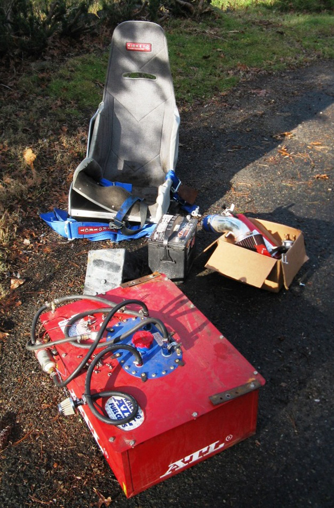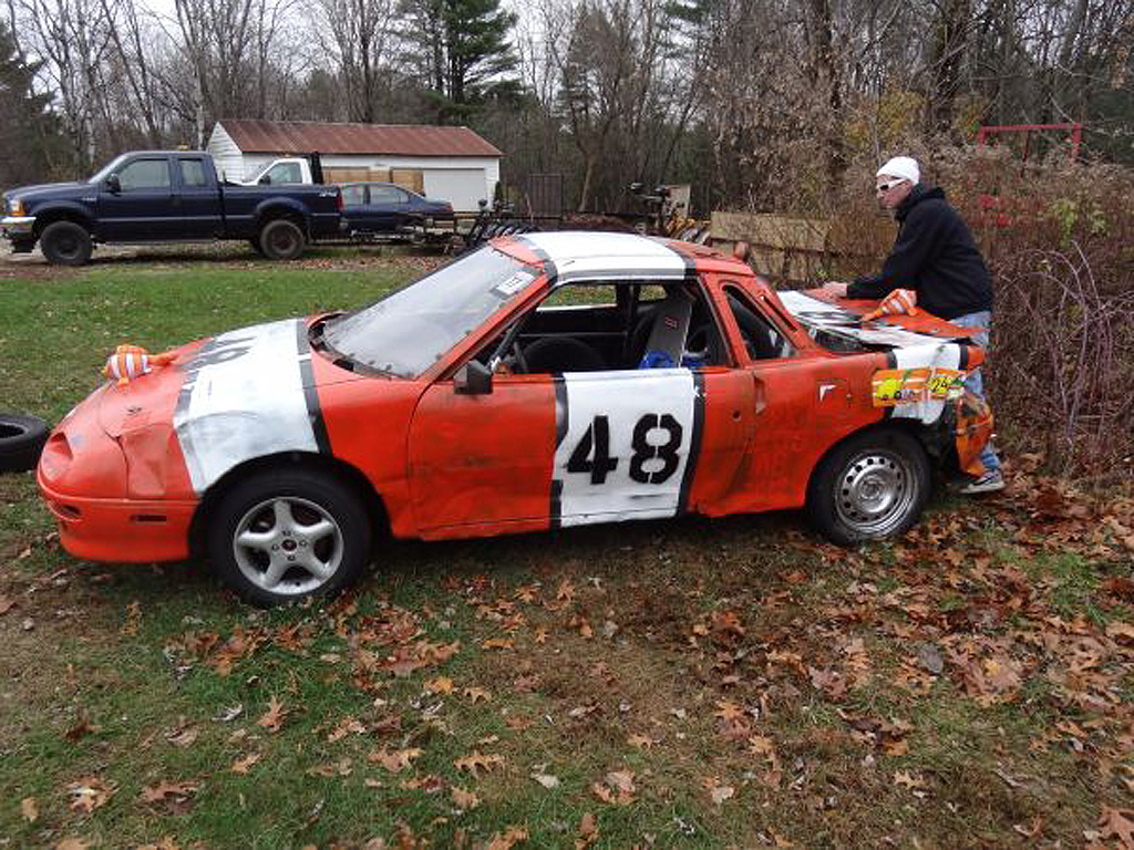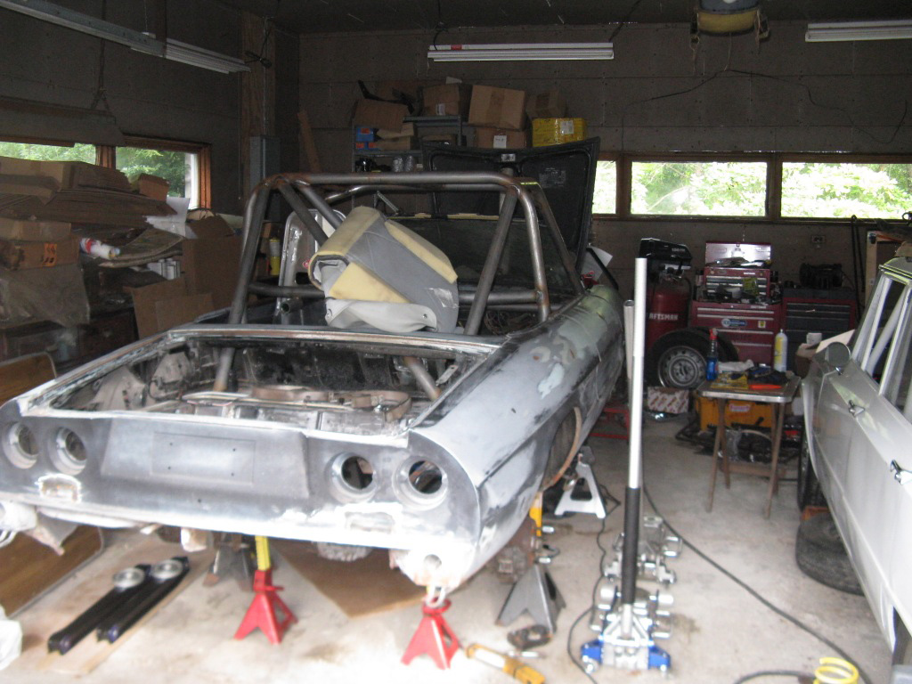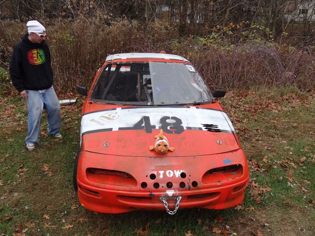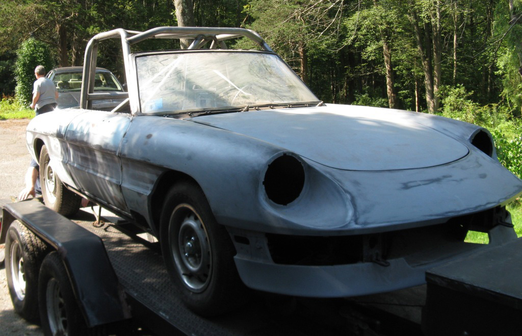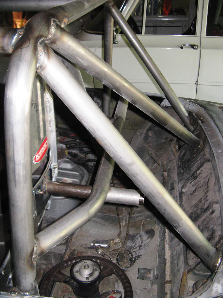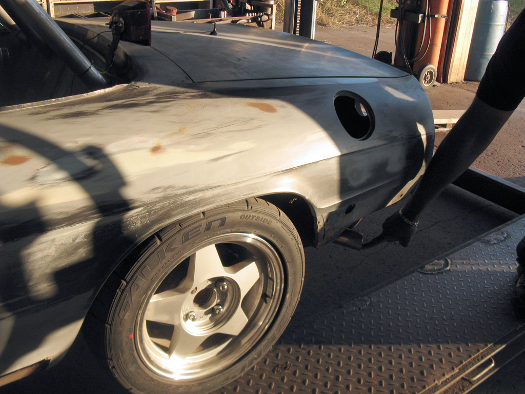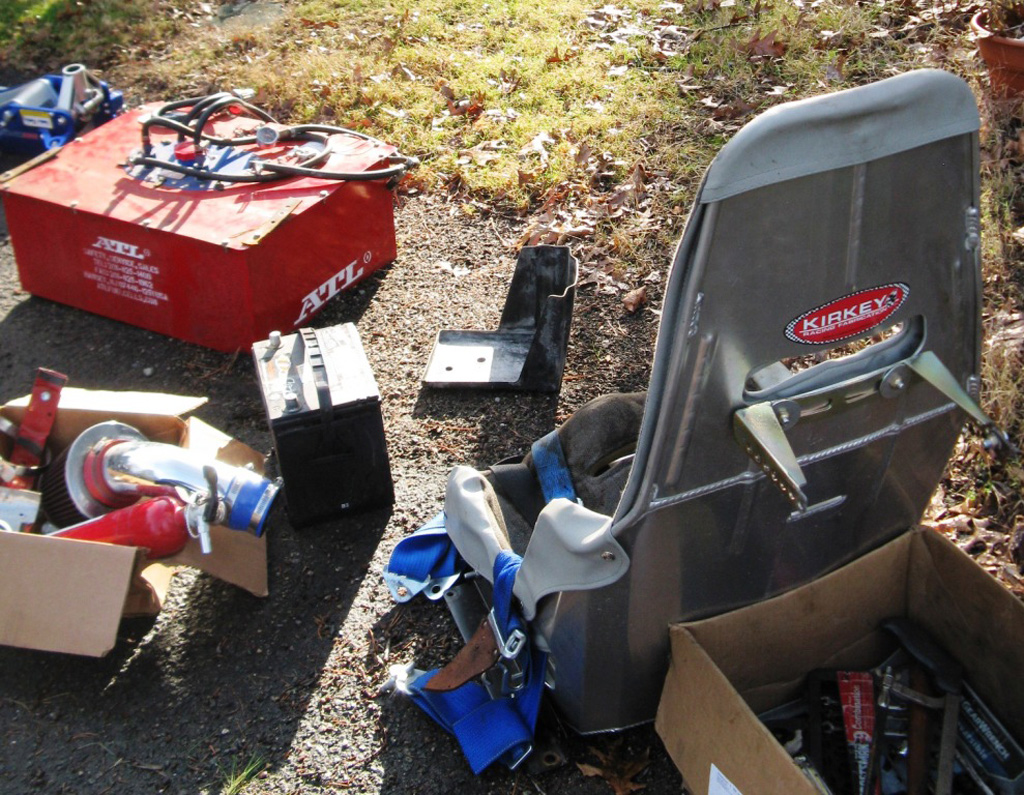 Parte Seconda — The Build After dropping the car at Jim's, our ardor cooled a little. There was a LeMons race scheduled for Loudon at the end of October and I really pressed to get the team going. It would be good to sustain momentum. I felt that, if we busted our butts, we could make it. Even with a Unfortunately, both Jim and Jonathan were heavily committed to riding in the Pan Mass Challenge (a 200-mile bike ride fundraiser for cancer research) at the end of August, and neither had even taken their bikes out of storage yet. They could see a little time devoted to the car, but most of their free time had to be spent in preparing for the Pan Mass. That put the October event out of reach. Not encouraging; nevertheless, we did spend some time on the car. In reality, a project like this is a major undertaking, and deep down inside we knew it. It is axiomatic —reviving old cars that have been sitting for a long time are giant time sinks. They are going to cause you much frustration and expense, and then more frustration and more expense. They become an exercise in serial diagnosis and repair. Find a problem (easy), find out what is causing the problem (not always easy), fix it only to find that the next item in line in that system also is broken or stuck or missing or otherwise nonfunctioning. And repeat. And repeat. Stubbornness is a really useful character trait for this sort of thing. Of course, not only were we faced with bringing back an old dormant car of unknown mechanical history, but we also had to build it to the race sanctioning body's rules. And there are A LOT OF RULES. Pages of rules about everything from roll cage to ID numbers. So much work to do, most of which, honestly, we severely underestimated. Then, of course, there is reality — sometimes it is not the last owner who screws things up. We made plenty of mistakes, most of which came back to bite us good, slowing progress even more. All of which I am very sorry to say, but ya know, it is what it is. The first order of business was to see if the engine would turn over and run. It really was critical because, if the engine was hosed, it would definitely affect our plans — in a bad way. We really needed to make sure it would turn over. If the gearbox would turn, that was even better. As "delivered", the car had no fuel system (up to and including gas pedal), no exhaust headers (or any other part of the exhaust system), no coolant or cooling system, no alternator, no battery. Pffft, no problem. It did have an ignition switch and a key, so we're good. In order to run the car, we had to put in the fuel system so we could get gas into the engine. Tank, filler neck, wiring, pumps, hoses, filters, gasoline. The engine came wired up (at least it looked complete) and a cursory check said the wiring was okay. We did have to find and install the timing sensors on the bell housing. We plumbed up all the vacuum hoses on the plenum and throttle body. Installed plugs and wires. We put oil in it, hooked up the battery. Good to go. Step 1 — It turned over by hand easily, so that was encouraging. Sigh of relief. Step 2 — Great anticipation — "FIRE IN THE HOLE!". Hit the key — dead silence. RATS! There was a severe voltage drop, but NO ENGINE TURNING AT ALL. SURPRISE! I have to admit that I really did expect it to fire right off, so I was disappointed. No matter. A little time with the DVOM and we knew we had switched 12 volts everywhere up to and including the starter. That meant the starter was frozen. Rats again. Yanked it out of the car and, while Jim and I started discussing what/where we would get new starter, Jonathan ignored us. He took the LeMons approach, and got Medieval on it. With the starter on the garage floor, with cables hooked directly up to the battery, and the starter HUMMING in an ominous way, Jon started whacking the solenoid and body with a hammer. Pretty soon that starter was turning in fits and starts and jumping around on the garage floor like it was possessed — a really funny sight. Just the way Bosch drew it up, I'm sure. Excellent! Our starter was "fine". Put it back in the car, hit the key, and the engine turned over nice and strong. The engine did not fire right off, which was no surprise. There is not much you can do on an Ljet system to influence that. We were getting fuel. Ignition timing is fixed by the system. Nevertheless, we fiddled with what we hoped would help. At top dead center, the rotor looked like it was in a correct orientation. Cap and rotor looked fine. Coil was acting properly. Checked all the grounds, reseated connectors, checked to make sure we had fuel pressure, and kept grinding away. Then, the engine coughed and started to run, spat, and died. YES! A little more wishful thinking and key turning and it finally fired and ran. It revved. It ran like home made crap, but it ran. Woo-hoo! IT RAN! It ran ... for a little while. It would not idle and would not rev to any high numbers — but it ran. We were ecstatic. It ran! We'll get to the details and sort it out. No telling what had been done to it before we got our mitts on it, but we'll get it running right (more on this anon). Starting at this point, the car lay dormant through the summer and into the fall. Jim and I started working on things like brakes — rebuilding what we had and finding parts we needed. Then one day I got an email from Brian Shorey pointing out to us that there was an ex-LeMons racer for sale in Vermont for very little money. A Geo Metro — with a NEMO theme. Jim and I actually remembered seeing it at Loudon before (FYI, a 1-litre 3-cylinder with a 3-speed automatic is a really slow and awful race car, just in case you were wondering). Why do we care about a Geo Metro race car? Because it has a driver seat, harness, and fuel cell in it! Plus, for sure there will be other bits and pieces that will be useful. We needed a race seat and harness. The fuel cell was a bonus, and they are very expensive. I w