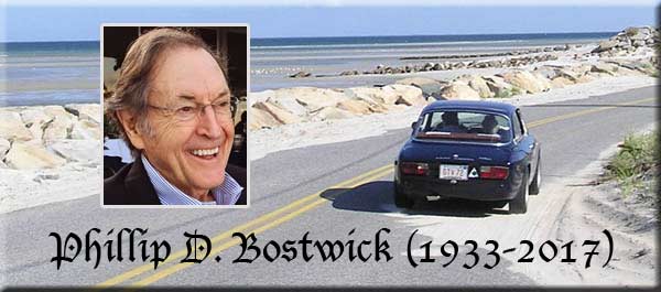 In Memoriam AONE members are deeply saddened to learn of the loss of one of our most enthusiastic members. Phil Bostwick owned a beautifully restored, bumperless blue 1972 GTV. He joined many of our driving tours with that car and caught the bug so much that in 2011 he began organizing his own tour, on his Cape Cod home turf. Phil organized and led this tour, affectionately dubbed "The AONE Cape Crusade," for six successive years, from 2011 to 2016. He was planning to lead the seventh Cape Crusade in October of 2017, when he was diagnosed with an inoperable brain tumor and ordered to stop driving. Phil was such an eager participant in AONE's driving tours that each winter he would insist that the directors establish as soon as possible the dates of the next season's tours. This was so that for the weekend of the Indian Summer Sortie he could book his favorite room at his favorite B&B in western Massachusetts (the only room there with an en-suite shower high enough for him to be able to stand up in). Driving sports cars was one of Phil's many enthusiasms. His GTV was just one of several very desirable Italian (and other) sports cars he had owned. He had, at different times, owned an AC Ace, a Ferrari 250 Lusso, a Ferrari 250 SWB, and an F2 Cooper vintage race car. (Among the less exotic cars he had also owned were an Austin-Healey and a Jaguar sedan.) He loved to show photos of the Ferraris, the AC, and the Cooper and to tell about how no engine was quite as sweet as the legendary Ferrari 3-litre V-12. While in college at Stanford in the early 1950s, he had the good fortune to be a spectator at some of the sports car races that hold a significant place in the history of the development of American sports car competition. In 2014 and 2015 he contributed to Velocissima two fascinating articles telling about this "Golden Age of Racing" (Part 1 and Part 2). The second of these articles concludes with Phil's account of how he met and got to know another Phil: Phil Hill, the first American (and still only one of two Americans ever) to win the Formula One world championship. It also includes several photos of the sports cars our Phil had owned over the years (example below). Another of Phil's enthusiasms was films. His home library included many books about cinema and countless DVDs and video tapes. He was an integral contributor to the organizing of AONE's winter film screenings. He helped to select the films and for our second ever film screening, in November 2014, he provided footage of his own of 1950s sports car and Formula One racing. Phil, who had been a pilot in the US Navy, was also an enthusiastic flyer. He owned a Stearman biplane and regaled fellow AONE members with stories of flying from the east coast to Chicago for meets. In his professional life, Phil was a Washington-based trial lawyer and partner at Shaw, Pittman, Potts, and Trowbridge (he met Phil Hill while in California for a trial; during an off-moment, Phil simply walked over to Hill's Santa Monica restoration shop and introduced himself). Upon retirement, Phil and his wife Jean Ann settled permanently in Massachusetts. He was fortunate in being able to have home care right up to the end and passed away, surrounded by his family, in Jean Ann's and his beautiful home overlooking Nauset Beach in East Orleans. In addition to Jean Ann, Phil is survived by his sons, Dwight and John, his daughter, Jennifer, six grandchildren, and Chloë, their white labrador. They have our deepest sympathies. Click here for the published obituary.