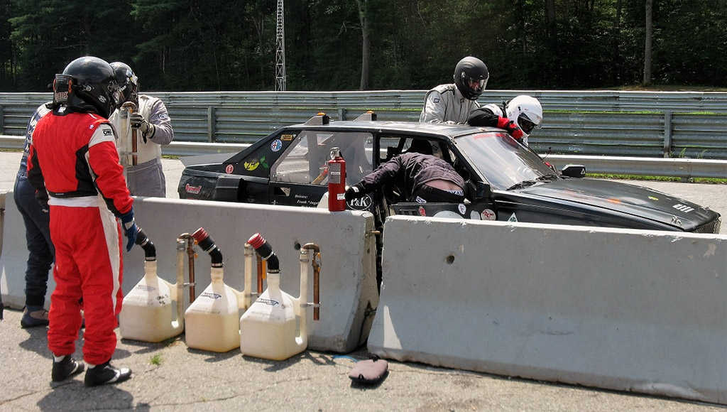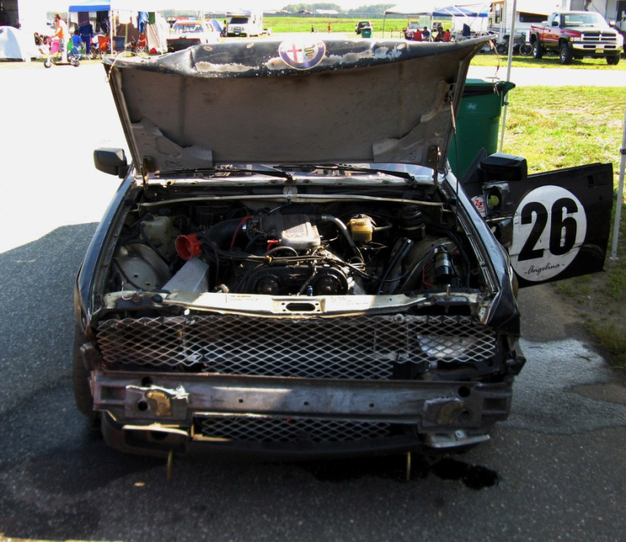 Two articles for the price of one! First, we have a fine piece written by Greg Seferian, leader of Team Pro Crash Duh Nation, a group of loonies who are responsible for fielding an Alfa Romeo Milano in a series of 24 Hours of LeMons races — and have done for many years. They've become quite competitive of late, getting gobs of power out of the 3-liter engine, tweaking the handling to near perfection, and even getting it to stop without having to crash into things. The report here is from this year's race at Thompson Speedway — read all about the ups, downs, and sideways: Season 9, Episode 2 of the And then we have a companion piece written by Andy Kress, a Pro Crash Duh Nation teammate, long-time AONE member, Performatek Alfa parts supplier, and a guy who's contributed lots of fun articles for our edification and enjoyment over the years. Here's his perspective: Now what? The team competed in one more race this season, at New Hampshire Motor Speedway in Loudon, NH, the weekend of October 21-22. Click here to see the results Do not miss the video of Greg's hot lap (at the bottom) — very fast and great sound! (Click on the thumbnails below for a larger view, and then