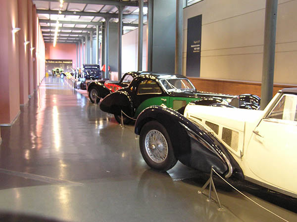 This gallery is brightly lit and about fifty yards long. It is devoted to examples of one car model: the Bugatti type 57S coupé Atalante (plus a cabriolet).