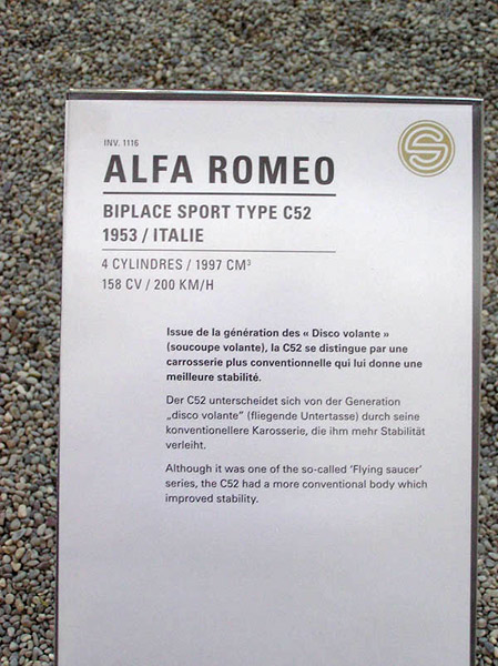 The eighth Alfa at the Museum is also a unique car; it is a 1953 C52 Sport.