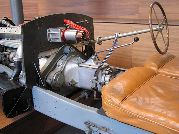 The Schlumpf brothers had tried and failed to acquire the actual Esders Royale. But the brothers owned a number of spare Royale parts (for instance the factory had built extra 12.7-litre engines for railroad applications, in order to amortize the financial losses of the Royale project, and these engines were once relatively easy to acquire). During the National Museum period, a decision was made to build this third Schlumpf Royale from the spare parts—with additional parts fabricated from scratch—on the model of the actual Esders Royale. The actual Esders Royale (serial number 41111) was sold to its original purchaser, Armand Esders, with a two-seat cabriolet body designed by Ettore Bugatti's talented son, Jean. A later owner, Henri Binder, had the car rebodied as a coupe de ville, and the car, now known as the Royale Coupe de Ville Binder, belongs to Volkswagen AG, parent company of the revitalized Bugatti brand. (According to Wikipedia, VW bought the Royale Coupe de Ville Binder in 1999 for $20 million.)