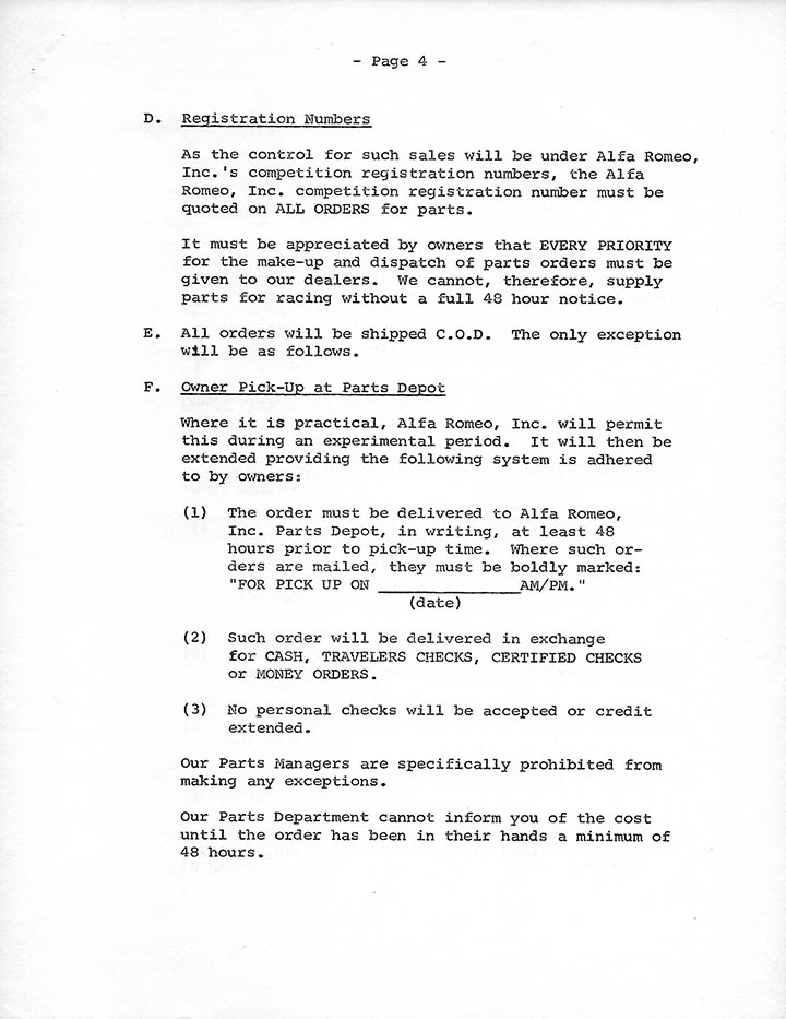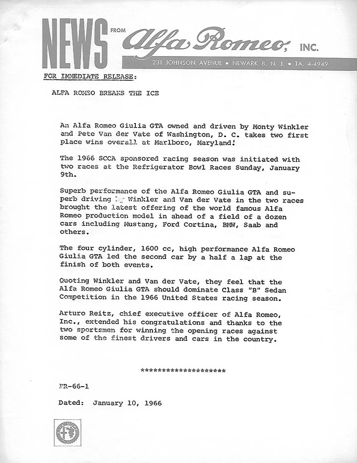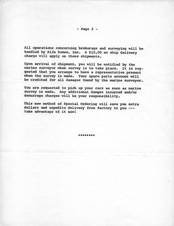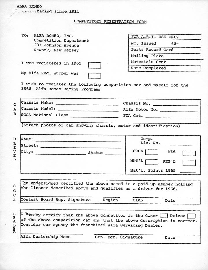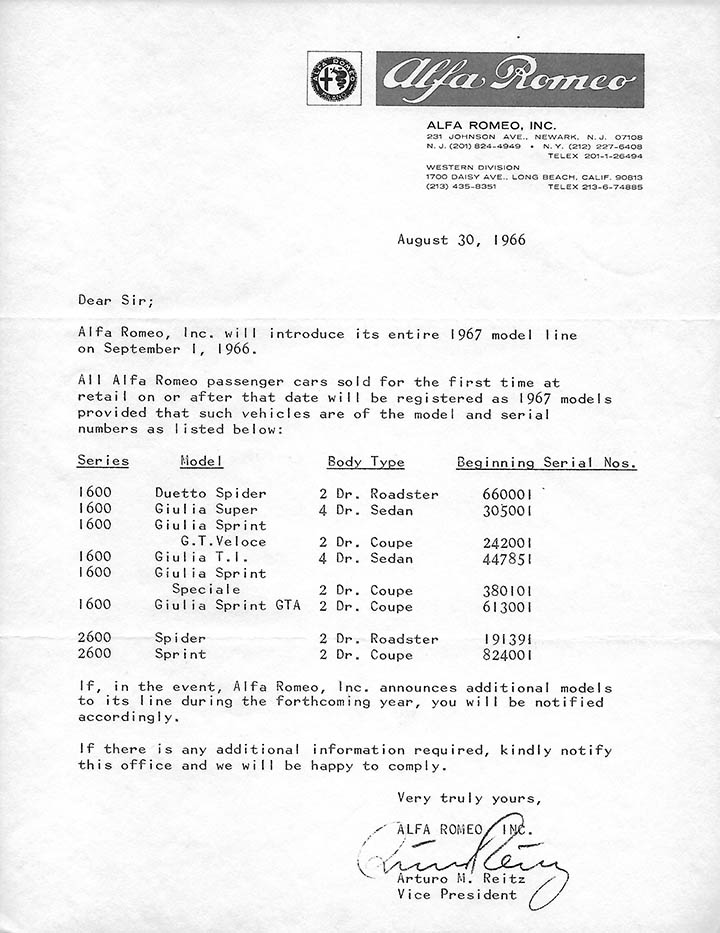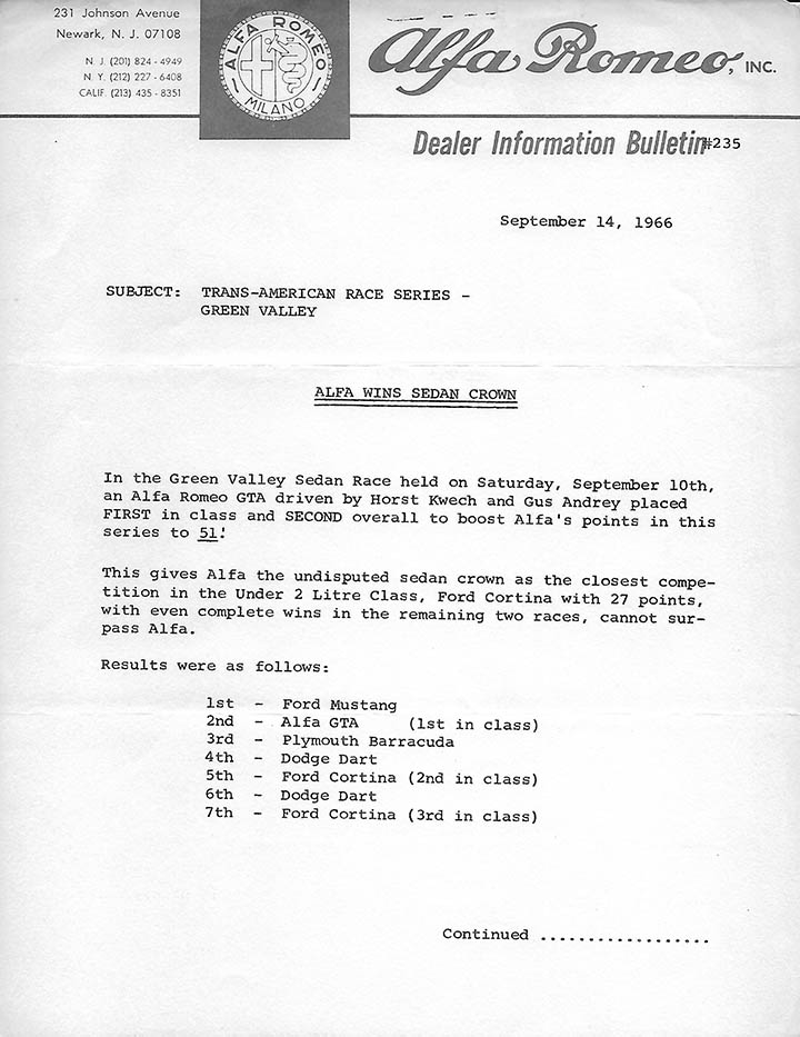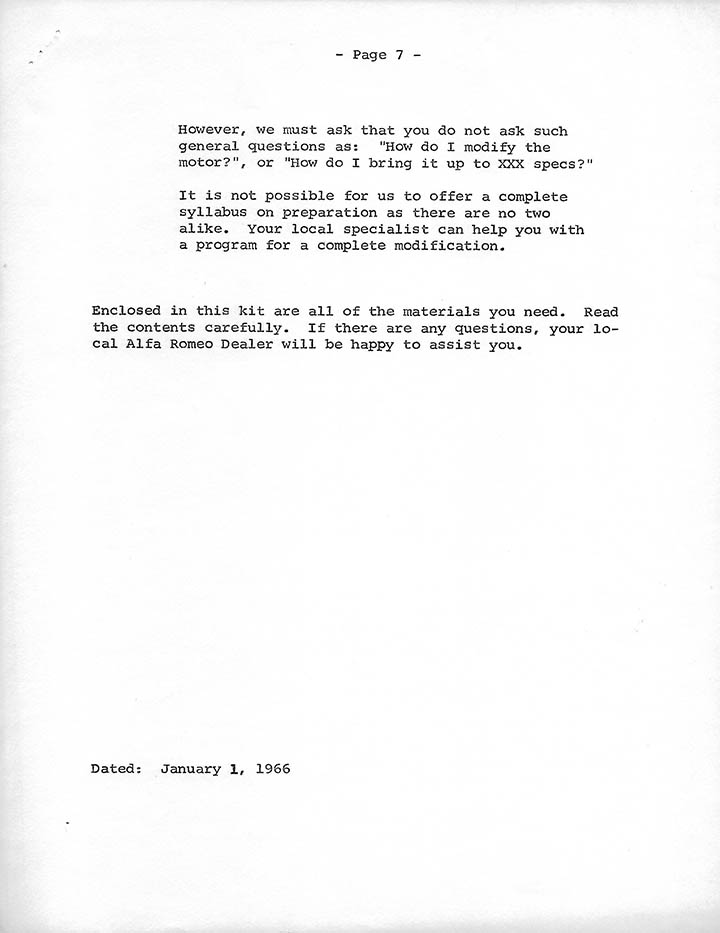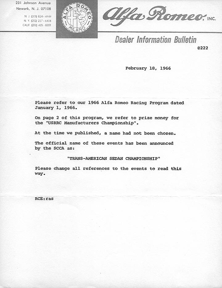 While cruising through eBay recently, I came across several listings for Alfa Romeo News and Dealer Information Bulletin sets. These listings were for 1962, 1963, 1964, 1965, and 1966. Since I own a Duetto, I purchased the 1966 set. I found them to be very interesting as they give you a sense of how Alfa was distributing and marketing their cars back in the glory days. Also, you can read about how to go racing with a little help from Alfa! These bulletins originated from the Newark, New Jersey, office and were meant for dealerships only. I hope that you enjoy reading them. This set is probably not complete.