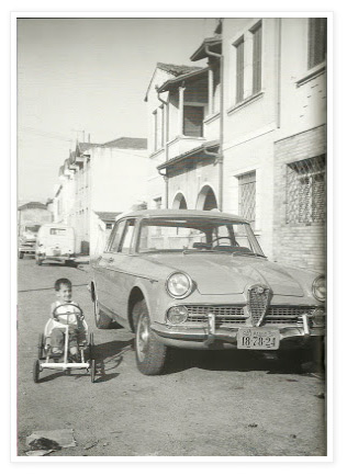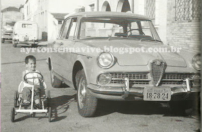 Ayrton Senna, at three years, barefoot, playing in his stroller on Aviator Gil William Street in Santana / São Paulo, poses beside a family FNM 2000 JK. It was a car manufactured in Brazil in honor of President Juscelino Kubitschek. Now we know how it all started.