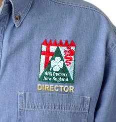 Generally, all of the Board Members are responsible for the oversight and planning of our club’s activities. The President’s job is to oversee and preside over the club and club business activities from a National and Local perspective. This includes State/Federal business incorporation, legal issues, insurances, National AROC business and notifications, coordination of the efforts of the Board members and to call and preside over club meetings. The Treasurer’s role is probably relatively obvious. All of the Directors should be willing to organize and take complete charge of one AONE event — an autocross, track event, rally, concours, social event, whatever — each year. But wait — there's more! In case you need an extra little nudge, the club has had some shirts made exclusively for the incoming Directors. They're long-sleeve cotton twill with the AONE logo and "Director" embroidered above the pocket (see below). Just a little extra perquisite!