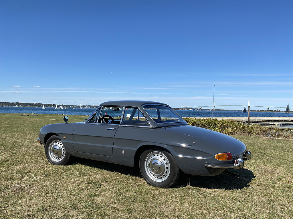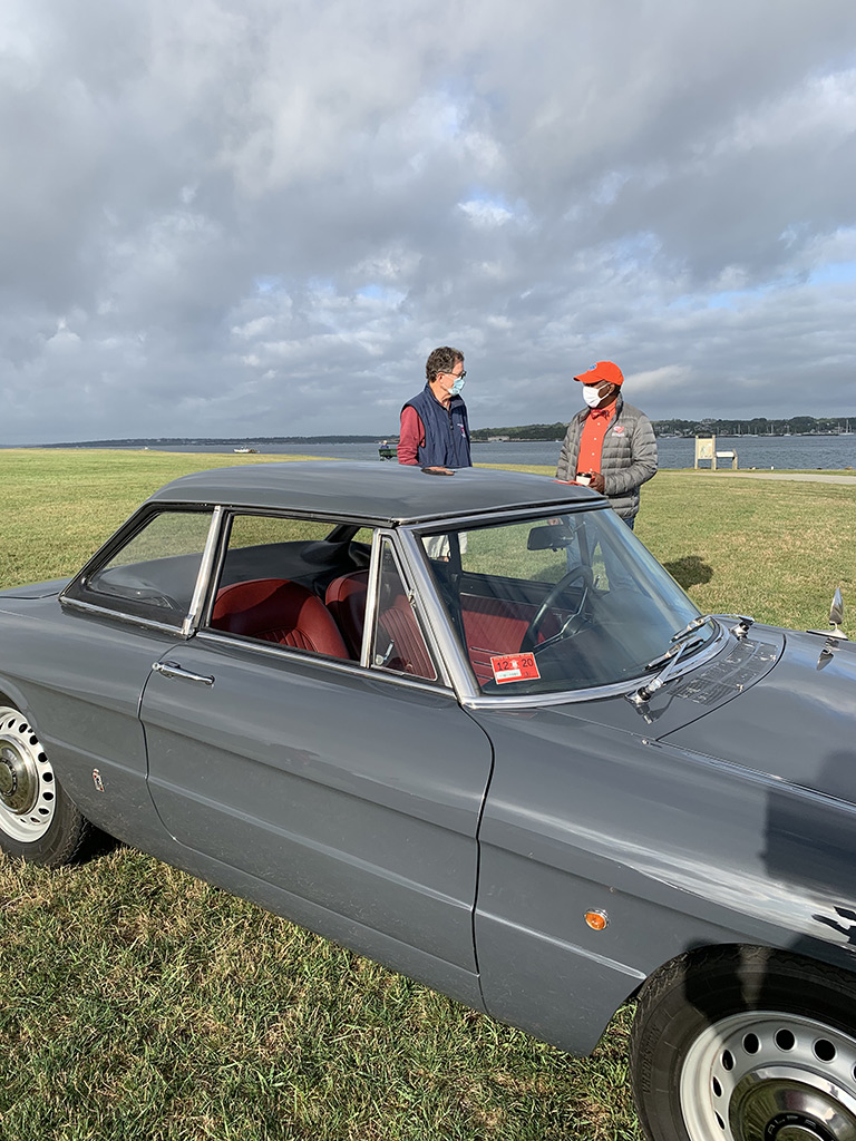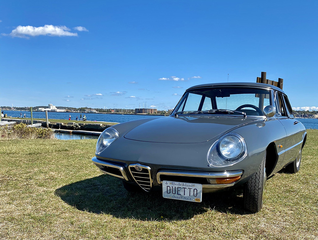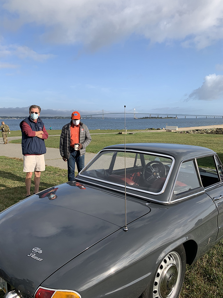 It was Donald Osborne of "Jay Leno's Garage". He engaged us in a fifteen minute conversation in which he demonstrated his knowledge of the Duetto, liked the originality and especially the hardtop. Then he said, "I would like you to be part of the Tour d'Elegance, taking place the first weekend of October." The tour would start at Scarborough Beach, RI, at 6AM and would end at Fort Adams around noon, covering about 67 miles and making several "pit stops" in scenic RI along the way. Excited? You betcha!