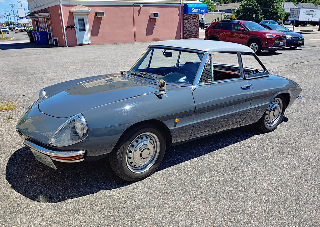 Yes! I had never seen a factory hardtop for the '66-'69 in person — only a picture in one of my many Alfa books, and from that picture it looked somewhat misplaced. At one time, I had a Parrish Plastics hardtop, which I felt with its rounded shape didn't look half bad. But after I had the car restored in 1985 I discovered that the top jiggling scored my new paint job, so off it went, never to be put on again. I sold it to fellow with a green '69 Roundtail for $150.