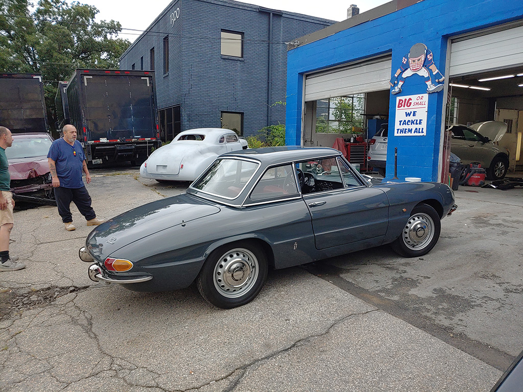 After some small talk, Steve and I went about securing the top to the little red Chevy. The top now firmly atop the car, off I went to my body shop man — Joe Donato of East Coast Collision in Warwick, RI. Joe did my first restoration back in 1985 and every repair since. Joe and his crew have known my car longer than any other they repaired and are always happy to see me drop by driving the Duetto.