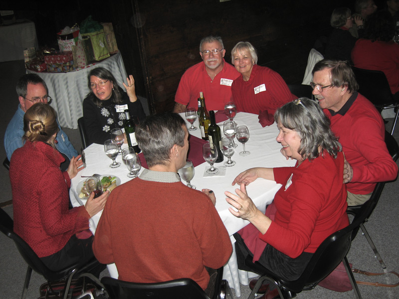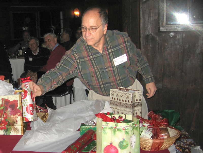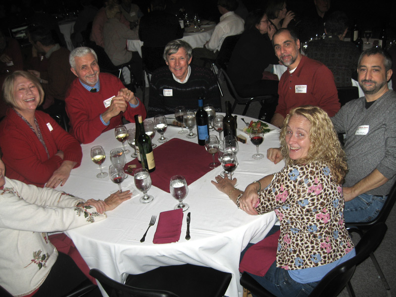 We were also soon greeted by a table of delectable appetizers, followed by waitresses wafting through the crowd with trays of hors d'œuvre. We cracked open the various forms of libation we'd brought along and spent a nice time enjoying them, the appetizers, and each other's company. Then we were summoned to the buffet table for the main course, and what a feast it was! It was the same caterer we had used last year (Tastings Caterers of Framingham), but Tom Lesko had worked with them to give the menu a little more gourmet Italian flair, and they really outdid themselves! We heard nothing but raves from all of our guests. The menu is included at the bottom of this report, so you can review it if you were at the party, and to whet your appetite for next year if you weren't!