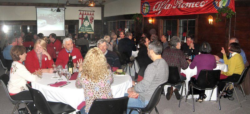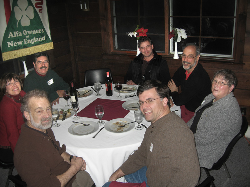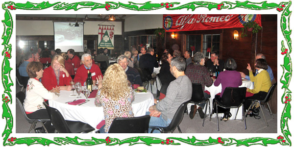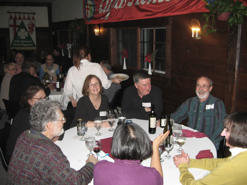 The 2010 AONE Holiday Party By Dave Pratt; Photos by Daves Pratt and Durnan It was a dark and stormy night; the rain fell in torrents. But inside the Josiah Smith Tavern on Sunday, December 12th, all was sunny, bright, and cheerful! We had a sell-out crowd for our AONE Holiday Party this year (aided, no doubt, by the fact that the club Directors elected to subsidize over half of the cost from our treasury, and we Alfisti are nothing if not frugal!). It was a sell-out because the occupancy of the Tavern is limited by regulations to 49 people. We'd never had that problem before — it's a good problem to have!