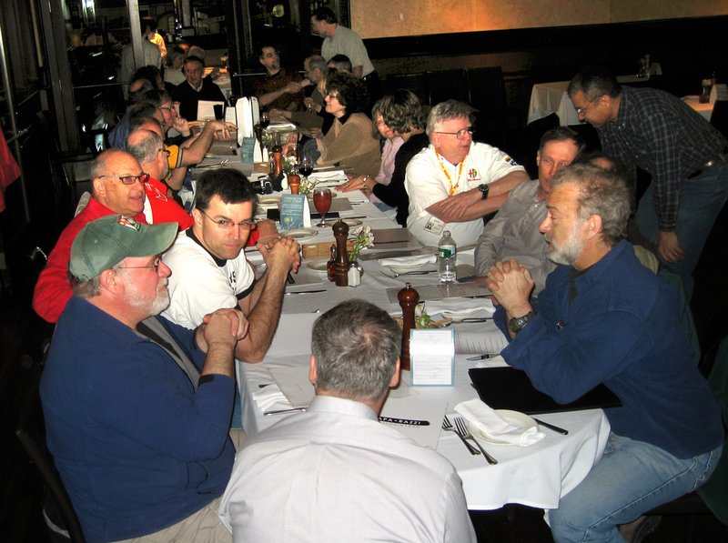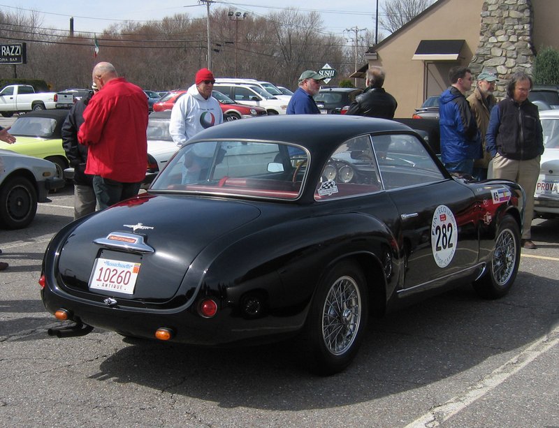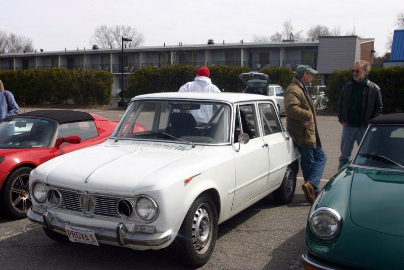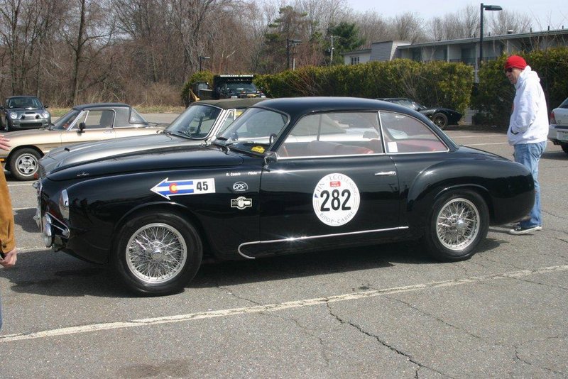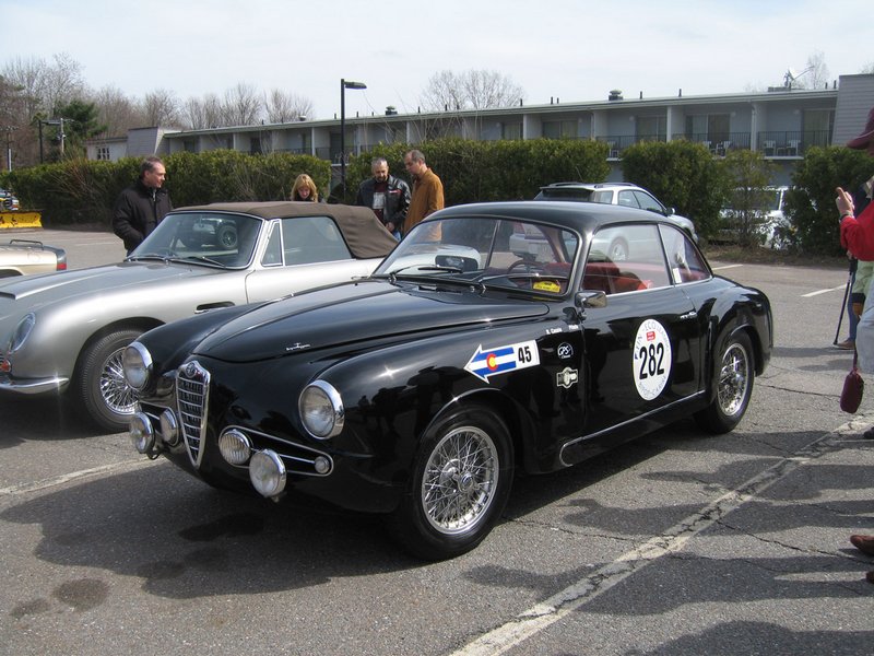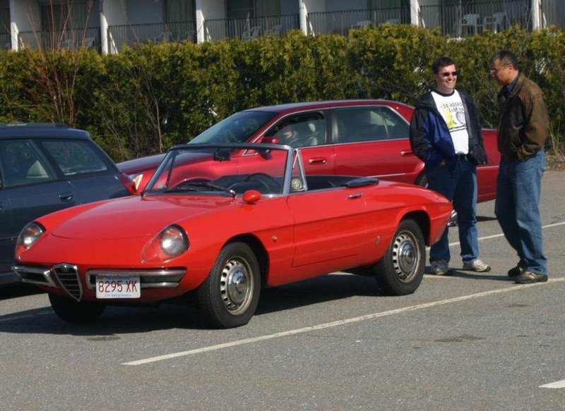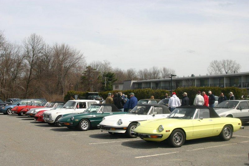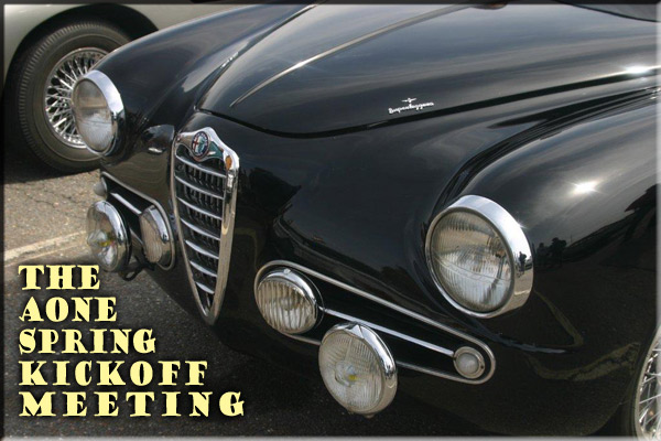 By Dave Pratt we seem to get more people showing up at our Spring Kickoff meetings every year! On Sunday, March 28th, Alfisti began gathering in the parking lot of Papa•Razzi Trattoria•Bar in Concord, MA, for our annual cobweb-cleaning lunch meeting well before the 12 noon official start. Everyone knows that part of the fun of our get-togethers is always hanging out before, during, and after for a little tire-kicking (no, not tire-licking, as I put it in Friday's announcement — damn you, spell checker!). We ended up with over 30 people! Despite it being a bright and sunny day (as I promised in Friday's announcement), it was also a rather nippy one (as I neglected to mention), with the temperature struggling to make it out of the 30s. Still, a couple of Spiders arrived top-down (kudos to the Durnans and Dan Nicholes — of course, perhaps they don't have tops). Everyone milled around checking out the various Italian macchina before going inside to eat, well after the 12 noon official start. Part of the reason for staying outside so long in the bracing weather was the appearance of Roger Cassin in his award-winning, Mille Miglia-experienced 1954 1900 CSS. It was a rare treat that all of his fellow Alfisti truly appreciated. Wonderful car! Roger was accompanied by Bruce Male, who joined us wearing an Alfa Romeo hat, although he arrived in his classic and rare 1967 Aston Martin DB6 Vantage Volante. Both gentlemen were out putting some miles on their special cars before shipping them to Arizona for the Copperstate 1000. We eventually wandered inside, where we overflowed a very long table in our private dining room. We all ordered off Papa•Razzi's extensive menu and continued our Alfa-related banter. It's safe to say that no one was disappointed when our lunches arrived — they do things well! Afterward, President Tom Lesko rapped someone's glass and got us down to business. After some introductory remarks, he turned over the imaginary podium to AONE Events Seat Brian Shorey, who began going over the growing list of events that our club has coming up throughout 2010. In additional to the perennial favorites we’ve enjoyed over the past few years (such as the South Shore Beach & Waterfront Tour, Tutto Italiano, Lime Rock Vintage Festival, the Wachusett Hillclimb, and Indian Summer Sortie tours), there are several new ones in the offing. For example, there’s to be a North Shore Drive and Lunch at Glynn Motorsports in May to complement the South Shore one in April. Also, the AROC National Convention is just down the road in Maryland this year, and we're planning to make our New England presence felt. And the Watkins Glen Grand Prix Festival is making Alfa Romeo its featured marque to commemorate Alfa's 100th anniversary — this should be a real blow-out! Keep watching our Events pages for info on all of these terrific upcoming activities! We were also happy to have Peter Bourassa of New England-based Motorsports Marketing Resources as our guest, and he rose to give us a short talk on what they're all about. Check out their great newsletter!