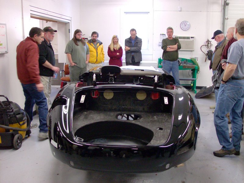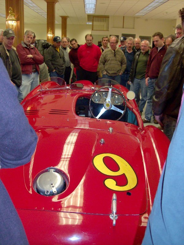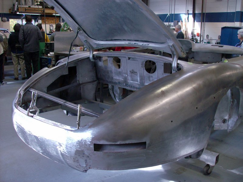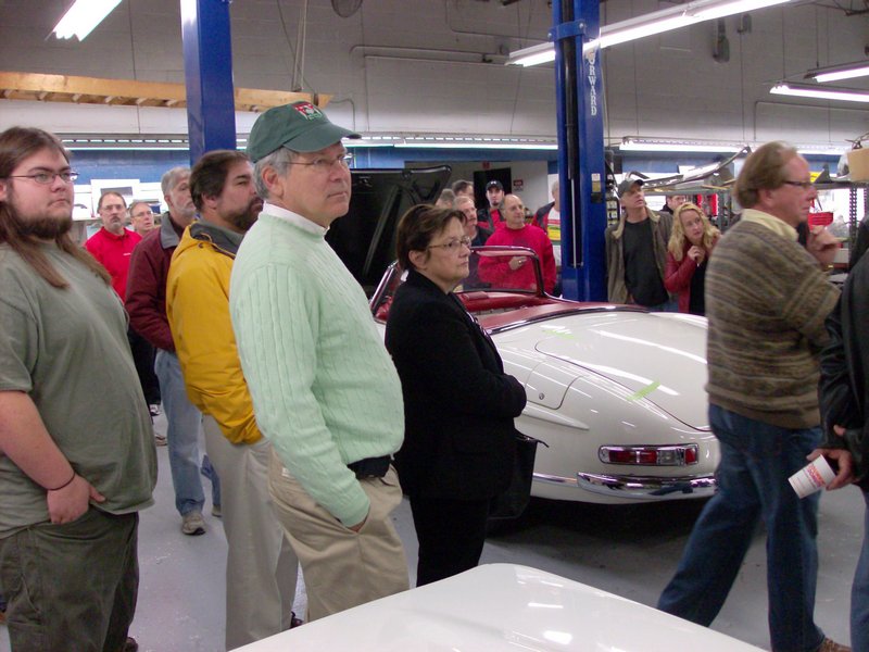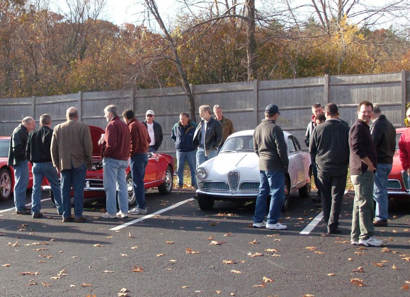 title ;) by Jim Miga Saturday morning, October the 30th. It was a picture-perfect fall day. A perfect day to drive up to Essex on the North Shore and visit Paul Russell and Company for one of their famous tours. Our tour was hosted by Alex Finigan, who is the sales manager as well as a very knowledgeable automobile enthusiast. In fact, Alex arrived driving his newly-purchased white Alfa Romeo Giulia Sprint! And, of course, he has recently joined AONE. The tour began at around 10am and it looked like we had all of the 70 people who signed up on board! The morning started off casually with coffee and donuts in the main shop area. From there, we meandered into the metal fabrication shop, where a 1950s Cunningham coupe was down to the bare metal. Here, Alex gave us an overview of the restoration process and answered many questions. Then we moved into the next room, the body and paint area, where we saw a Jaguar D-Type tail section undergoing some structural work and touch-up. Several 300SLs were there in various stages of restoration. As we moved through the shop, Alex paused at many of the projects to explain details of the process and to answer questions. Next, we moved back through the main shop and into the upholstery shop, where we saw a freshly-painted black 300SL being reupholstered. One thing becomes obvious about this shop: no shortcuts are ever taken. Alex said that many customers are reluctant to drive their cars following a restoration. He essentially tells them, "For the first year, exhibit it in shows and win some trophies. After that, drive it often and enjoy it!" From there, we went into the exhibit/showroom area, where we were able to get a close-up look at some of the world's greatest automobiles, such as Bugatti, Ferrari, Mercedes-Benz, Rolls-Royce and many more marques that were on display. Many were customers’ cars and some were even for sale (viewable at www.paulrussell.com). Alex explained the history of several of these cars and answered a variety of questions. Then we walked back into the main shop, of course stopping along the way to look at some works in progress. After completing the tour, Tom Lesko presented Alex with a special gift from our club — a camp shirt by Fashion House of Ferugini featuring artwork of a 6C 1750 Gran Sport Zagato, which was generously donated by Tom Letourneau. Finally, Rick Lesniewicz spoke to us about Tony Ranson, a longtime Alfista and close personal friend of his. Tony recently died of pancreatic cancer and Rick is working with the family to raise money for this underfunded cause. He raised $200 at this event from our members. Read more about Tony below. Even if you attended this event, check out the Paul Russell & Company website — I highly recommend it. There are many photos and great articles about Paul Russell, the cars, and restoration information/philosophy. Important things for us to think about as our vehicles (most of which are antiques now) age.