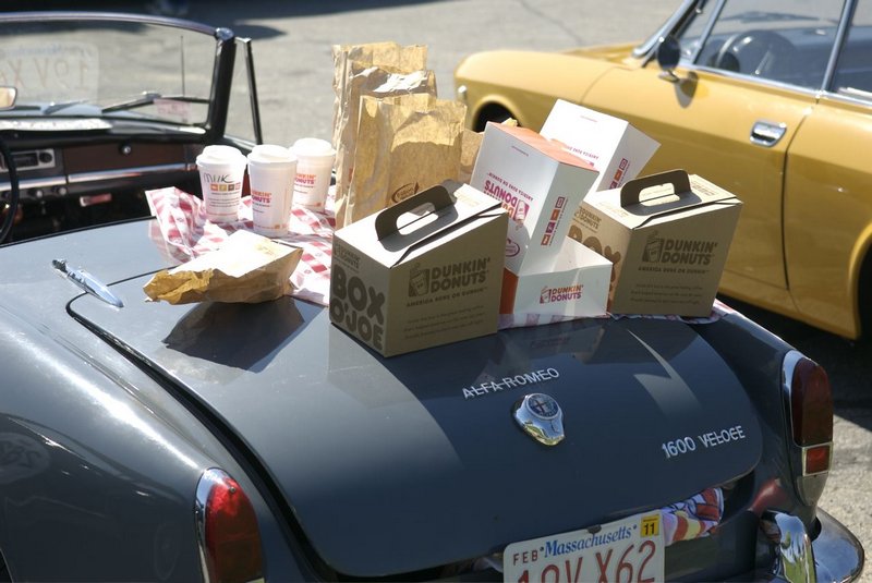 coffee, muffins, bagels, and donuts. The Alfas came rolling in in