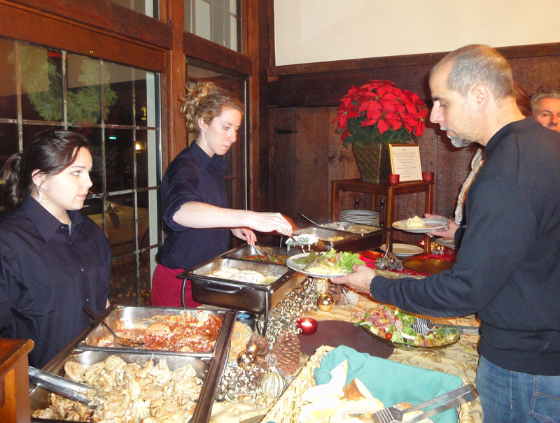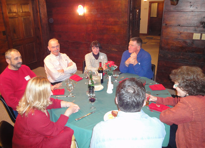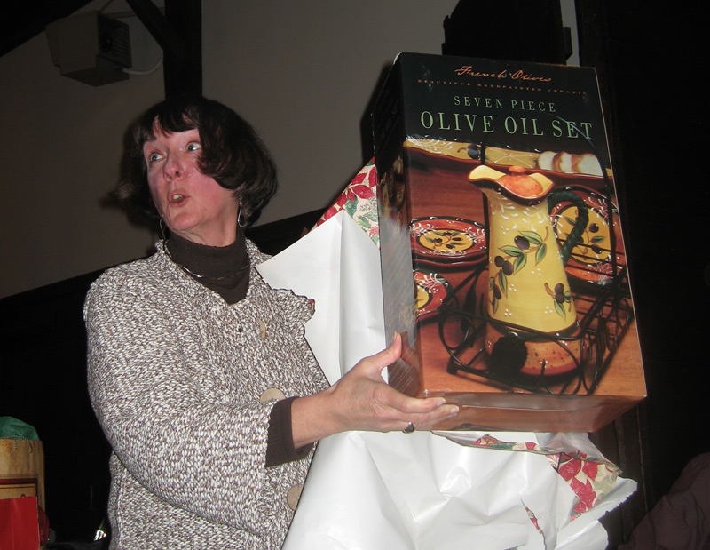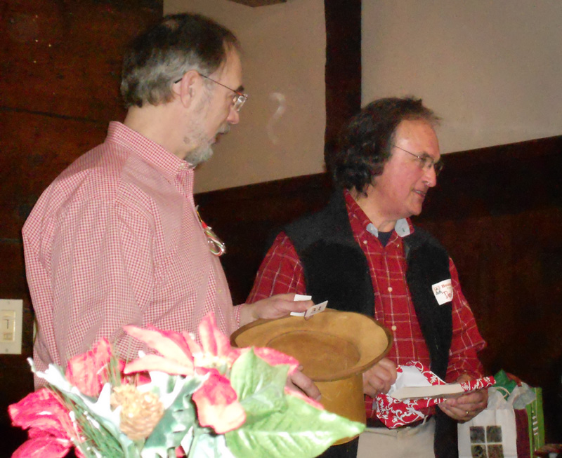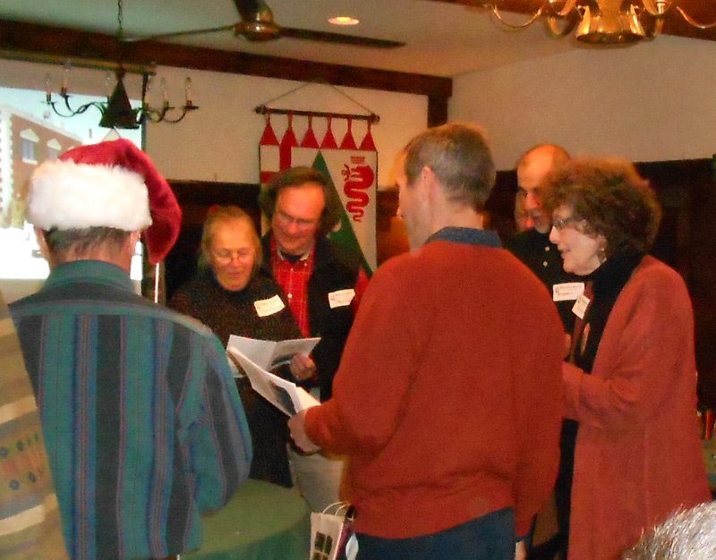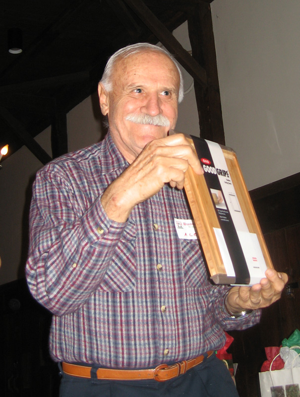 By Dave Pratt Last year we had a monsoon, and a couple of years before that over a foot of snow. But this year we were graced with perfect, crisp, late-autumn weather for our annual AONE Holiday Party. The result? Several actual Alfa Romeos in the parking lot! A crowd of Alfisti numbering in the mid-40s gathered in the late afternoon of Sunday, December 11th, at the Josiah Smith Tavern in Weston, MA. Practically all were bearing gifts for the traditional Yankee swap that would come later, and these filled a large table to overflowing. We donned name tags and were greeted by a continuous slide show of a couple hundred photos that AONE President and event organizer Tom Lesko had put together — a "Year in Review" of our 2011 club events. Tom also spared us the operatic holiday music he’d threatened and instead played some cool "Jazz Holidays" tunes in the background, which we soon drowned out with our boisterous conversation and laughter. We were happy to have some new members join us this year and discover what a jovial bunch we are. These included Steve Branson, who has just acquired his first Alfa — a very nice silver GTV that he brought to the party. They also included Dave LaChance, editor of the excellent Hemmings Sports & Exotic Car magazine, who recently acquired his first Alfa — a white ’73 Berlina. Welcome to the fray! We all soon attacked the table of delicious appetizers, and then waitresses roamed through the crowd with trays of hors d'œuvre. We tapped, uncorked, and/or unscrewed the various forms of libation we'd brought along and spent a fine time enjoying them, the appetizers, and the camaraderie. In due course, we were summoned to the buffet table for the main course, and it was another grand feast presented by the same caterer we had used the past few years (Tastings Caterers of Framingham). Tom Lesko had worked with them to give the menu a gourmet Italian flair, and the menu was terrific, garnering nothing but raves from all of our guests. After dinner, Tom Lesko kept his comments brief, and then launched into the eagerly-anticipated Yankee gift swap. As at previous holiday parties, this was again lots of fun, with a wide array of brightly-wrapped presents being opened one after the other, and then either being swapped for ones that had already been opened or hidden away in a vain attempt to prevent someone from spotting them and stealing them away. As always, there were a few particularly hot items that got swapped around several times. These included an Alfa Romeo fender cover, some limoncello (a perennial favorite), a diecast model of an 8C 2300, and a set of Italian bowls with ingredients to fill them. After the last gift was opened and swapped, the moment finally arrived for our annual holiday sing-along. Some people understandably bolted for the doors, while others gathered around to belt out some rousing a cappella renditions of several tunes normally associated with Xmas, but with lyrics transformed to address our Alfa Romeo mindset. This year’s offerings included a tribute to the Scuderia Limoni win at the 24 Hours of Lemons in a Milano, and a tale of Dave LaChance’s tribulations with his Berlina’s brakes, a retelling in song of a column that he wrote in the latest issue of his magazine. As you can see in the photos below, everyone