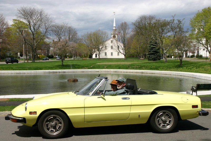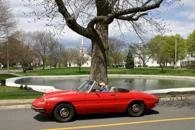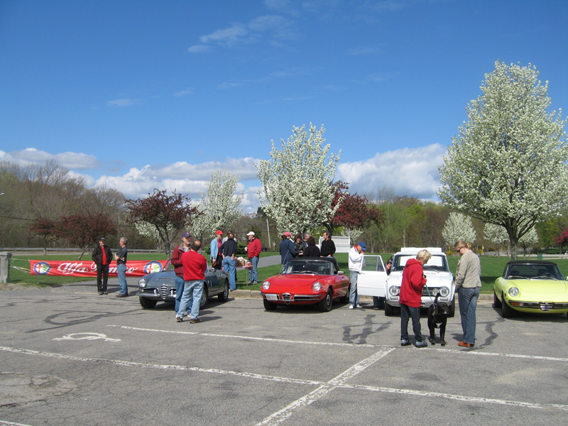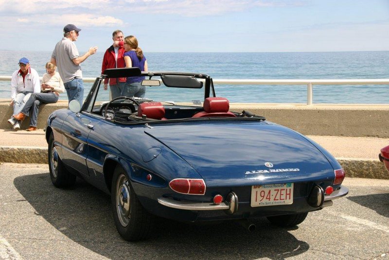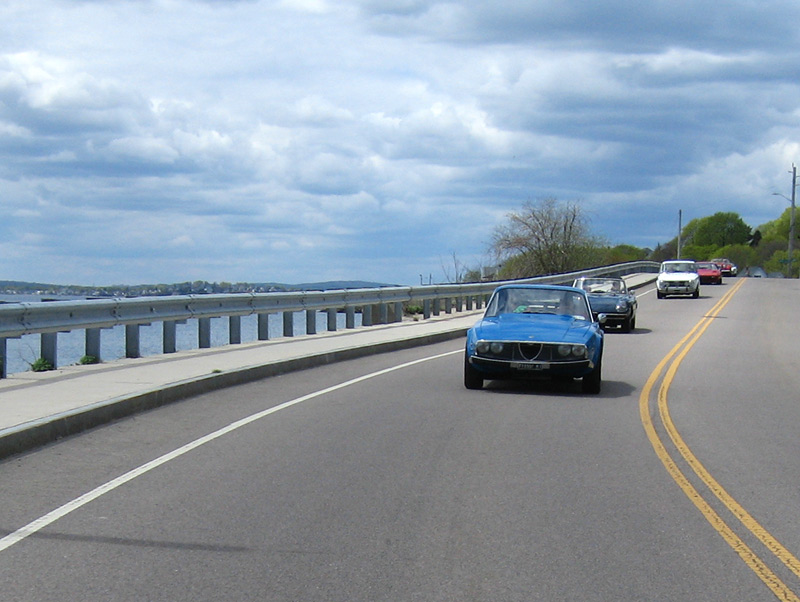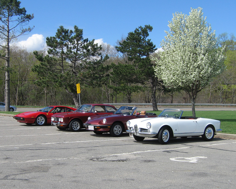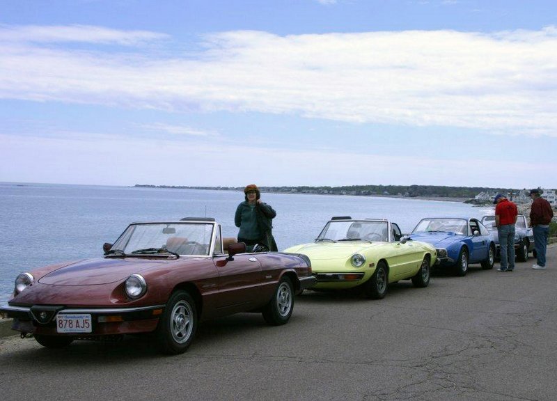 with Tom and his Giulia Spider "Grumpy" in the lead. Grumpy is