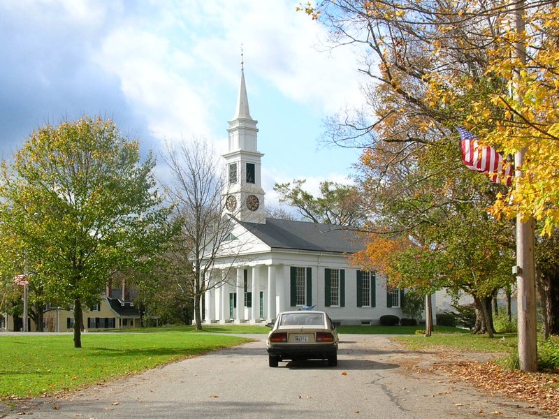 flanked by the Congregational Church in true New England style) saw