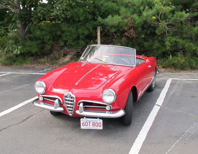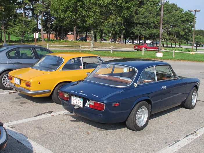 George and Paula Dolak—driving the Lesniewiczs’ 1972 Giulia Super