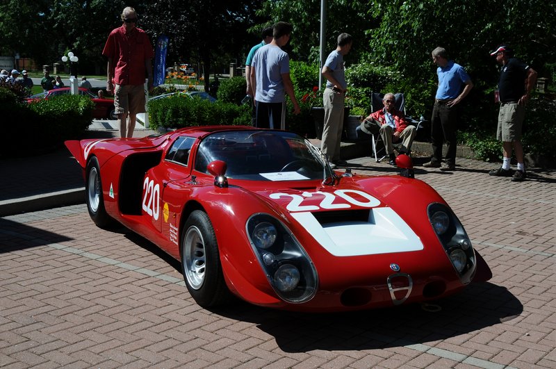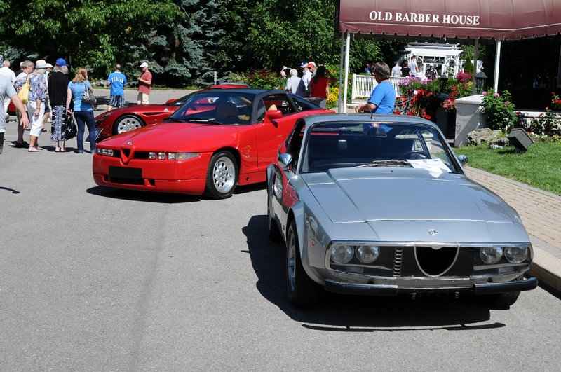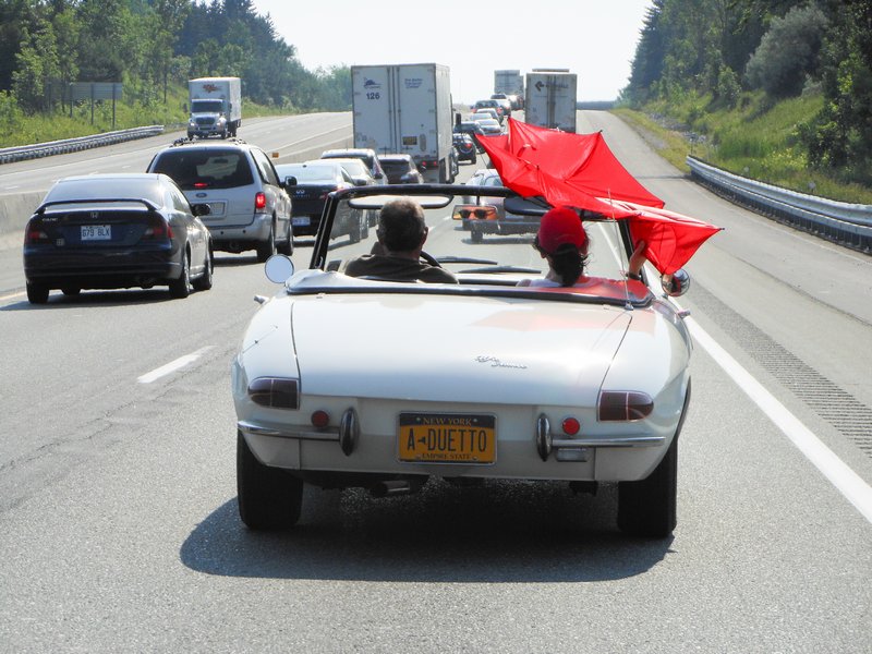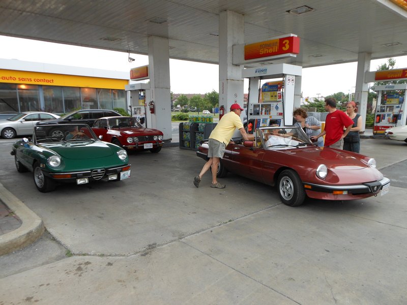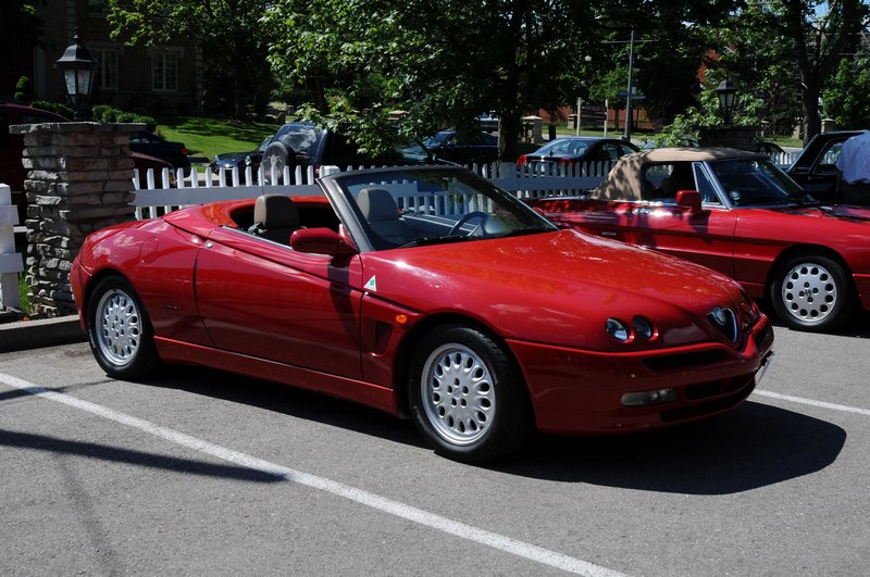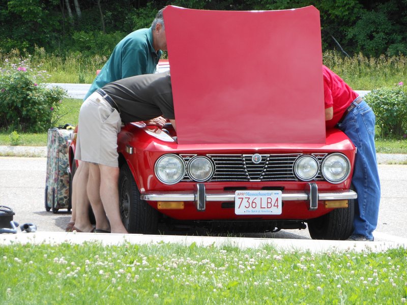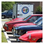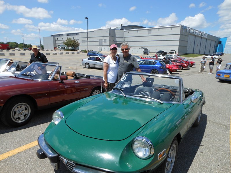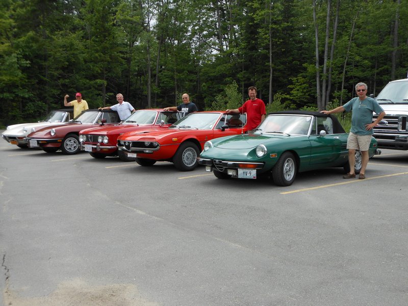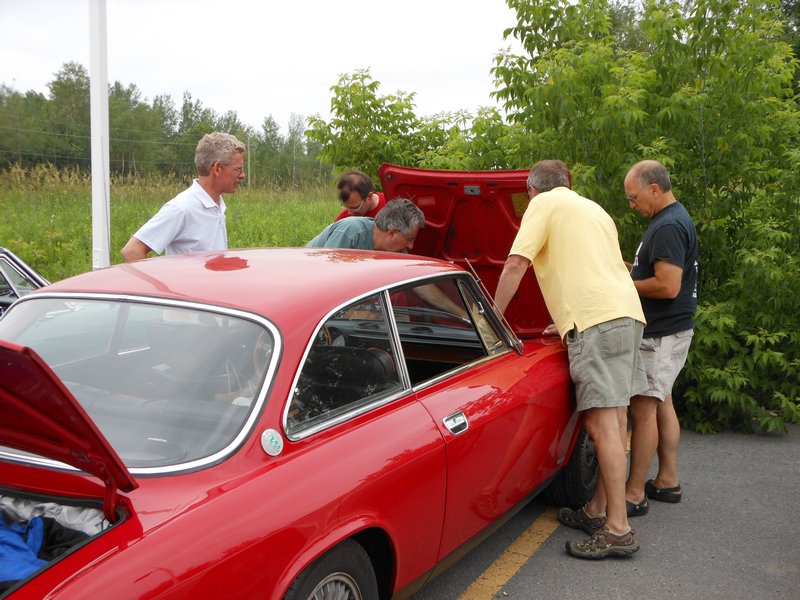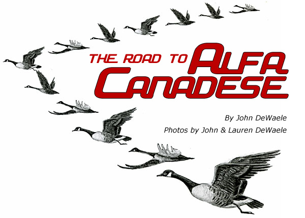 The road to Alfa Canadese started with Lauren and me meeting up with Gene & Judy Durso along with Dan & Deb Donovan and heading north to Montreal. The trip to Montreal took a bit longer than expected due to a leaking bypass hose on Gene’s GTV. After some creative repair (see photo) at a Mass Pike rest stop, we headed up to the next exit to find a parts store in order to make a proper repair. In addition to the faulty hose, a louder-than-normal tappet noise lingered in the backs of our minds; more on this later. In Montreal, we met up with Jim Lehman and Cindy Speaker at our hotel, and were soon collected by Canadian AONE member Phil Duffy’s wife Lisa Maria and children Magnus and Renee. Then we were off to meet Phil at a great restaurant in the town of St. Lambert for a much-needed relaxing evening. We were also happy to meet fellow Alfista Dave Robertson, who also joined us for dinner. After giving the next morning’s traffic some time to thin out, we headed to Ottawa, led by our official Canadian guides. The route Phil chose kept us off the highways and on the kinds of scenic back roads that our Alfas enjoy so much. Our tour through the quaint towns and villages was capped off with lunch at one of the most incredible resorts any of us have ever seen. (If you are ever inclined to make this trip, or even part of it, contact Phil or me for route numbers and general info.) The Chateau Montebello resort, sitting on the shore of the Ottawa River, is the largest log structure in the world — certainly an engineering marvel! Check out www.fairmont.com/montebello. The resort opened in 1930, boasts 211 rooms, tennis courts, and yes, a curling club! After a great lunch, we continued our journey, arriving in Ottawa late in the afternoon. After a quick check-in, we were treated to a personal walking tour of the city by Lisa and Phil. Our tour consisted of the magnificent Parliament buildings, the Rideau Canal locks, and of course a few cold ones and another great dinner in the city’s quaint restaurant district, the ByWard Market. Wednesday greeted us with hot sun for our jaunt to Toronto. The five Alfas (one GTV, two Veloce Spiders, one Duetto Spider, and a Montreal!) headed out of the city onto even more great roads and the most magnificent countryside. We toured along Lake Ontario for hours (that is one big lake!). At one point, we had to load the Alfas onto a ferry! Phil arranged for us to lunch at the Casa Dea Vineyard — yet another highlight! After loading our stomachs with a wonderful lunch, we proceeded to load our trunks with great wine. Although one can only bring two bottles back to the US, there is no limit to how much one can drink while in the country. Yes, Casa Dea did okay by us! By the way, my expectations of this trip had already been exceeded, and we hadn’t even gotten to the convention! Late on Wednesday, after a long and very hot drive, we arrived at the Delta Hotel, greeted by approximately 50 Alfas and a very enthusiastic blend of Canadian and American Alfisti. Unfortunately, the tapping in Gene’s motor had become loud to the point of making heads turn as we pulled in. On top of that, a fuel leak reared it’s very ugly head! More on this later. Prior to our arrival, there were various tours and events leading up to the four-day convention format. One of the tours was the Maple Leaf Mille, a four-day tour of Eastern and Northern Ontario. I understand that 24 cars took part. On Thursday, the guys headed off to the track for time trials, parade laps, and an advanced driver’s school. The ladies, probably having a very good idea on how hot and dusty the track would be, took off on a delightful wine tour through Niagara Falls and several vineyards. By 2PM, we would have liked to be in that air conditioned tour bus! Fellow AONE member Greg Stidsen tore up the track in his nicely prepared GTV. Phil and Dan participated in the driver’s school, while Gene, Jim and I enjoyed the spirited “parade laps”. While Gene’s GTV was in the shop (more on that later), he rode shotgun with Jim. Those of us following were happy that they didn’t have a map in the car (ya had to be there)! The welcoming reception was held Thursday night at the Old Barber House, which would also be the site of Saturday’s Concorso. Fellow AONE members Roger & Karen Carlson, Fred Frey and Beverley Fisher, and Greg Stidsen’s wife Andrea also attended the convention. One of the most creative aspects of the convention was our tickets. A cleverly designed and beautifully printed passport listed the full week’s schedule as well as our events with descriptions, locations, and sponsor info. The only slightly disappointing part of the week was the lack of vendors — only two. We can only assume that customs regulations might have been the reason that International, Centerline, and others did not appear, although some still sponsored events, which as always is greatly appreciated! Friday was Autocross and Rally Day. Phil finished a fine 5th out of 15 cars in his first autocross attempt! The rally caught us all by surprise; it was a true TSD (Time, Speed, Distance) rally, with real rally instructions! We were given the instructions one minute before our start. There were no written descriptive instructions — pure rally symbols, something similar to hieroglyphics! We were concerned, very concerned. The Rally Master actually held a brief rally school the night before but, with so much going on, we could not attend. AONE rally enthusiast Tom Letourneau would have been in rally heaven! Due to Lauren’s efforts, we actually came in fourth place (technically tied for third)! Not only did she interpret the instructions, she kept after me to slow down and keep us at the “average speed” in order to make our check points on time. Not an easy task due to the great roads and gorgeous scenery incorporated in this rally! The Alfa just wanted to go! On Friday night we were treated to an outstanding barbecue