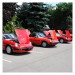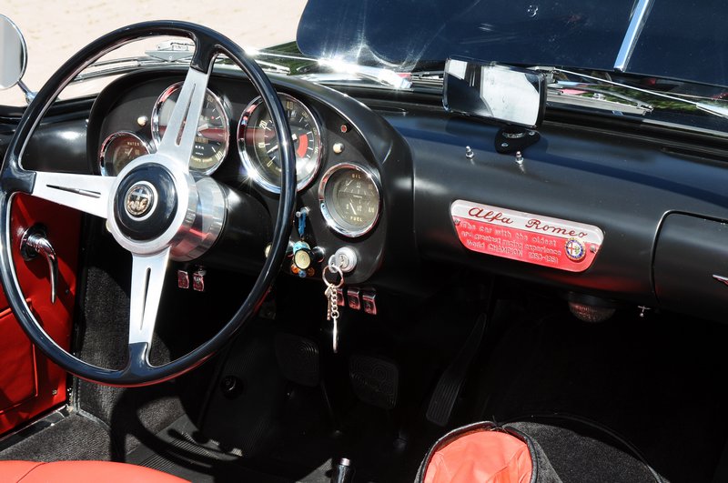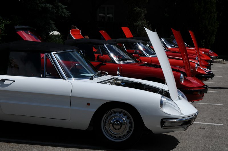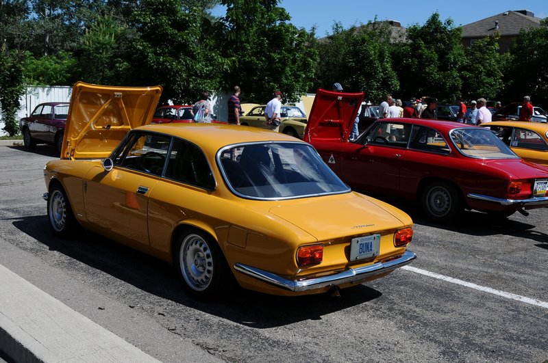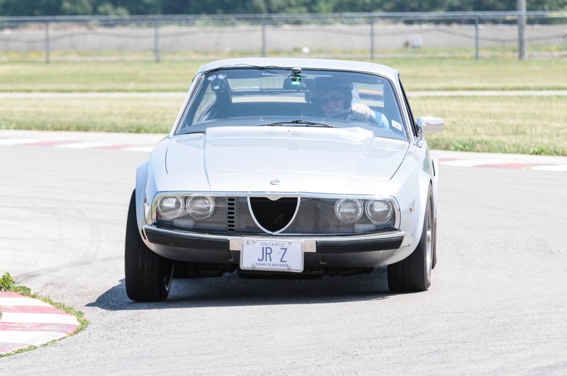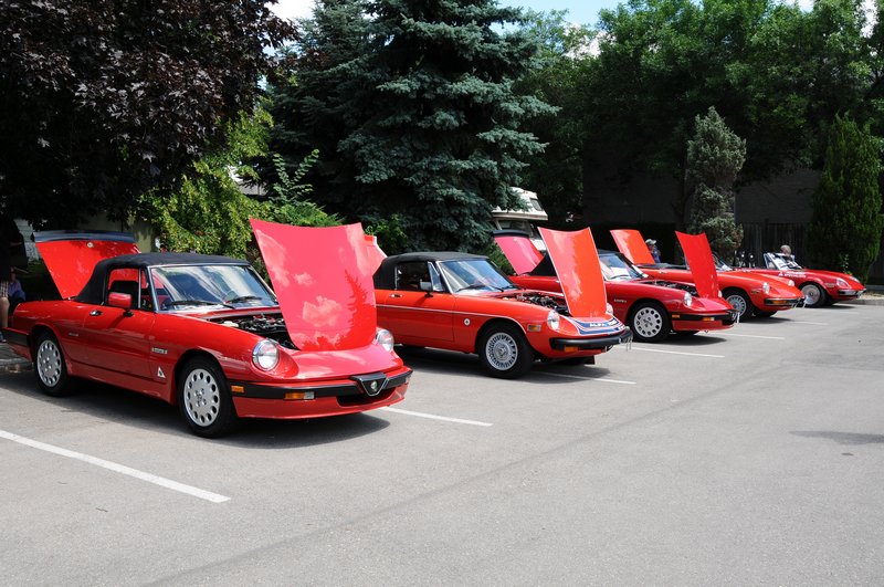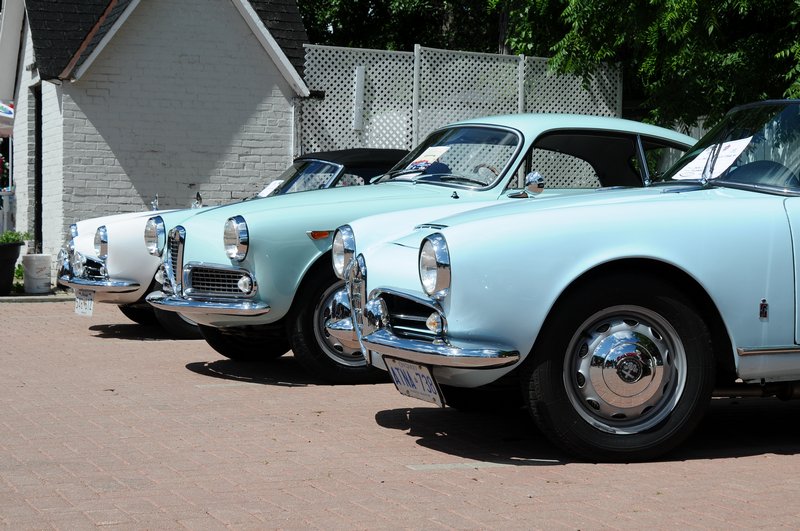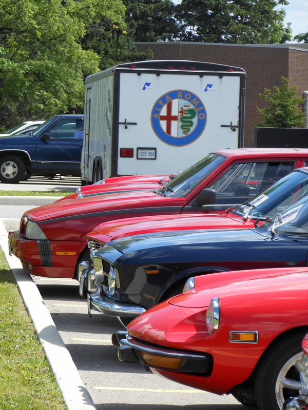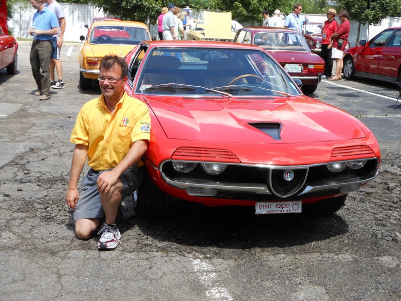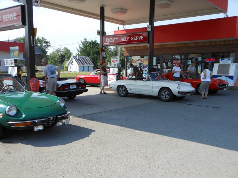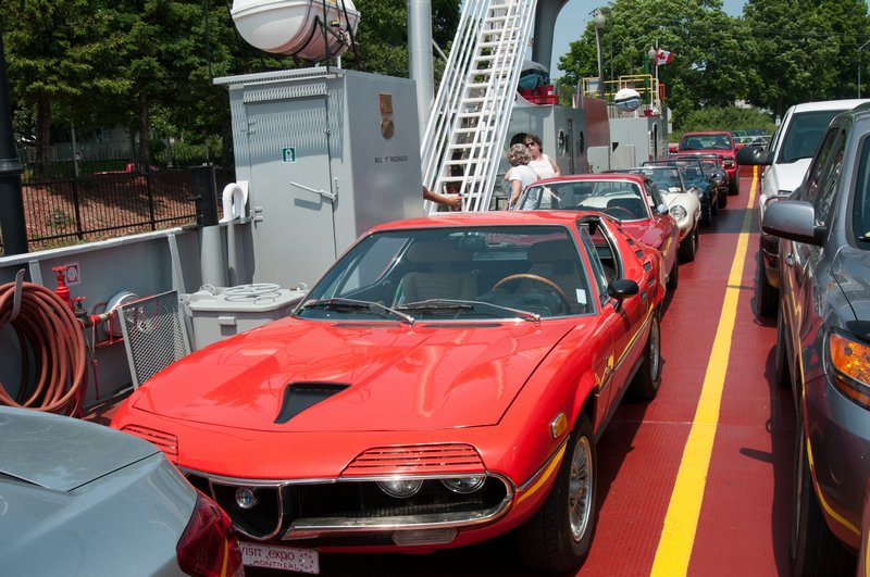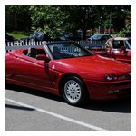 The road to Alfa Canadese started with Lauren and me meeting up with Gene & Judy Durso along with Dan & Deb Donovan and heading north to Montreal. The trip to Montreal took a bit longer than expected due to a leaking bypass hose on Gene’s GTV. After some creative repair (see photo) at a Mass Pike rest stop, we headed up to the next exit to find a parts store in order to make a proper repair. In addition to the faulty hose, a louder-than-normal tappet noise lingered in the backs of our minds; more on this later. In Montreal, we met up with Jim Lehman and Cindy Speaker at our hotel, and were soon collected by Canadian AONE member Phil Duffy’s wife Lisa Maria and children Magnus and Renee. Then we were off to meet Phil at a great restaurant in the town of St. Lambert for a much-needed relaxing evening. We were also happy to meet fellow Alfista Dave Robertson, who also joined us for dinner. After giving the next morning’s traffic some time to thin out, we headed to Ottawa, led by our official Canadian guides. The route Phil chose kept us off the highways and on the kinds of scenic back roads that our Alfas enjoy so much. Our tour through the quaint towns and villages was capped off with lunch at one of the most incredible resorts any of us have ever seen. (If you are ever inclined to make this trip, or even part of it, contact Phil or me for route numbers and general info.) The Chateau Montebello resort, sitting on the shore of the Ottawa River, is the largest log structure in the world — certainly an engineering marvel! Check out www.fairmont.com/montebello. The resort opened in 1930, boasts 211 rooms, tennis courts, and yes, a curling club! After a great lunch, we continued our journey, arriving in Ottawa late in the afternoon. After a quick check-in, we were treated to a personal walking tour of the city by Lisa and Phil. Our tour consisted of the magnificent Parliament buildings, the Rideau Canal locks, and of course a few cold ones and another great dinner in the city’s quaint restaurant district, the ByWard Market. Wednesday greeted us with hot sun for our jaunt to Toronto. The five Alfas (one GTV, two Veloce Spiders, one Duetto Spider, and a Montreal!) headed out of the city onto even more great roads and the most magnificent countryside. We toured along Lake Ontario for hours (that is one big lake!). At one point, we had to load the Alfas onto a ferry! Phil arranged for us to lunch at the Casa Dea Vineyard — yet another highlight! After loading our stomachs with a wonderful lunch, we proceeded to load our trunks with great wine. Although one can only bring two bottles back to the US, there is no limit to how much one can drink while in the country. Yes, Casa Dea did okay by us! By the way, my expectations of this trip had already been exceeded, and we hadn’t even gotten to the convention! Late on Wednesday, after a long and very hot drive, we arrived at the Delta Hotel, greeted by approximately 50 Alfas and a very enthusiastic blend of Canadian and American Alfisti. Unfortunately, the tapping in Gene’s motor had become loud to the point of making heads turn as we pulled in. On top of that, a fuel leak reared it’s very ugly head! More on this later. Prior to our arrival, there were various tours and events leading up to the four-day convention format. One of the tours was the Maple Leaf Mille, a four-day tour of Eastern and Northern Ontario. I understand that 24 cars took part. On Thursday, the guys headed off to the track for time trials, parade laps, and an advanced driver’s school. The ladies, probably having a very good idea on how hot and dusty the track would be, took off on a delightful wine tour through Niagara Falls and several vineyards. By 2PM, we would have liked to be in that air conditioned tour bus! Fellow AONE member Greg Stidsen tore up the track in his nicely prepared GTV. Phil and Dan participated in the driver’s school, while Gene, Jim and I enjoyed the spirited “parade laps”. While Gene’s GTV was in the shop (more on that later), he rode shotgun with Jim. Those of us following were happy that they didn’t have a map in the car (ya had to be there)! The welcoming reception was held Thursday night at the Old Barber House, which would also be the site of Saturday’s Concorso. Fellow AONE members Roger & Karen Carlson, Fred Frey and Beverley Fisher, and Greg Stidsen’s wife Andrea also attended the convention. One of the most creative aspects of the convention was our tickets. A cleverly designed and beautifully printed passport listed the full week’s schedule as well as our events with descriptions, locations, and sponsor info. The only slightly disappointing part of the week was the lack of vendors — only two. We can only assume that customs regulations might have been the reason that International, Centerline, and others did not appear, although some still sponsored events, which as always is greatly appreciated! Friday was Autocross and Rally Day. Phil finished a fine 5th out of 15 cars in his first autocross attempt! The rally caught us all by surprise; it was a true TSD (Time, Speed, Distance) rally, with real rally instructions! We were given the instructions one minute before our start. There were no written descriptive instructions — pure rally symbols, something similar to hieroglyphics! We were concerned, very concerned. The Rally Master actually held a brief rally school the night before but, with so much going on, we could not attend. AONE rally enthusiast Tom Letourneau would have been in rally heaven! Due to Lauren’s efforts, we actually came in fourth place (technically tied for third)! Not only did she interpret the instructions, she kept after me to slow down and keep us at the “average speed” in order to make our check points on time. Not an easy task due to the great roads and gorgeous scenery incorporated in this rally! The Alfa just wanted to go! On Friday night we were treated to an outstanding barbecue