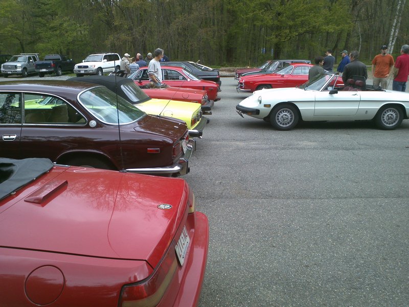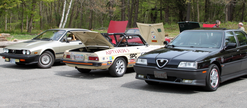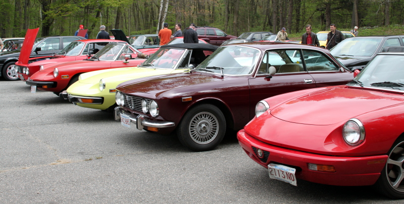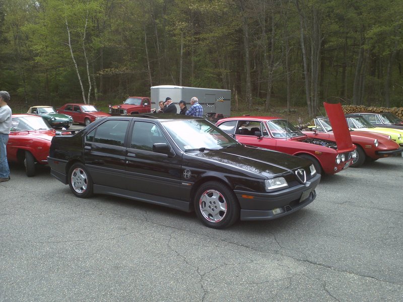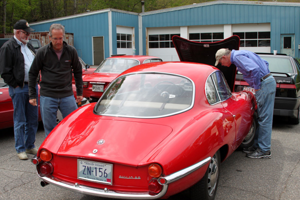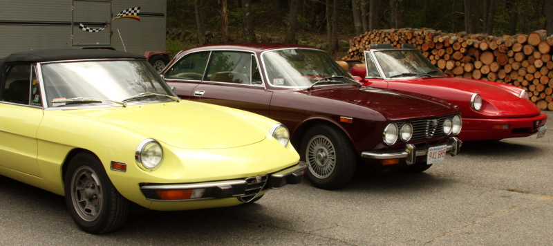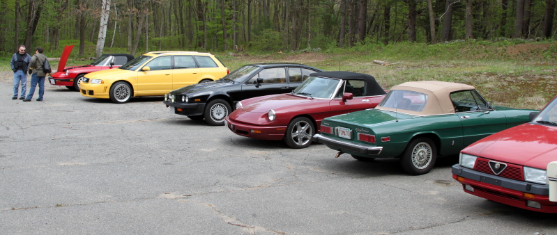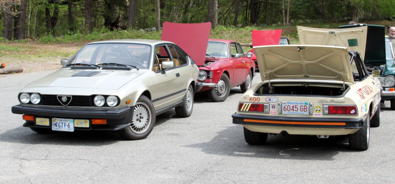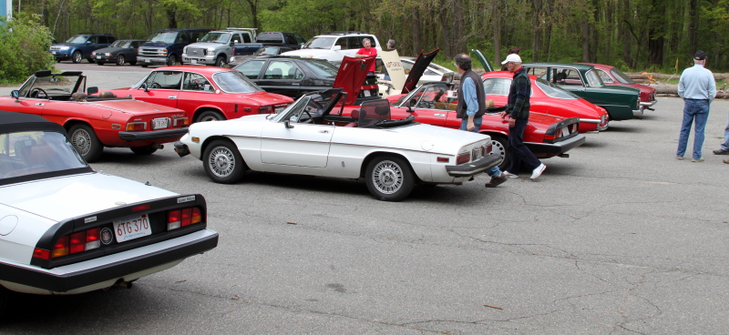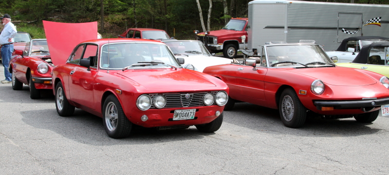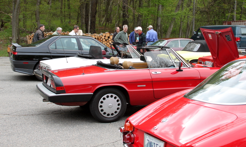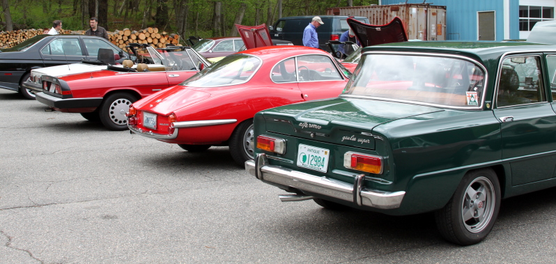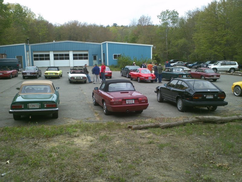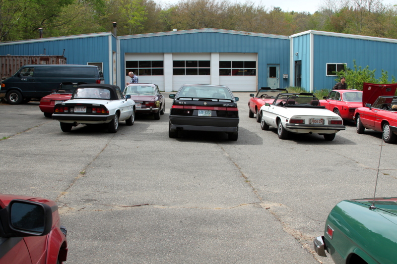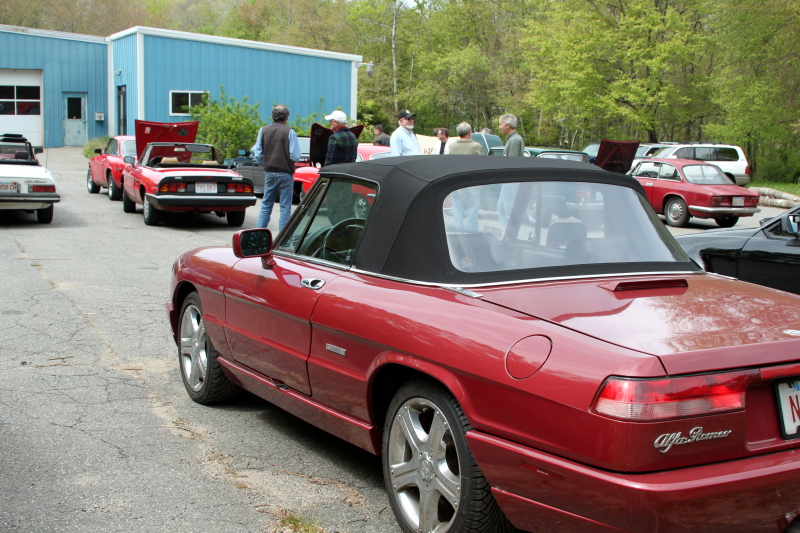 By Tom Ducibella About 30 Alfisti signed up for the rendezvous at Glynn Motorsports (GMS), the technical center of Alfa Romeo mechanical experience and used parts in New England, on Saturday, Cinque di Maggio. Cars filled the spacious GMS parking lot from various corners of New England on a rain-free day (at least on Boston’s North Shore) that grew increasingly sunny as the afternoon wore on. Much to the benefit of those who came, GMS had three knowledgeable Alfa answer-men to cover everything from transmissions (is your shifter having trouble with second or reverse?) to cams (how much valve overlap will your SPICA handle?) to suspension (Frank Maldari’s GTV-6 was getting re-bushed). Paul Glynn was not only his usual answer-man technical self, but also test-drove “symptomatic” cars even while most people were having lunch (he ate last). With models spanning about 40 years, Paul, Michael Wrigley, and Ian Anderson were addressing individual questions rather than doing a specific-topic tech session. The lifts were occupied by an early 70s Bertone-designed GTV, Frank’s GTV-6, and a '69 Spider Veloce (with its Pininfarina-designed “Duetto” body with the more powerful 1750 motor; US models introduced the SPICA fuel injection system). These three cars epitomized the innovation, technical advances, and stunning design that kept Alfa Romeo at the forefront of the sports car market for so many decades. Having said that, we must include Rod Burdick’s Sprint Speciale, driven from Rhode Island, and, for those of more modern taste, the 164S brought by Sasha Velic. For new owners as well as those with years of ownership experience, GMS is a unique New England Alfa asset, and our annual event is a wonderful opportunity to get technical info from the experts, in contrast to Alfa lore which is rampant and not always spot-on.