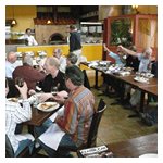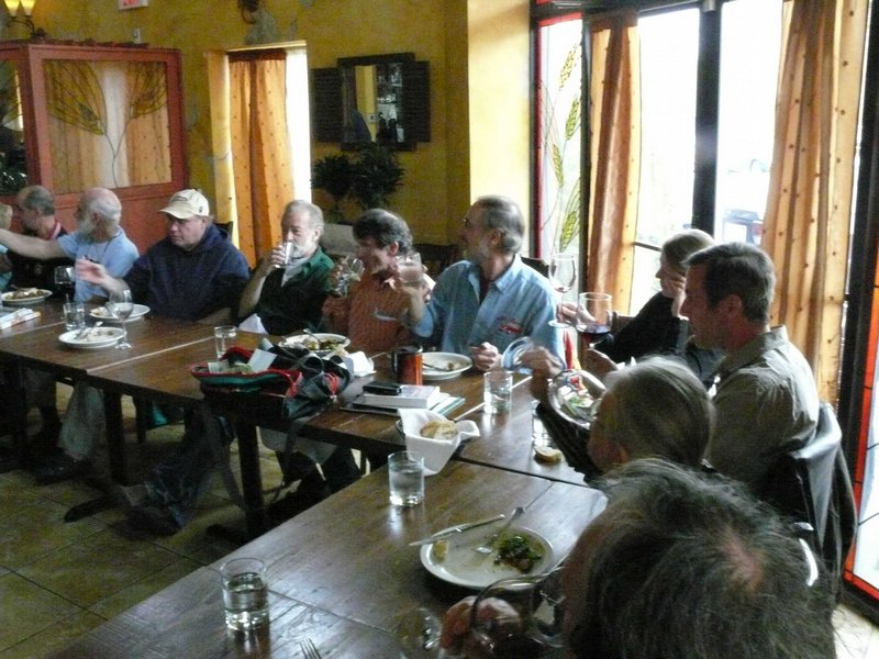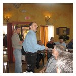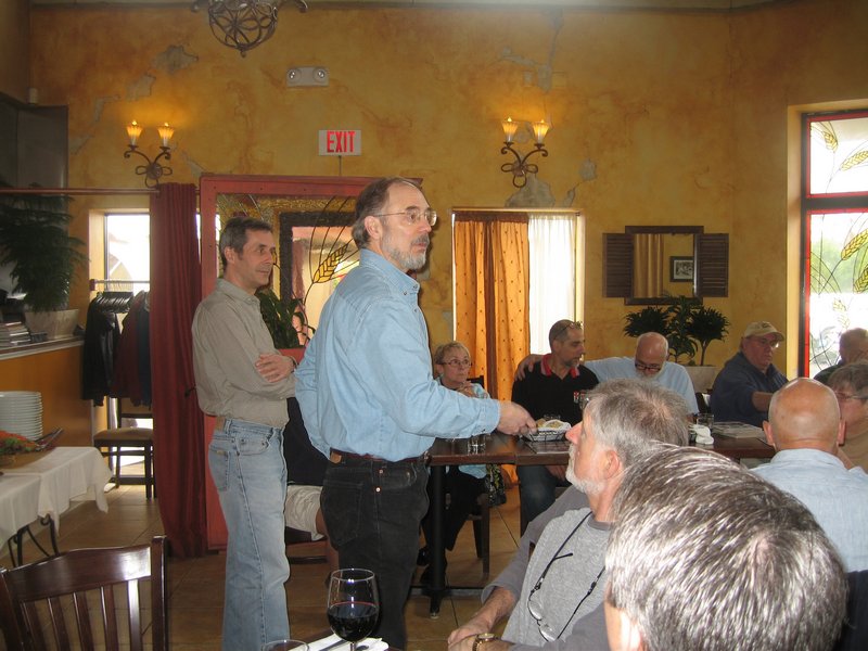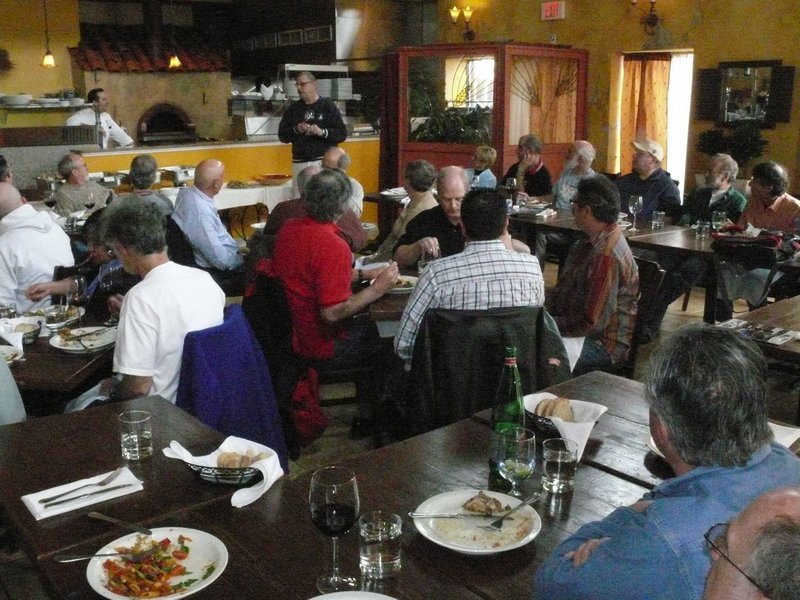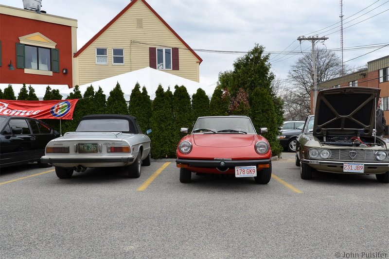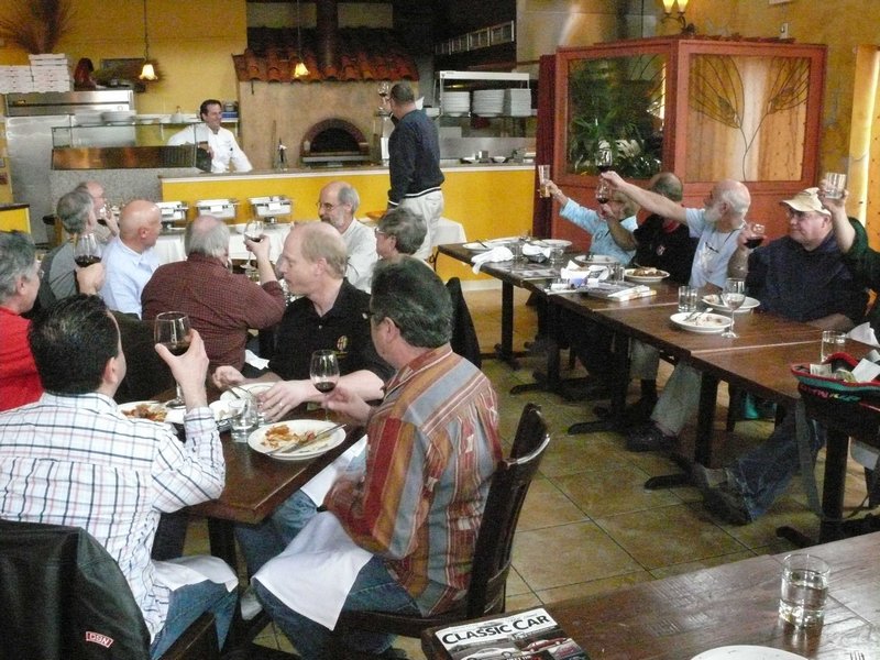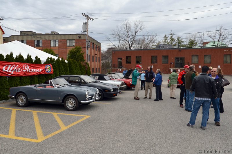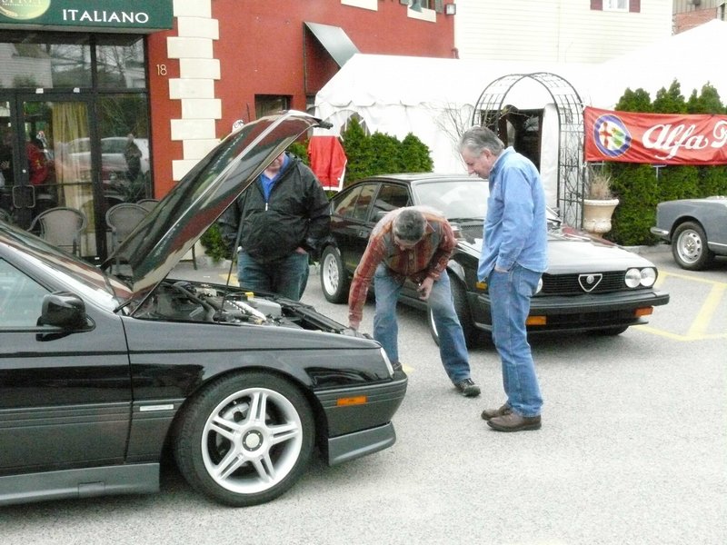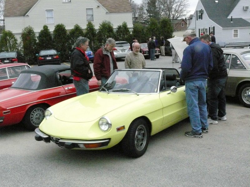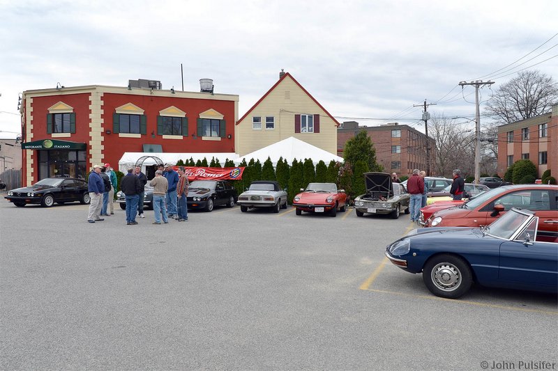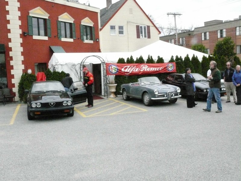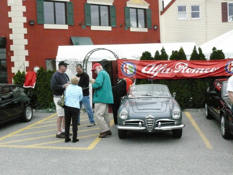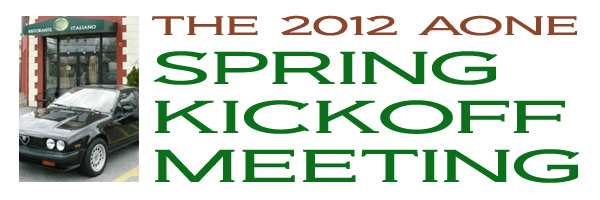By Dave Pratt AONE RETURNED CON ENTUSIASMO TO SPIGA RISTORANTE ITALIANO on Saturday, March 24th, for this year’s annual Spring Kickoff Meeting. The word must have spread about Spiga’s great food and the nice time we had last year, for attendance was up from a respectable 22 people to 37 this time — just about the ristorante’s capacity! Spiga Ristorante Italiano is located in Needham, MA, just off Route 128 (I-95), and is owned and operated by friends and relatives of AONE member Roberto Rosa. They are normally closed on weekends for lunch but again graciously opened their doors especially for our club. It’s a great feeling to have a great Italian restaurant all to ourselves for an AONE function. Although we missed the previous week’s summery weather by about 24 hours, it was a nice, dry day and most of the convertible tops were down. And the mid-50s temperatures sure trumped the mid-30s temps we had for last year’s event! So, before we went inside, we of course hung around outside among the cars for the usual tire kicking, story swapping, and general camaraderie that our club always enjoys. Last year, Greg Stidsen made a splash by arriving in his new Fiat Cinquecento, and this year John Paradiso followed suite with one too! (Okay, it’s really his wife Sharon’s.) In addition to our wonderful wide array of Alfa models that spanned four decades, we were also joined by two Lancias. (Well, and a few lesser cars.) In time, word got around that the food was coming out, and we made our way inside. Waiting for us was an assortment of fine appetizers, which most of us accompanied with various libations that included an selection of excellent Italian wines by the glass. Then the main buffet was opened up — roast chicken, two very different and delicious types of pasta, grilled sausages and peppers, roasted potatoes, grilled asparagus, plus salad and bread. The chicken and potatoes were roasted in Spiga’s wood-fired brick oven. Magnifico! And the dessert was the one we raved about last year — a homemade Italian bread pudding with a secret glaze served with a scoop of gelato — heavenly! Eventually, President Tom Lesko got us to quiet down a bit and called the meeting to order (it’s the Spring Kickoff Meeting, remember?). We reviewed the upcoming events currently scheduled and discussed each of them in a little detail, and in some cases club members who were involved in planning the events gave us some additional comments on them.