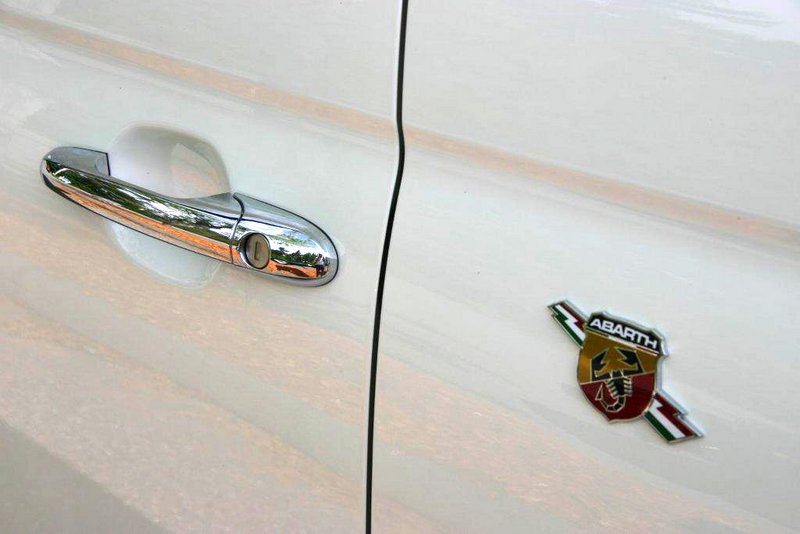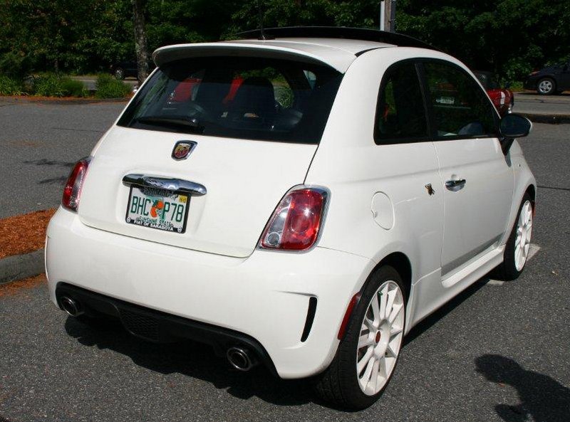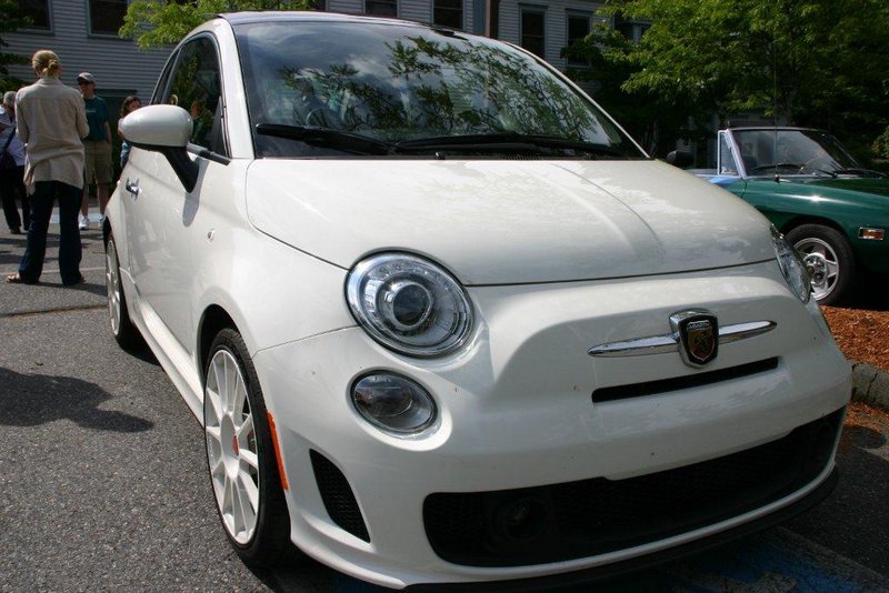 Beverley Fisher in Fred’s brand spankin’ new white Fiat Abarth! Fred