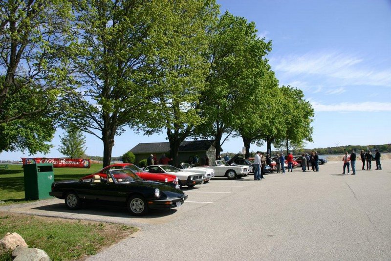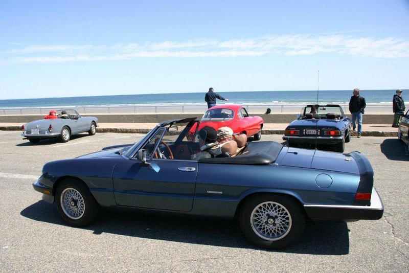 An addendum by long-time member Sam Surprise When I fired up my ’87 Alfa Spider Veloce last Saturday at 7:30am here in Portland, Maine, it was a brisk 29 degrees. It had been about 8 years since I last joined my fellow Alfisti at the Lars Anderson Museum, and I was excited to be a part of the Beach & Waterfront Tour at Hingham Beach. I had coerced my significant other, Karen, that it would be much warmer farther south. She was skeptical, to say the least (and correct, of course). Well, as we all know now, it didn’t warm up much but the sky was clear, the coffee hot, and the conversation plentiful. What a great road trip! Between the meandering roads thru some extremely nice neighborhoods, the frequent views of the oceans, and a lively luncheon to cap it off, Karen and I were thrilled to be hanging with 37 passionate Alfisti. Well worth the two hours to hook up. In fact, during lunch, our table-mates showed enough interest in a Maine road trip that Karen & I decided to organize a similar coastal trip this summer beginning here in Portland. The date would be Saturday, July 14th. I figure a 10am start time, a couple of hours snaking up the coast, lunch at a quaint eatery on the water, and then take it inland for some gear-pounding country roads, ending at 369 Capisic Street, my humble abode in Portland, where we can fire up the BBQ. I’d be a proud Alfista to have 22 Alfas parked in my yard in the dead of summer, or as they say in Maine, “Summa”. There are plenty of stores nearby so people can pick up whatever they want for the grill at the end of the day. I’ll provide a list of hotels and B & B’s for anyone who wants to stay over and I’ll work with Tom to post the details. If anyone has any questions, feel free to call 207-879-4560 or email sam@surpriseadvertising.com. (I even have a buddy in Michigan, my home state, who’s thinking about trailering his ‘85 Alfa Spider out just for the event.)