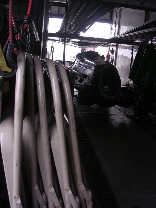 The darkened trailer inhabitant is, I believe, a 156 Alfetta; I’m