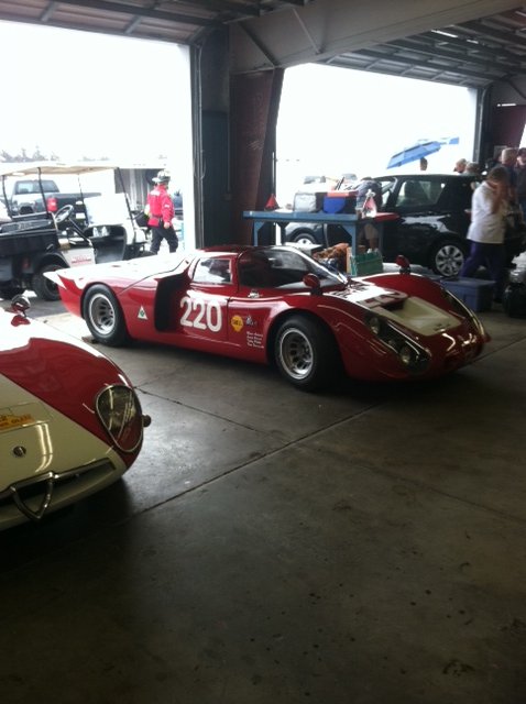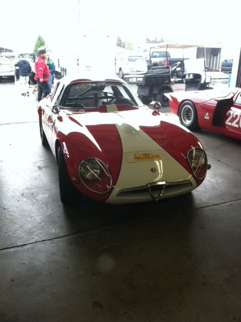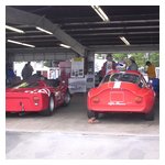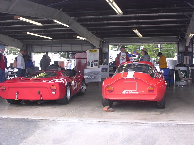 The SZ 'Coda Tronca' and the Tipo 33 are in the paddock garage at