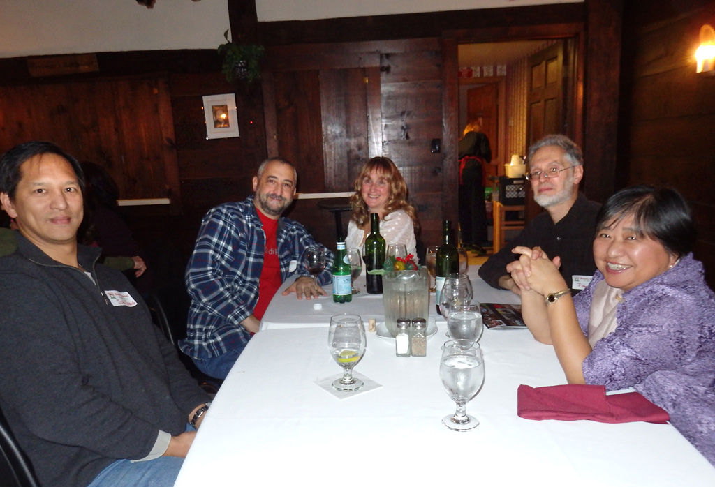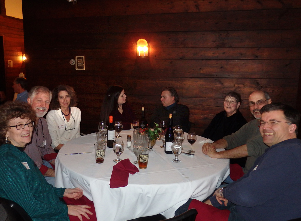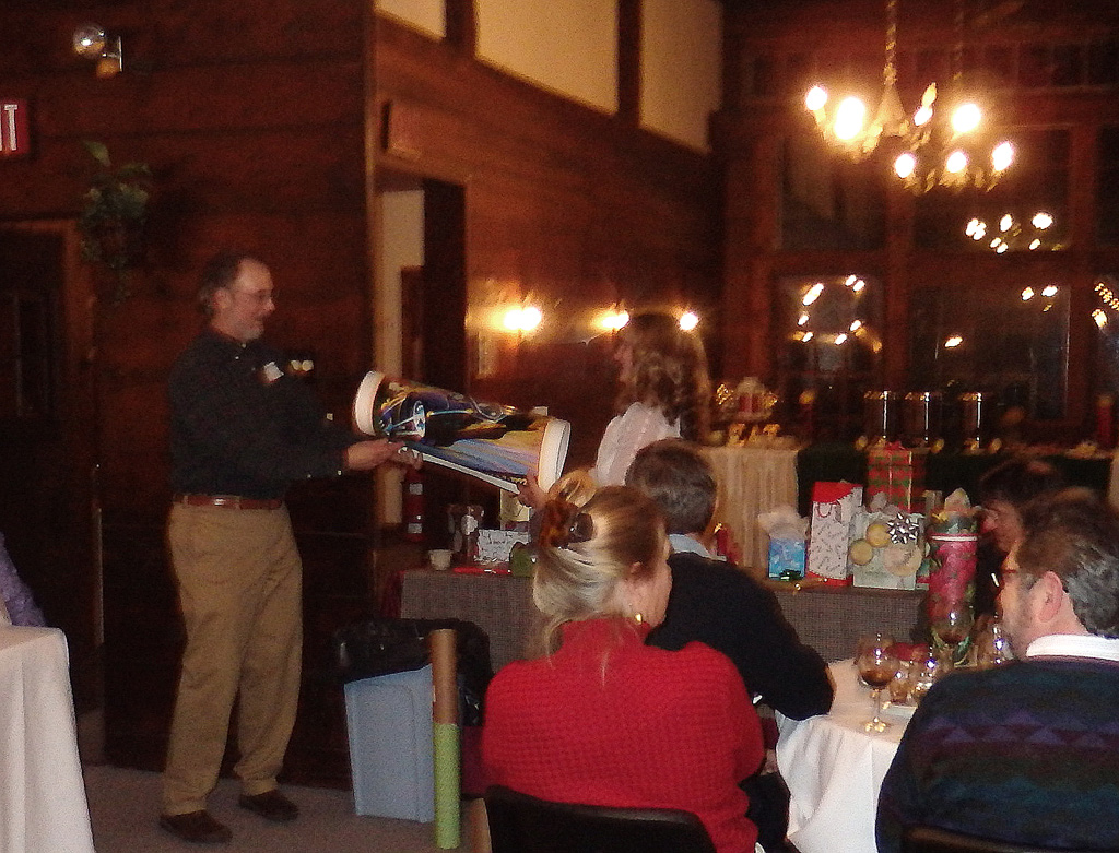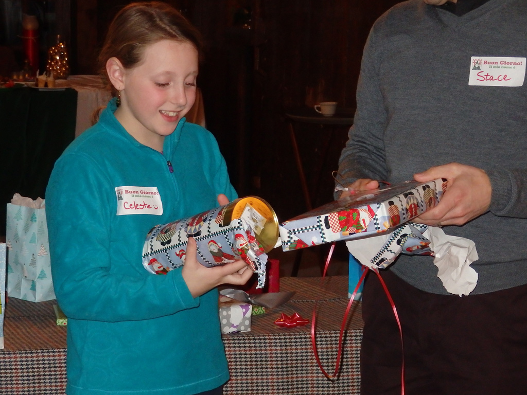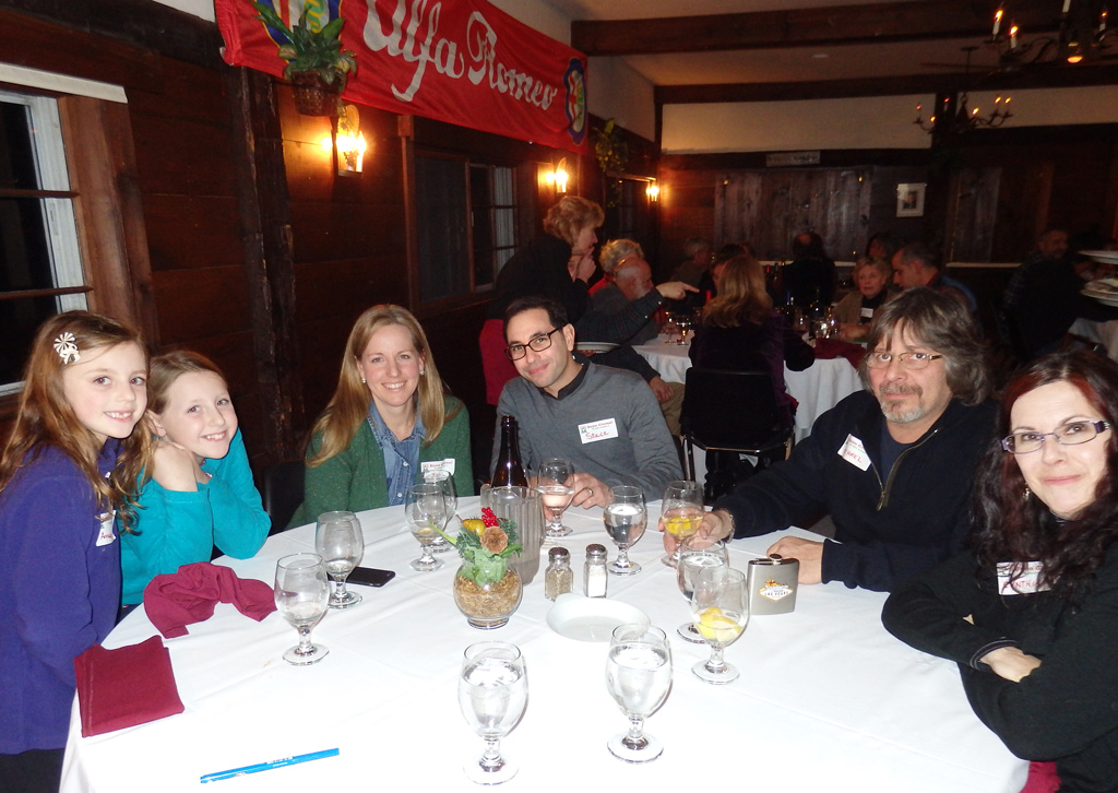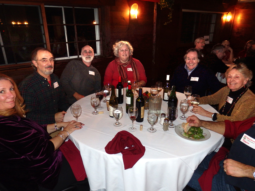 Text and photos by Dave Pratt Another boffo time was had by all at this year's AONE Holiday Party, held on December 20th at the Josiah Smith Tavern in Weston, MA. There'd been a little concern that, being so close to Christmas, the turnout might suffer due to other holiday commitments, but such was not the case. Well over forty people were on hand to enjoy the festivities! The revelers started rolling in around 4 PM and the party was soon in full swig, errrr, full swing. We uncorked our holiday beverages and gathered in impromptu groups to regale each other with Alfa and non-Alfa chatter. Our most excellent caterer of these past several years (Tastings Caterers of Framingham) came around to us with various appetizers as well as providing a separate table with more pre-dinner goodies. It was hard to show restraint, knowing that dinner was still ahead. To provide a backdrop to the frivolity, we had a slide show running with over 250 photos taken at AONE events throughout the year that's nearly behind us. This was accompanied by a swingin' set of holiday tunes playing softly in the background. Then the main course was brought out — courses, to be more accurate. There were many various dishes to choose from, highlighted by their signature lobster ravioli and a meatloaf that far surpassed its pedestrian name, but all of the entrees were delicious. So we loaded our plates, took them back to our tables, and proceeded to dine with gusto. Before too long, the chafing dishes were replaced with several trays of Tastings' memorable assorted desserts, and coffee and tea cups were filled. All of this was accompanied by much boisterous holiday cheer. Afterward came the eagerly anticipated Yankee gift swap. There were many wonderful (and otherwise desirable) presents that got unwrapped — sports car books, car care tools and supplies, blankets, scarfs, wine, Alfa models, and of course a few bottles of limoncello, just to name a few. A lot of the gifts were so good that people elected to keep them rather than swap, but a number did change hands, and we noticed that a fair amount of bartering also took place after it was all over. Much fun! When the AONE Holiday Songbook was passed around, a lot of our attendees headed for the exits (with good cause), but several stalwarts helped to butcher the Alfa-centric holiday tunes, which this year used the arrival of the Alfa Romeo 4C as a theme. Gradually, the party broke up and everyone headed homeward, full of great food, bearing their swapped gifts, and bursting with holiday cheer. Our thanks go to President Tom Lesko for making all of the arrangements for this, our final 2014 event, and for not playing his holiday opera music.
