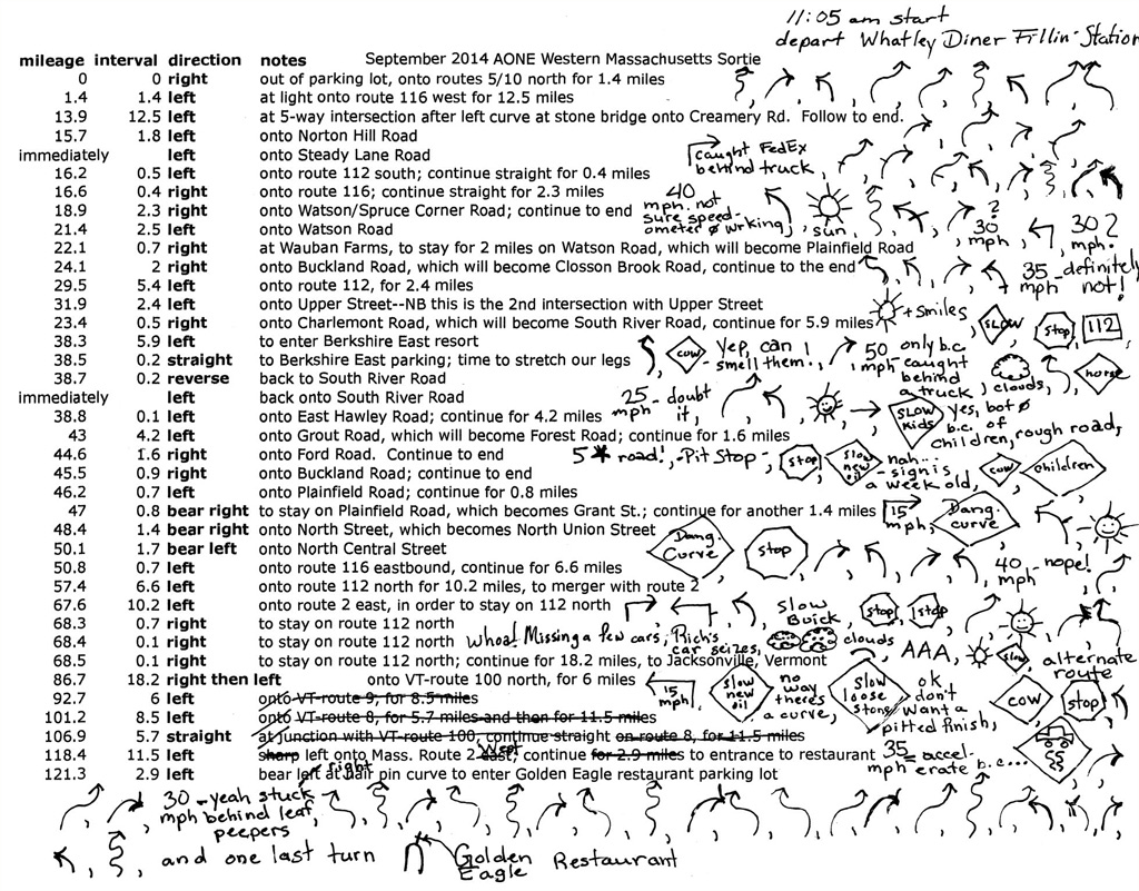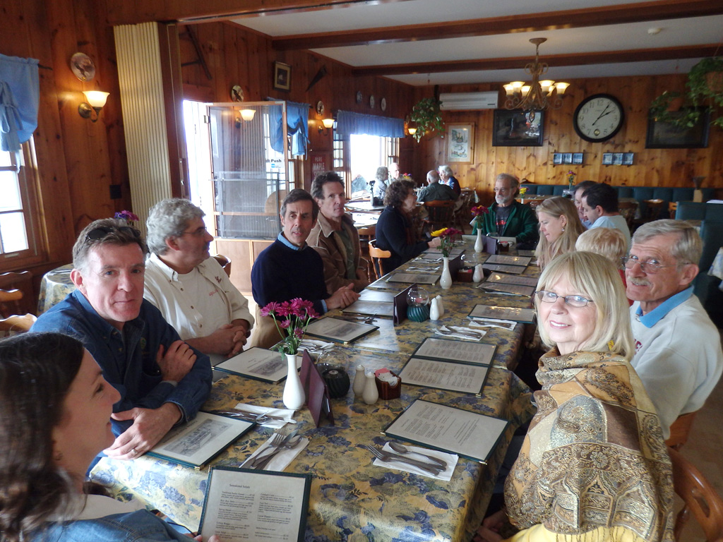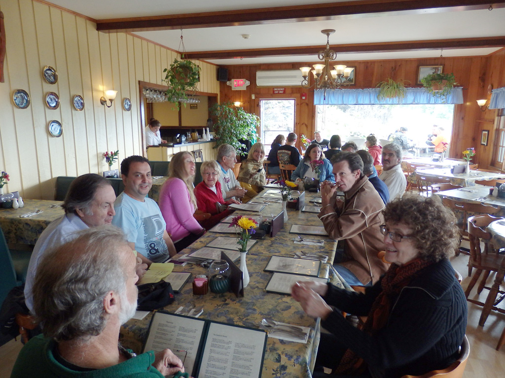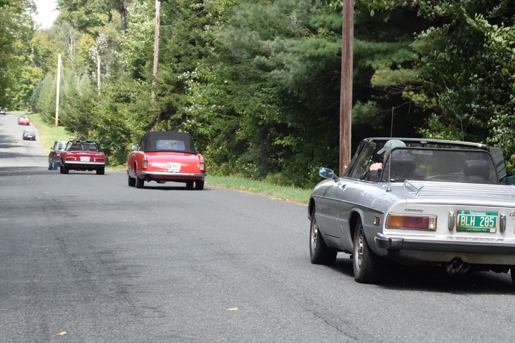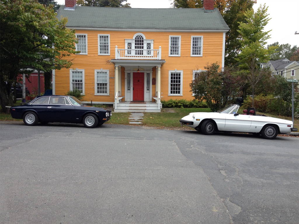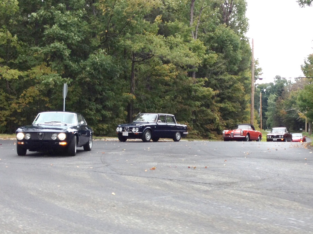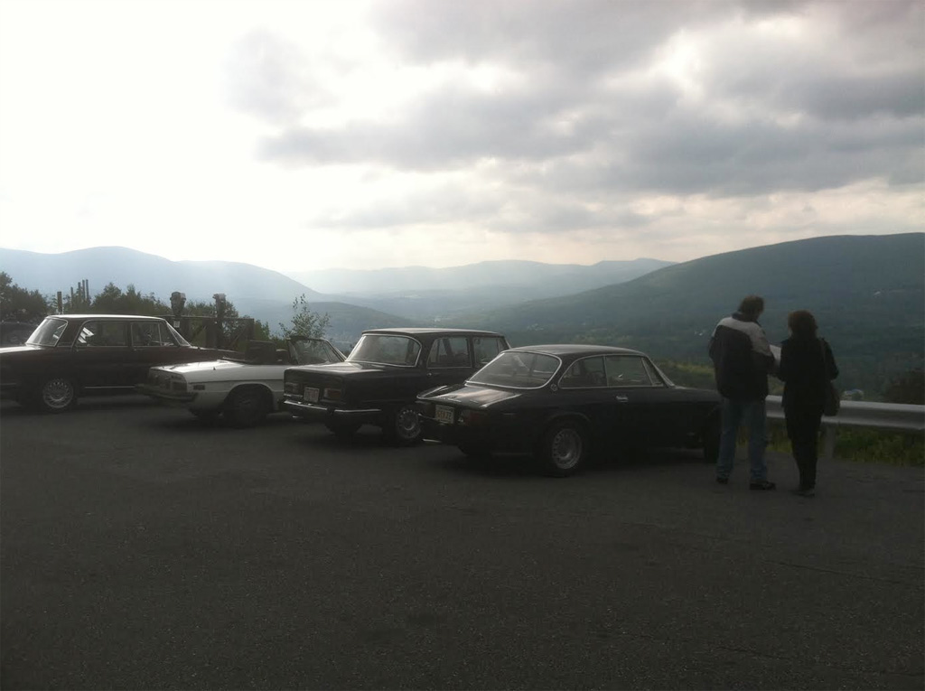 There was not much sun shining down on the parking lot at the Fillin' Station, but as more Alfas rolled, rumbled, and purred into the parking lot the smiles on everybody's faces at seeing old friends and beautiful cars provided a glow to the morning. Jeff Greenfield, last year's birthday boy and luncheon host, and his elegant wife Valerie came in their 1974 Berlina, complete with specialized license plate that appropriately reads ALFAMD. They brought along another very western Massachusetts resident and enthusiast of Alfa Romeos, and Pharoh Dogs, John Woodruff in the youngest and one of the sprightliest Alfas, a 1991 Spider. Filling out the lineup were Tom Freiberger, who got the morning off and showed up from Vermont in his computer-assisted silver 1974 Spider. Yes, he still has his Montreal (and his Giulia GT and his Lotus), but chose the Spider for this outing. Ready to give his recent engine rebuild a true test of high RPMs, opposing turns, and unexpected quick braking was Rich Rumelt, from Greenfield, Mass., in his 1979 burgundy Spider Veloce. (Phil does not recommend the Super 8 motel in Greenfield; maybe Rich has a better suggestion.) Rounding out the roster were ever club faithfuls Dave and Vivian Pratt in their (ahem!) "lesser" car. What? Yes, Dave and Vi have passed on to their nephew, along with a year's membership to AONE, their lemon giallo 1974 Spider. They can't give up the company of great Alfisti friends, though. (That includes you, reader.) Just in time for the drivers' meeting, thanks to Nancy's 8:30 am nudging Steve to wake up, were Steve and Nancy Perry in their 1978 Spider. Last-minute scratch entry Dan and Deb Donovan dropped out the night before due to an uncooperative 1988 Spider. They were sorely missed. Hope you can get the car in order for the Wachusett run. A quick briefing by Walker and distribution of route copies, complete with turn-by-turn directions and mileage and interval notes, saw everybody ready to get behind the wheel or in the navigator's seat. Cloudy skies meant that some tops stayed down, some stayed up, some debated the theory of occupants' age and outdoor temperature before determining if their top would be up or down. The hard tops remained in place and the cars negotiated into formation after engines snapped, jumped, clattered, or sputtered to a start, a true Italian sports car symphony. Giorgio did not get the pole position behind Walker in the pace car. That went to race-experienced Phil with Giorgio behind him. Next were the ever-great teammates Karen and Roger (FYI: they compete in Ballroom dancing, canoe and kayak competitions.) With anticipation of a lively drive, Rich and first-time tour attendee John closed in behind the Carlsons. Tom Freiberger, Steve and Nancy, Jeff and Valerie fell in ahead of sweepers Dave and Vivian. There would be shifting of position both during the drive and after the break. Unable to join the ride, Ken gave us a hearty wave as we made our first move onto Massachusetts routes 5 and 10, our entry to the hills and turns of Western Massachusetts. Our drive started out with a warm-up of a few turns, a pass through some remaining post-Sandy road construction, and a slow-down behind a FEDEX truck. As navigator, I intended to read Jane Eyre, but it quickly became clear to me that I would need one hand to hold my hat on my head and one hand for the "Oh, ***t" bar. With the only traffic lights of the route negotiated and all cars perfectly aligned behind him, as soon as the FEDEX truck pulled over Peter gave the pedal greater acceleration. All others followed suit and Jane Eyre and Rochester tumbled to the footwell. Thornfield may have had a mad woman in the attic; we had a few mad men in the cockpits. The drivers were all focused on the road and the car in front of them; navigators saw the landscape pass in a blur. Each yellow "curve-in-road" sign meant another acceleration. There were many such signs: to the right, to the left, squiggles, 90 degrees to the right at 15 mph, 90 degrees to the left at 15 mph, squiggle to the right, squiggle to the left, and dangerous curve. On a rare straight away, noted as 2 miles long, Giorgio made his move and gained the position behind the pace car. There may have been one or more over-takings. I don't recall; I was busy holding on and rescuing Rochester and Jane Eyre from the footwell. There were also yellow diamond signs warning of slow children, cows, horses, new oil and loose stone. Children don't play outdoors any longer; we could smell the cows, never saw any horses, and the oil was at least a week old, but we did slow down for the loose stone. We didn't want to mar the old or new paint jobs on our fine Italian ponies (and one German pony). After a breezy five-mile run down a 5-star road, we pulled into our pit stop, Berkshire East Ski resort. We took the opportunity to inspect and test the newly expanded facilities, get reacquainted, or settle some nerves. I shared my observation that each time Peter accelerated the clouds receded and the sun came out. Apparently desiring more sun Rich replied, "Well, then. Let's accelerate some more." Ready for more and looking forward to lunch, drivers and navigators remounted their steeds Mesrours and buckled in. Our Pilot carried on at a vigorous pace, circling back in the direction of South Deerfield, but somehow with minimal backtracking and not losing sight of our lunch date in the other direction. The sun came out as we accelerated through more turns followed by a six-mile straightaway. But then there was a cloud that no Italian pony screams could obliterate. Rich's steed seized up. Witnesses tell of hearing a terrible noise. Two tire streaks on the pavement showed exactly where his car's engine seized. Rich tells of knowing just what to do: throwing in the clutch, going into neutral and rolling to a stop. Fortunately, there was cell service (never dependable in the area) and those near Rich were able to contact Peter in the front. A