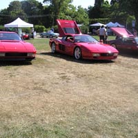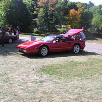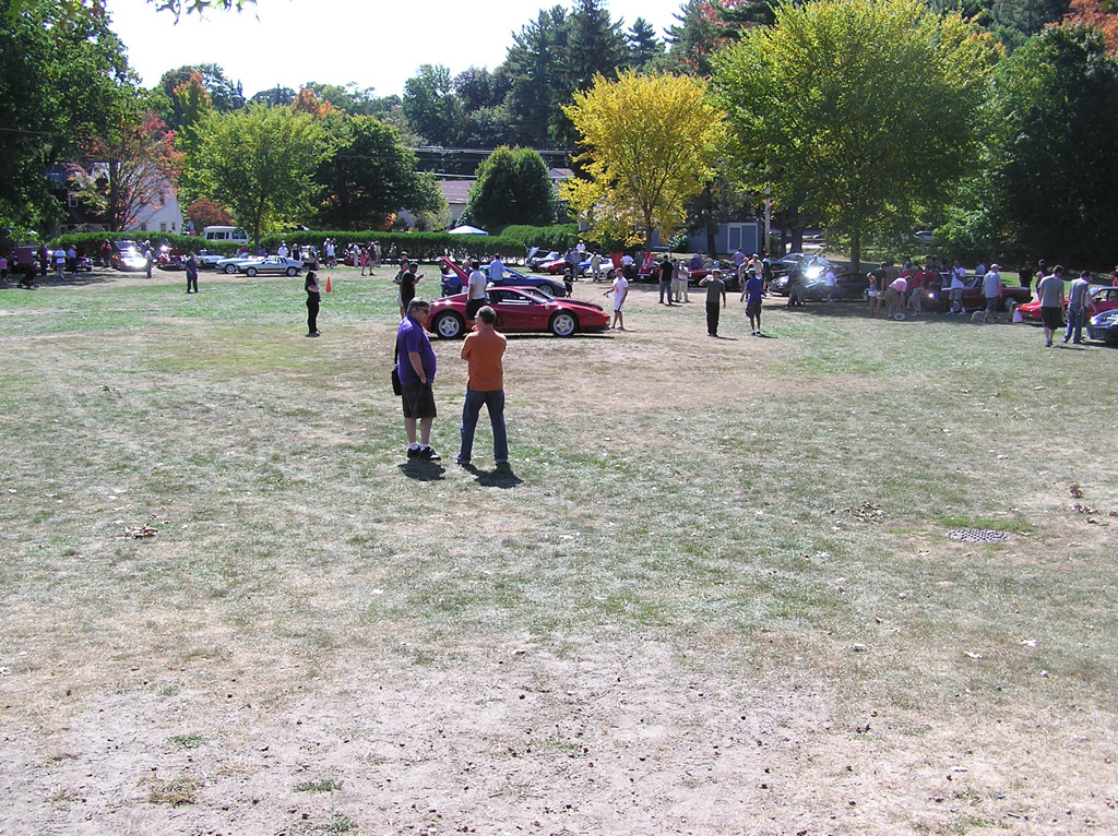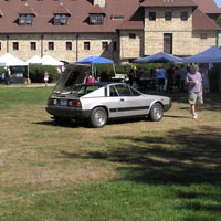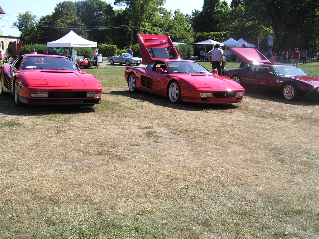 The dealerships skip Tutto Lite; only private owners, mostly in older cars, attend. So for those who enjoy seeing assembled in the same place numerous Italian cars, from late-1980s Testarossas to all kinds of Fiat 124s, Tutto Lite offers much of the "same great flavor" as the regular Tutto Italiano, but without the commercial displays. But Tutto Lite this year was also definitely "less filling": less filling in the sense that all the cars shown fit — and then some — on the lower lawn (the area during Tutto Italiano where the Fiats, Lancias, and Alfas are usually parked). And they were not parked by marque and model: Alfas, Ferraris, Fiats, a Lancia (Carl Helmetag's Beta Montecarlo — or Scorpion), a single Lamborghini, a couple of Panteras and three Maseratis were all mixed together.