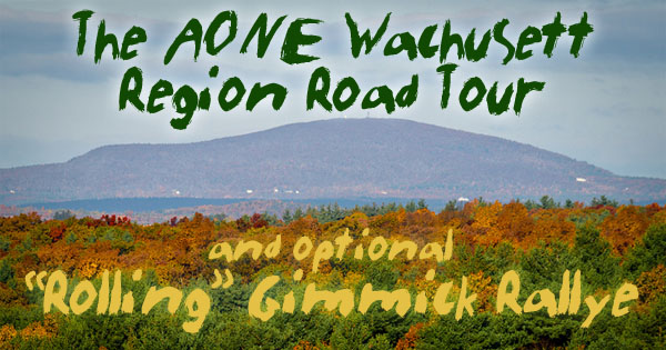 THIS YEAR'S TWIST? A new lunch spot and we've added an optional "rolling" gimmick rallye. We'll travel as our usual tour group. But you can, if you choose, try to find the answers to our gimmick rallye questions/clues as we roll along. No stopping, slowing down, turning around, using cellphones or GPS. Just keep your eyes outside, enjoy the scenery and hopefully be doubly entertained. VERY IMPORTANT: This year we will again meet at the TOP of Mount Wachusett. There is a small $2 entrance fee, but the view is well worth it! There are restrooms at the base visitors center if you want to stop there BEFORE joining us at the top. There are also portapotties at the summit. Join us for coffee "and" at 9:30; leave at 10:00AM.