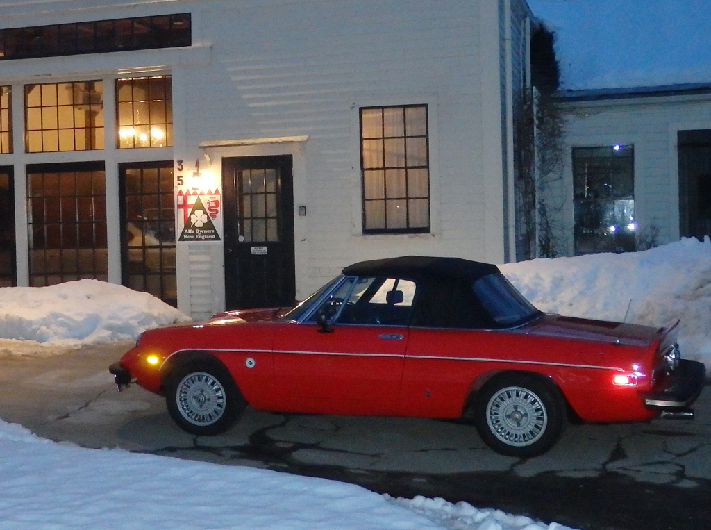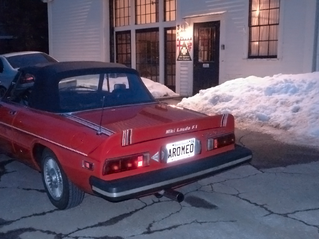 Michael and Debra Leccese indeed showed up to the event in their 1978 Niki Lauda edition Spider! As promised, they got to park right in front of the Tavern door — see the photos below. Not only that, they brought along an assortment of Lauda-related books, models, and other paraphernalia and set them out for display on a table near the entrance.