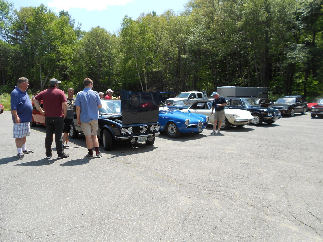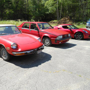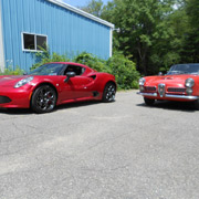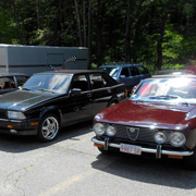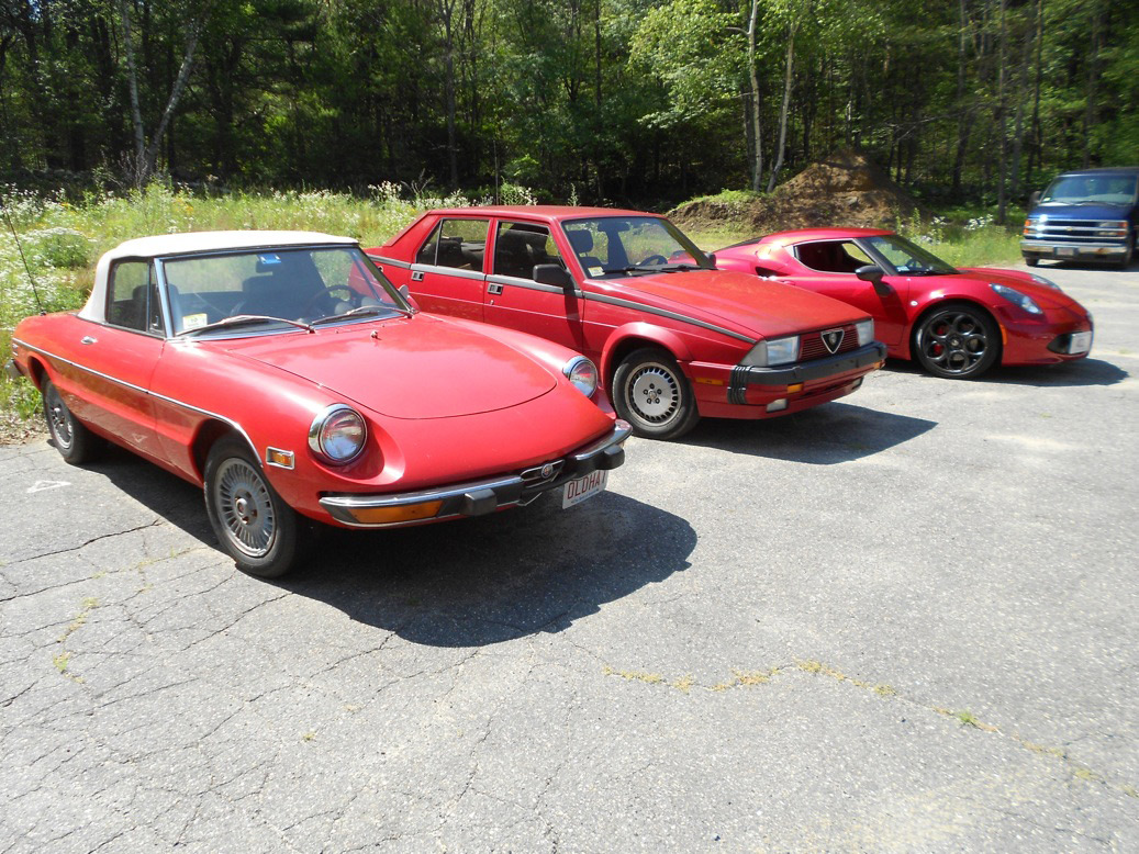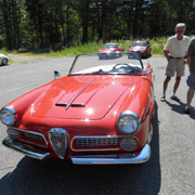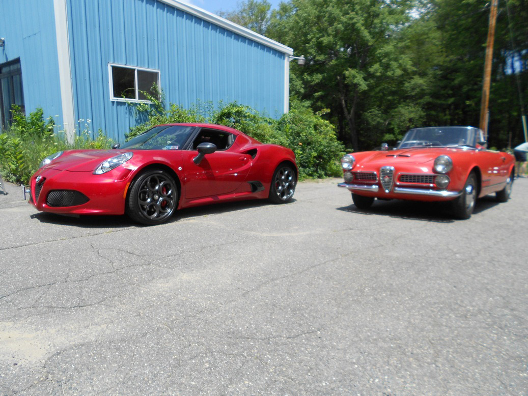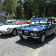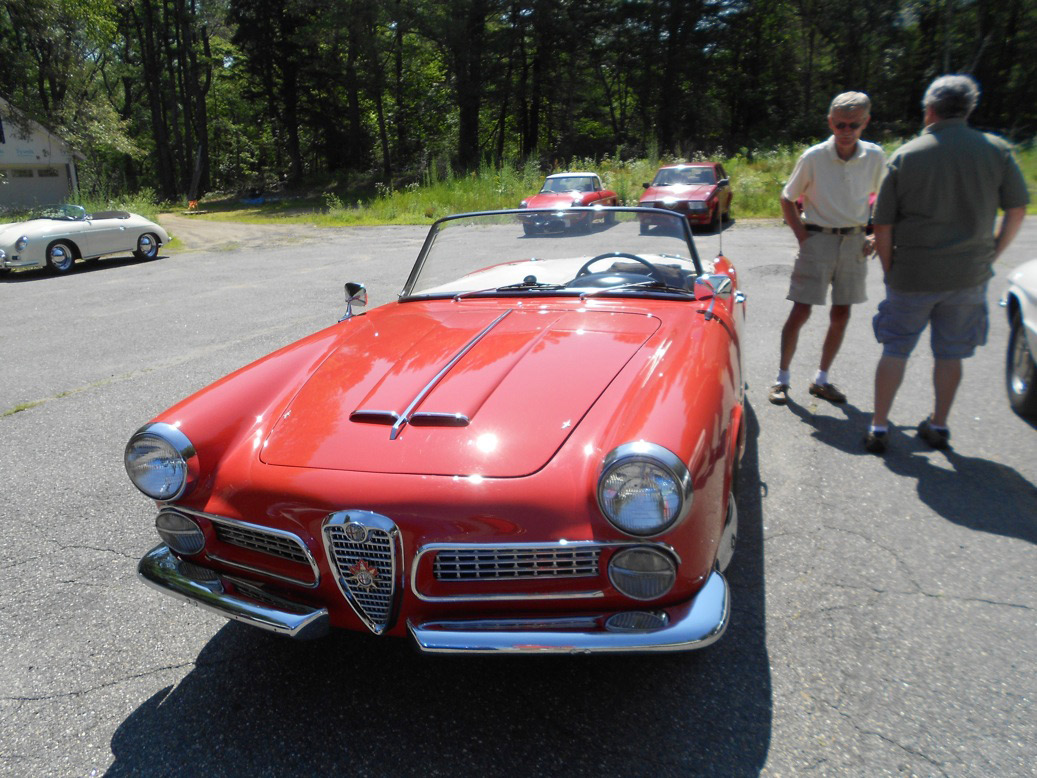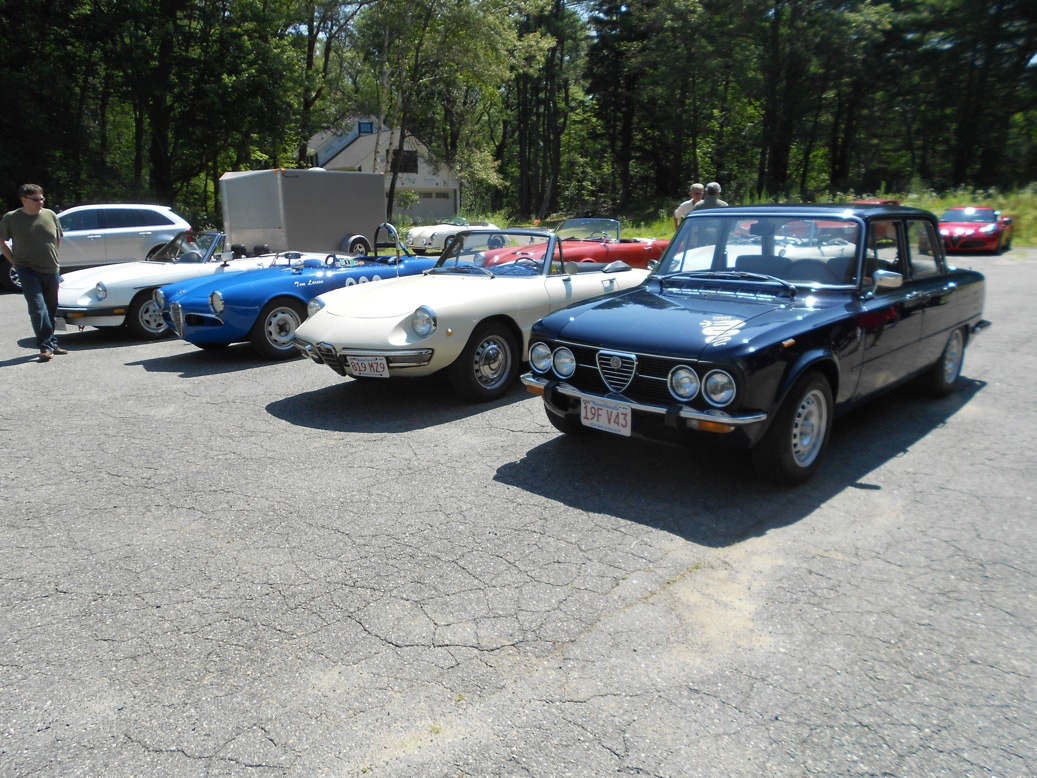 On a gorgeous summer day, Alfa motorheads got their annual fix of techno talk as Paul Glynn, Michael Wrigley, and Ian Anderson played their roles as the Alfa answer-men for over three hours. Combined with their expertise, the Glynn Motorsports shop's always impressive inventory of equipment, lifts, tools, and engine rebuild room are a reminder of their long-standing reputation to diagnose and fix what Murphy, aging, neglect, or Alfa hackers have bestowed on your sports car. For the mechanically minded, suspension components were laid out, undercarriages were visible on lifts, several Giulietta racecars were present (including Paul's winning ride at Thompson), and a Duetto and GTV were undergoing rehab. As in the past, many club members re-connected, if they had not already at recent convention events. We lost count of the number of Alfa owners (and Alfa wannabes) attending who brought their sports cars (and trucks) to Rowley. For example, Fran O'Connor brought his new 4C, Gary Hoyt and Rod Burdick arrived from R.I., Roger Carlson had his wonderful 2000 Touring Spider on board from Connecticut, Tom Larsen brought his Giulietta racer, and Giorgio Kradjian had his Giulia Nuova 1300. Duettos, GTVs, Spiders, and Milanos were plentiful, but the 164 crowd must have been at the beach. So, start saving your new tech questions again for next year's event for the GMS answer-men. [As you can see from the photos, the turnout was terrific for this year's Glynn Motorsports event. Thanks, Tom, for putting it all together again! — Ed.]
