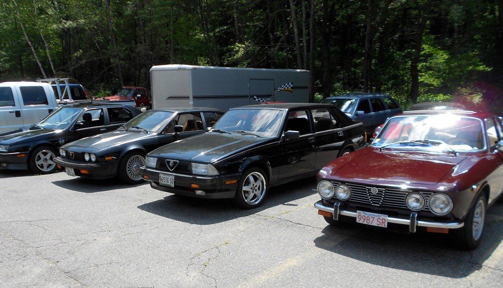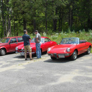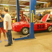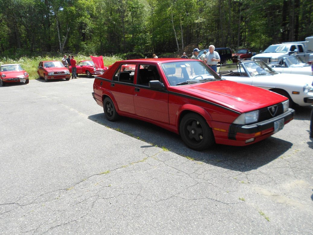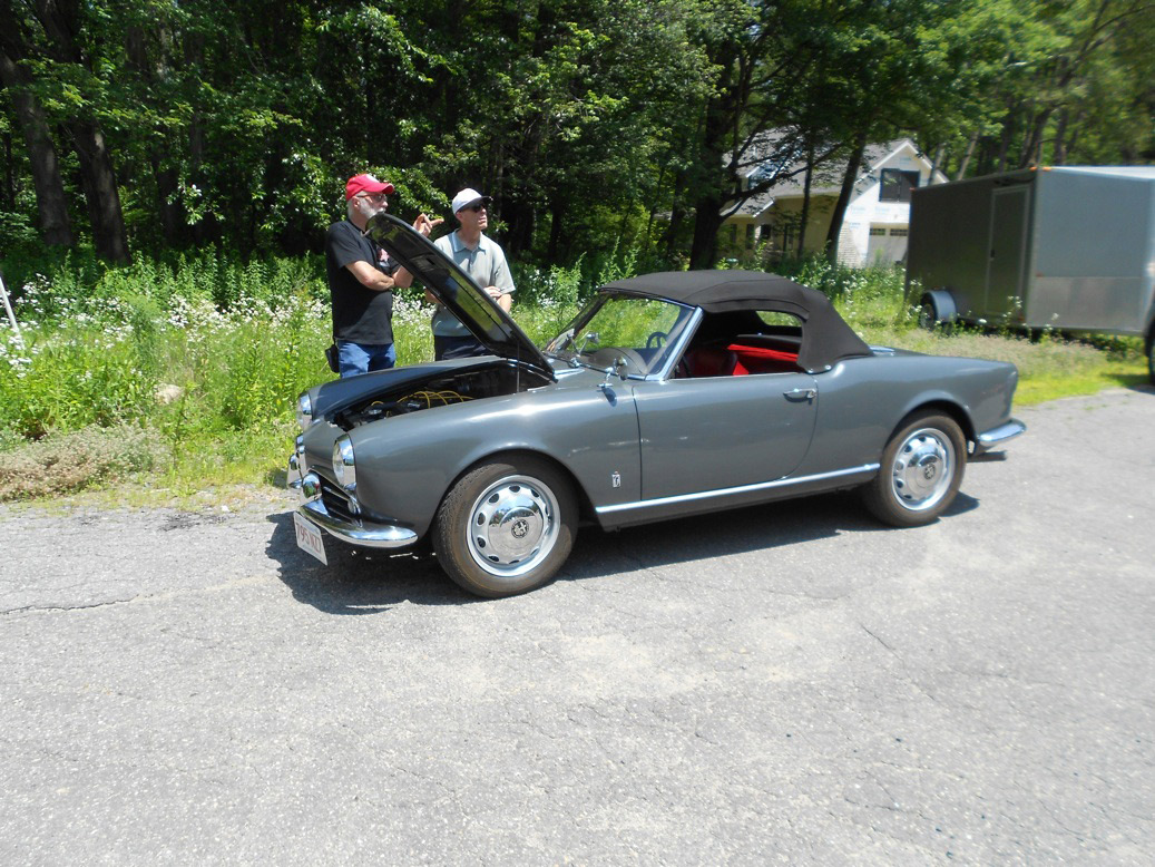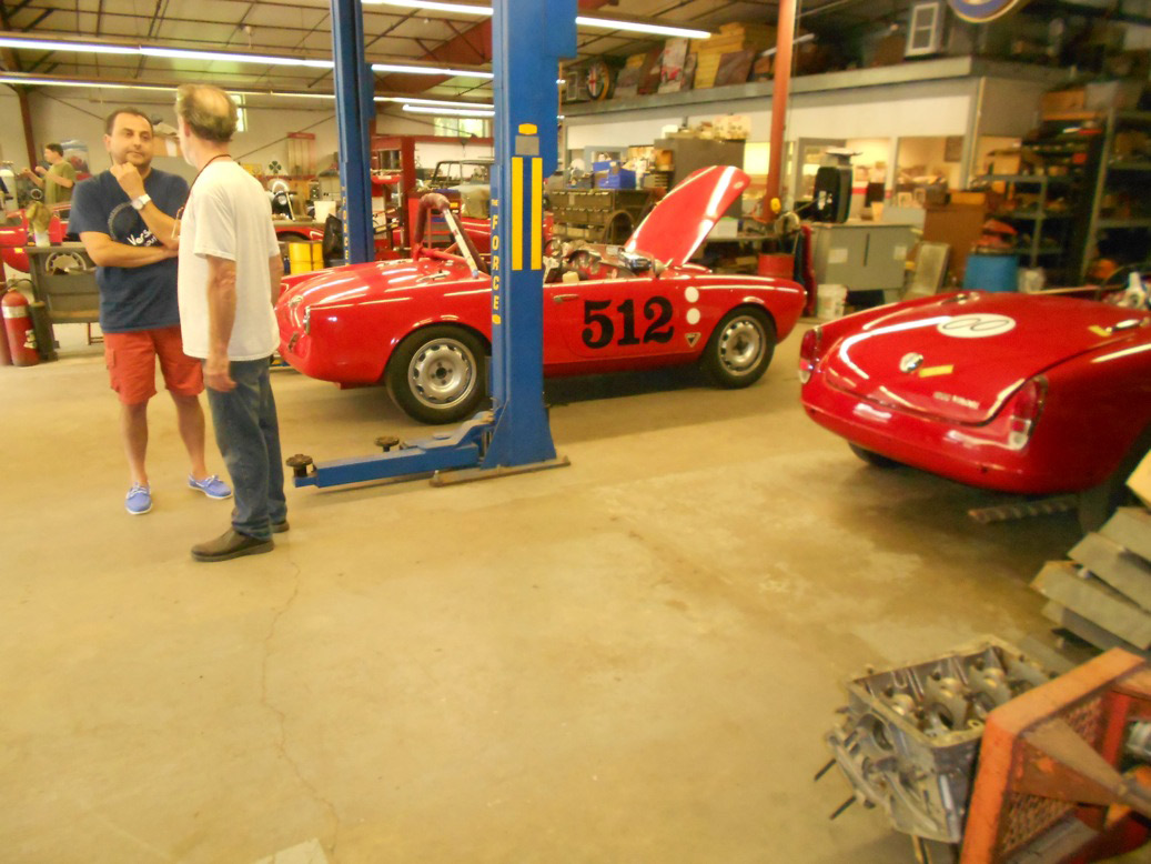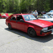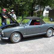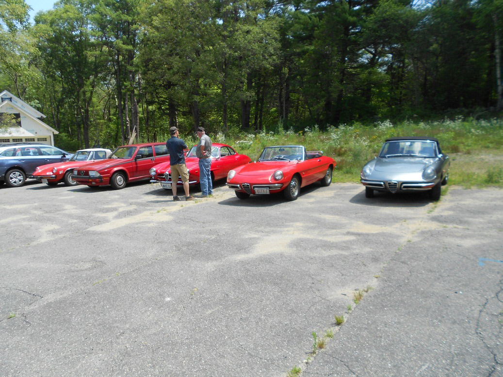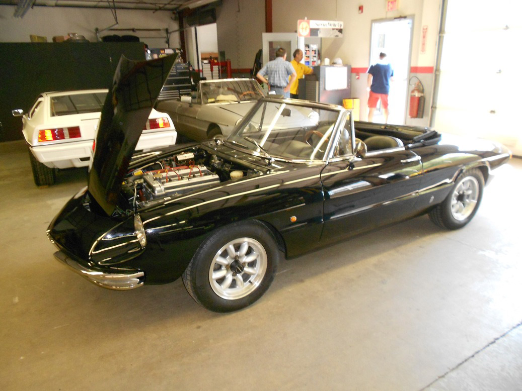 On a gorgeous summer day, Alfa motorheads got their annual fix of techno talk as Paul Glynn, Michael Wrigley, and Ian Anderson played their roles as the Alfa answer-men for over three hours. Combined with their expertise, the Glynn Motorsports shop's always impressive inventory of equipment, lifts, tools, and engine rebuild room are a reminder of their long-standing reputation to diagnose and fix what Murphy, aging, neglect, or Alfa hackers have bestowed on your sports car. For the mechanically minded, suspension components were laid out, undercarriages were visible on lifts, several Giulietta racecars were present (including Paul's winning ride at Thompson), and a Duetto and GTV were undergoing rehab. As in the past, many club members re-connected, if they had not already at recent convention events. We lost count of the number of Alfa owners (and Alfa wannabes) attending who brought their sports cars (and trucks) to Rowley. For example, Fran O'Connor brought his new 4C, Gary Hoyt and Rod Burdick arrived from R.I., Roger Carlson had his wonderful 2000 Touring Spider on board from Connecticut, Tom Larsen brought his Giulietta racer, and Giorgio Kradjian had his Giulia Nuova 1300. Duettos, GTVs, Spiders, and Milanos were plentiful, but the 164 crowd must have been at the beach. So, start saving your new tech questions again for next year's event for the GMS answer-men. [As you can see from the photos, the turnout was terrific for this year's Glynn Motorsports event. Thanks, Tom, for putting it all together again! — Ed.]
