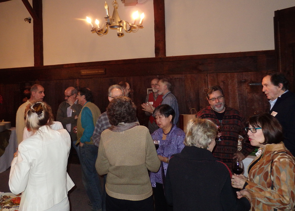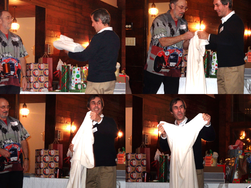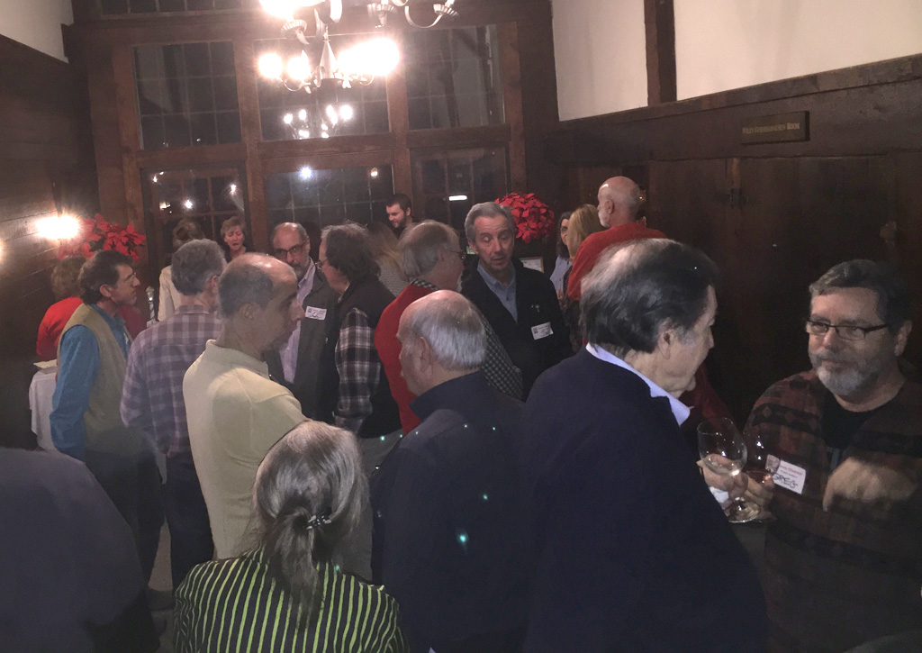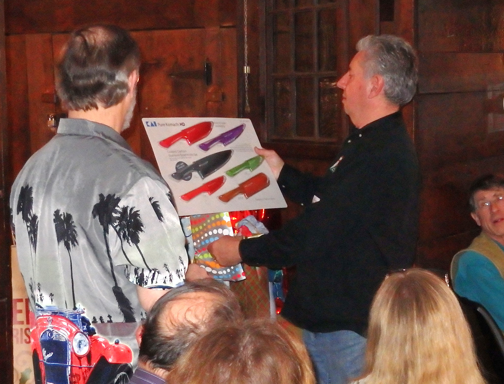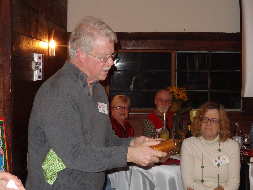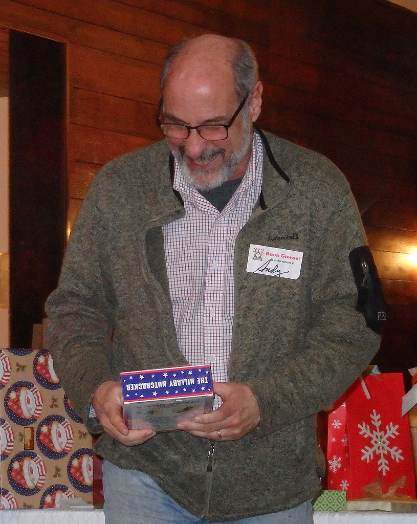 Text and photos by Dave Pratt Christmas in July? Not quite, but the temperature did climb up well over 60 degrees on December 12th, the day of our annual AONE Holiday Party. Besides providing good travel conditions for everyone, it meant that we had several Alfa Romeos parked in front of the Josiah Smith Tavern! Two of the Alfas were particularly notable: First, Phil & Mary Kotsios brought their stunning red Alfa 4C, and garnered the place of honor right in front. And Peter Walker & Meg Anderson arrived in their '77 Spider … with the top down — a first in Holiday Party annals! Honorable Mentions go to George Dolak who also brought a Spider and Greg & Andrea Stidsen who brought their '94 164Q. Be sure to check out the photos of them all. There was actually more tire-kicking outside at our Holiday Party than there was at our Spring Kickoff Meeting earlier this year, when it was cold and snowing! Once the forty of us were inside, we were welcomed by the congenial Tastings Caterers wait staff, who wandered among us offering their delectable hors d'oeuvres. We all cracked open the various beverages we'd brought and proceeded to enjoy the food, drink and each other's company. There was a table set up with even more offerings in the appetizer vein for our enjoyment. Also welcoming us were a free-running slide presentation displaying photos from all of our AONE events of the past year, accompanied by some jazzy holiday background music, prepared for us by President Tom Lesko. Also displayed on the big screen were some racing videos provided by AONE member / vintage racer Roger Cassin. Roger had an outstanding 2015 season, grabbing several checkered flags and winning the Gold Helmet award at the Vintage Racing National Championship. Soon, the main course was announced and we all eagerly queued up, since most of us could remember what excellent cuisine our caterer provides from previous years. And we weren't disappointed, as they once again came through with some truly outstanding fare. The forty diners were seated around five tables of eight persons each and, judging by the level of loud chatter and boisterous laughter, it was easy to tell what a great time everyone was having. After dinner, the revelers were forced, errr, encouraged to participate in our traditional holiday sing-along. Everyone was given a copy of our Official AONE Holiday Songbook containing popular holiday tunes, with lyrics corrupted to make them Alfa-centric. There were several new ones this year, honoring the actual availability of Alfa Romeos again at U.S. dealers, and a nod to the wonderful gathering of Alfas on Federal Hill at our National Convention in June. Finally, it came — the moment everyone was waiting for — the start of the Yankee gift swap! It's always such a hoot, and this year's was no exception. There was a wide assortment of diverse gifts … with one exception: there were seven bottles of Limoncello! Besides that, a lot of nice bottles of wine traded hands, as well as many other neat gifts, including scarfs, plants, car care products … and a Hillary Nutcracker. If you look through the photos, you'll get the idea. In case you ever doubted the existence of Alfa gods, consider this: Phil & Mary Kotsios, who graced us by bringing their new Alfa 4C and parking it in front, drew the two very best possible Yankee swap numbers from the hat: #1 and #40. 'Nuff said. When the swap was over, people milled around for a while and eventually started donning their light Spring jackets and drifting out the door. Except for Ki Basel, who found a jacket that resembled hers but wasn't! If you went home with a Patagonia jacket that isn't yours, please contact the Webmaster and he'll put you in touch with Ki, so you can arrange one final Yankee swap. Our thanks go once again to Tom Lesko for making all the arrangements for our revered annual Holiday Party. Great food, great venue, great people, great time! |