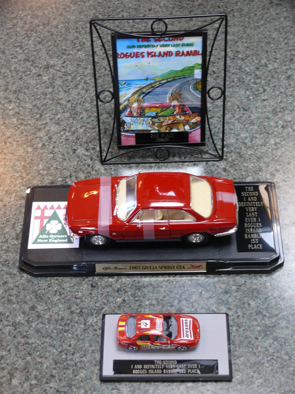 It's almost that time of year to get the cobwebs out, clear the brainwaves, and get thinking about how to be more competitive at, and maybe even win, one of AONE's notorious 'Gimmick' rallyes. Even more important, I want to make sure that AONE members will be highly competitive come this year's 'Rogues Island'-based AROC National Convention, when AROC members from around the country will not have a 'New England Snowball's Chance in Hell' of competing against AONE's very experienced, highly trained, and astute members in so far as their successfully winning in these kinds of events With this thought in mind I have put together another one of my 'World Famous Gimmick Rallies' in order to, again, get the brainwaves and thought processes of our membership back into working gear. This 'Gimmick' rallye, to be known as "The 2nd and absolutely, positively, very last, ever, Rogues Island Ramble", will be held on Saturday, May 9th (rain date May 16th), and will launch from the Diamond Hill Park parking lot, on Diamond Hill Road (Route 114) in Cumberland, RI (click the Map & Directions button above). And while the website above still calls it a 'State Park' … it ain't! We, the residents of Cumberland, now own it. Please arrive as close to 9:00AM as possible for the Drivers Meeting and coffee & donuts. First car off will be at 9:30AM and cars will be spaced in 1-minute intervals. There will be opportunities to make visits to two different locations along the way, one on each leg. The first is Cumberland's famous Phantom Farms. This stop will also serve as the half-way point of the Rallye, allowing for a quick visit and helping the local economy by buying some of their excellent products (baked goods, especially their pies). Zeroing our odometers, we will then begin leg #2, again spaced at 1-minute intervals. There will be a short stop at the famous and beautiful Mt. St. Mary's Abbey on Arnold Street in Franklin, where you can find some of the finest candy products and jams anywhere. I also thought that stopping there would be a good idea as we could ask the good Sisters to say a prayer on behalf of the many AONE members who will competing in the National Convention Rallies. ;-) The entire route (both legs combined) will be approximately 50 miles in length and will cover a good portion of Cumberland, Rogues Island, moving over into parts of Franklin, Wrentham, North Attleboro, and Plainville, MA, where we will see some beautiful farmland and horse farms. Some sections of the route were previously used in 'Rogues Island Ramble #1', which ended at the 'world famous' Cumberland House of Pizza on Mendon Road in Cumberland. I decided on ending this event there, as many members were complementary about this facility, their menu, the pricing and the service. Plus, I like to see money being spent here in my hometown. We have a slogan around here called: "Keep the Green ($$$$) in the Valley" (the Blackstone Valley being this part of Rogues Island). As is always the case with all of my 'Rallies', there will be real 'Custom Made' trophies' for 1st-, 2nd-, and 3rd-Place winners (see the photo below). The event will not have any questions that will require the use of smart phones, iPads, etc. GPS devices will be allowed, as we do not want anyone whocan't read overly simplistic destructions to get lost. The only rule of any consequence for this event will be that there will be a timeframe to complete each leg, and there will be absolutely NO BACKTRACKING to find an answer. At the posted speeds you will driving at for this event, if you are paying close attention, and have by now learned how my sick mind works, you will have no problem finding the answers to the event's questions! Lastly, as is always the case, there will be no entry fee for the event, but it is requested that all of those who do intend to come on the 'National Convention Rallye Tune-Up' event to please let me know via email at AlfaRacer1@Verizon.net if you will be attending, and how many. Sign-up deadline is 4PM Thursday, May 7th!