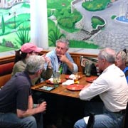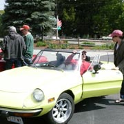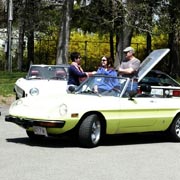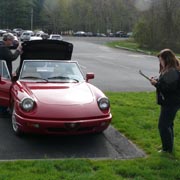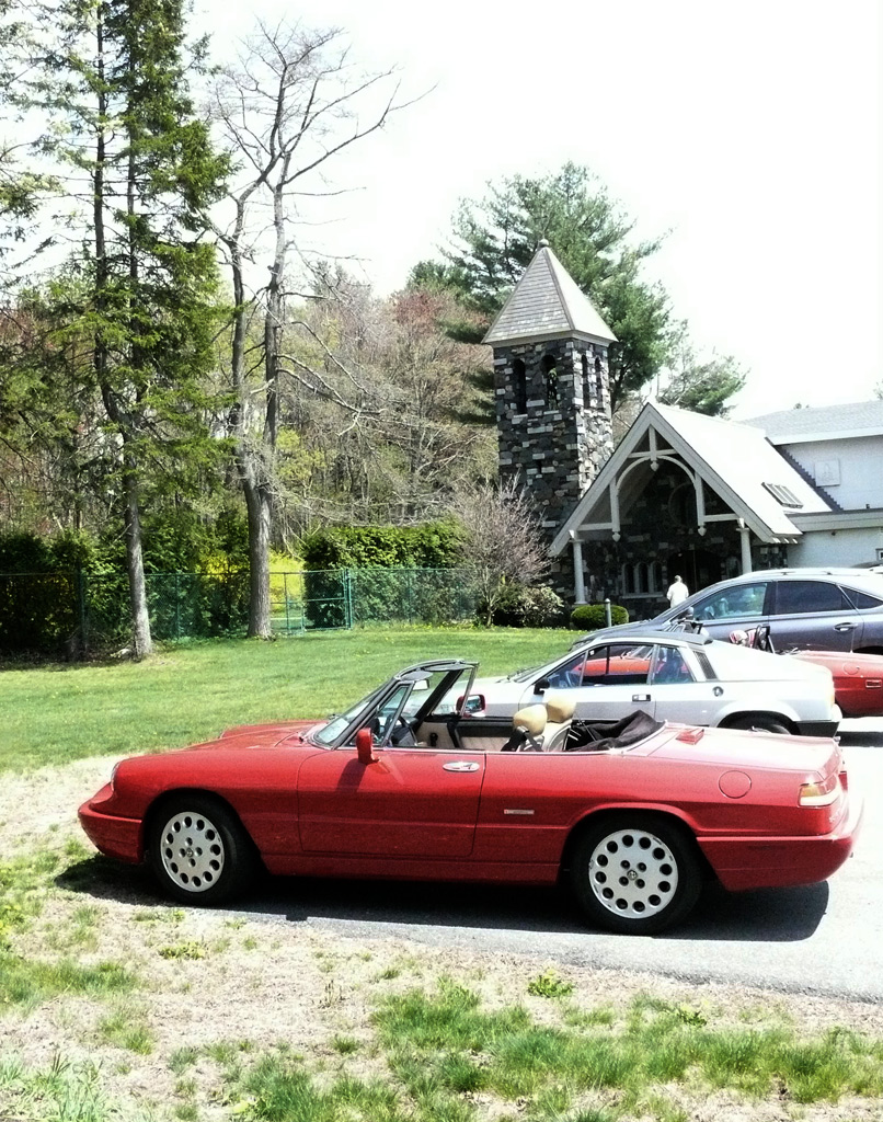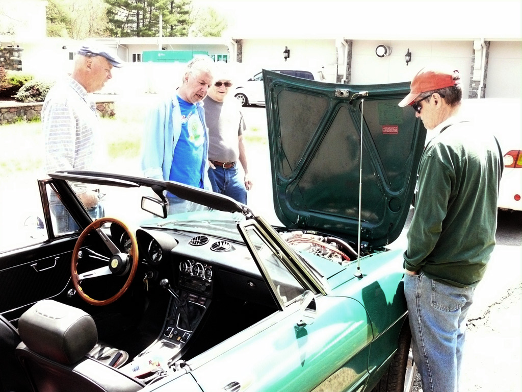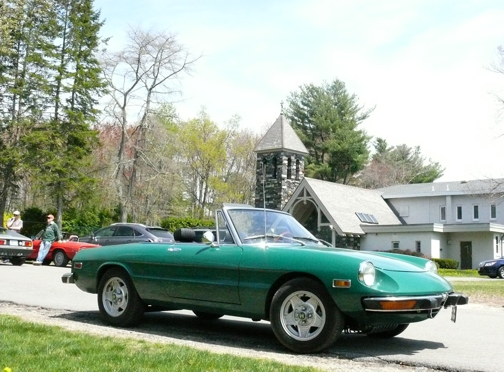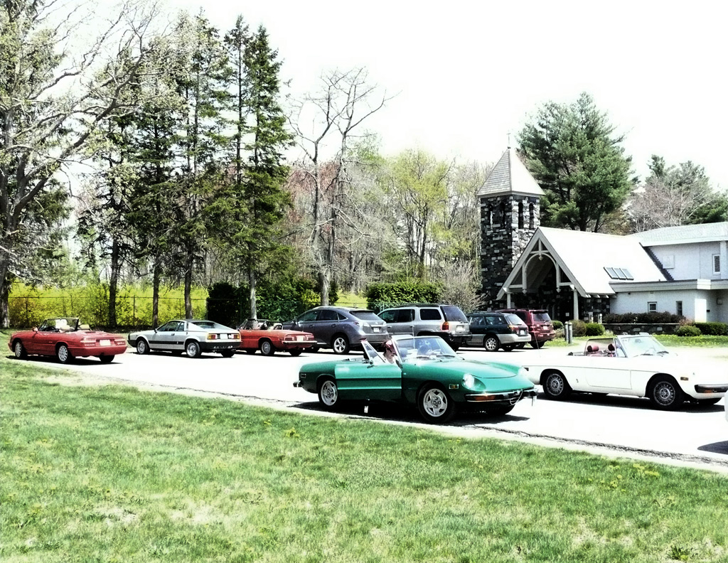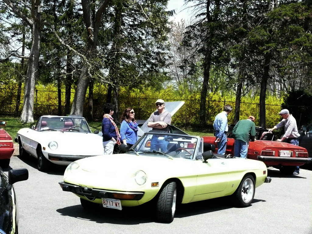 Text & photos by Tom "Let's-Tour-Now" Letourneau Presented here in its complete, original, unabridged, unedited, unadulterated, uncensored form! The 2nd and absolutely, positively, last (maybe) Rogues Island Ramble, a both Tour and Gimmick Rallye combined as one, is now in the history books. And, while I say Absolutely, Positive, Last (MAYBE)... that could well not be the case - there could be a 3rd-one. As I write this I have not, as yet, spoke with John DeWaele, but John has mentioned on more then one occasion he would like to see a Rallye/Tour some day all through his neck of the Rogues Island woods…that being Western and Southern RI and a wee bit of Eastern, CT. Despite my praying for rain…the day turned out to beautifully warn and sunny with everyone running the event…Tops-Down. What's that you ask…why was I praying for rain. Well, actually not for the event, but as my luck goes, I had 10days prior to the event, having put in a new $35,000.00 'Oh My God Septic System, and then spending $2,200.00 to have it landscaped, seeded and fertilized…it had not rained one single drop during those 10-days leading up to the Rallye. SO…I prayed for rain, knowing it wouldn't and it would be a great day for the event. (Makes sense?) Oh well…as stated the day was gorgeous…my only disappointment was what I felt was a very low turnout??? But, the diehards, and couple of 'Newies' also came! Maybe it wasn't a good idea to have it the day before 'Mom's Big Day'? But everyone that did come did do Mom's Day Shopping at both Phantom Farms and the Mt. St. Mary's Gift Shop. Lots of goodies, apple pies, Trapistine Candy, Jelly and Jams were the kinds of gifts that Mom's saw the following day! And, again, not to lament the low turnout…I really do wish that somehow we could, as a club, find out what our members really want in activities. I know we have done surveys, etc. and it also seems we are putting on the kinds of events asked for….but, we are just not seeing the kinds of turnouts that were once du Rigueur? Maybe because we are stretched out as far as we are, covering a 5-State area, we need move the events into other parts of the AONE Chapter's land mass. That being the case maybe we could get some of our NH, VT and Down east members to come-up with some ideas/events? Anyway, as to the event…while it was a Rallye, as mentioned we did have some members that came just to tour the beautiful back, curvy, challenging roads that were this year's course…and some that were a part of my last Ramble of a few years back. Peter Walker, an AONE Board Member and Carl Helmetag who showed up in his immaculate Lancia Monte Carlo. Other rallye participants included Ken and Mildred Green along with Barbara Smith and Robert Rupp. For those that chose to test their skills of observation and also trying to decipher the somewhat tricky questions, especially how they were worded, many of the questions were answered. As a matter of fact the winning team, Larry LoPresti & his lovely wife Michelle, won by answering one question more then did the 2nd-place team, and winners of previous Rallies, John and Lauren DeWaele. Actually, Lauren is the previous winner having won a few years back with her son, Sean, now in the U.S. Navy, on the carrier Roosevelt off the coast of "Over There"!!!. As mentioned in my write-ups leading up to this event it was my intent to have more questions then the norm, and many of a different structure (tricky and misleading) as I looked at this event as 'Training' for AONE members to insure they do well in the Alfa Nordest Convention Gimmick Rallye. As to the LoPresti's out-pointing the DeWaele's by one question… it was a Trick, Tie-Breaking Question, with a 10-Point value, that was the difference. As a matter of fact the LoPresti's were the only team to answer that question correctly…but, as we were to find out at the end of the Rallye, while having lunch at the Cumberland House of Pizza (I think everyone had CHOP's world famous 'Steak Sandwiches') the LoPresiti's, because of some unusual circumstances, had an unfair advantage. You see the many back roads I used in Saturday's event are also roads that the LoPresti's use to bicycle on…as such they have ridden by the spot wherein the answer to my 'Trick Question' was located. Allow me a moment to repeat that question here so that those of you that couldn't make this Rallye, but are looking forward to doing so in the future, will have an idea of what to expect for questions? The Angle Tree Stone, a nine-foot slate monument made by a father and son team that manufactured gravestone markers, replaced a tree that had long been used as a boundary marker between the Massachusetts Bay and Plymouth colonies. WHAT YEAR WAS IS BUILT? Sounds like a question easy enough to answer…doesn't it. All you have to do is look for a 9-foot high stone monument with a date on it? Well, that is exactly what everyone did…and everyone missed it. WHY…the Angle Tree Monument is located a ¼-mile down a dirt driveway, open to the public, encased in a brick building with Plexiglas panels on all 4-sides so that you can view the stone. When driving by the entrance to that driveway is a signpost that has a plaque on it telling you all about the Angle Tree Stone and when it was built. Sneaky, me…huh?? But, that is the fun of a Gimmick Rallye…being fooled, etc. Want another example? OK If you were heading East you might be able to see the Skyline of Boston. Then, again, if you were heading West you might be seeing the Skyline of Providence…or is it either of them. It could be Pawtucket, Attleboro, ???? Whatever 'Skyline' it is, I think it is to the South. That being the case 'What Direction' are you heading in? Or, how about this one? I think I'll have a cup of Constant Comment…NO, make it Earl Grey As the participants were riding down Ray Street in Wrentham, if they were paying close attention, they would have noticed an antique teapot hanging from a 