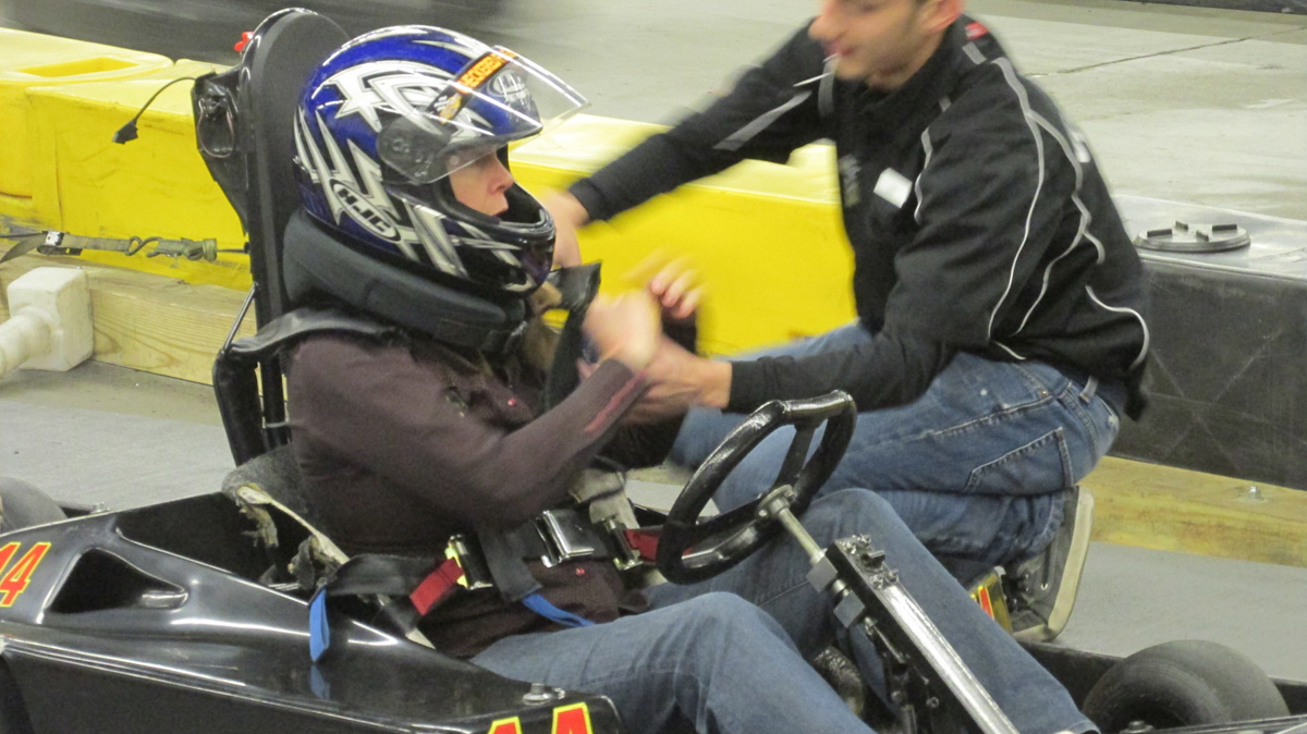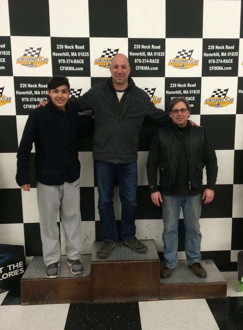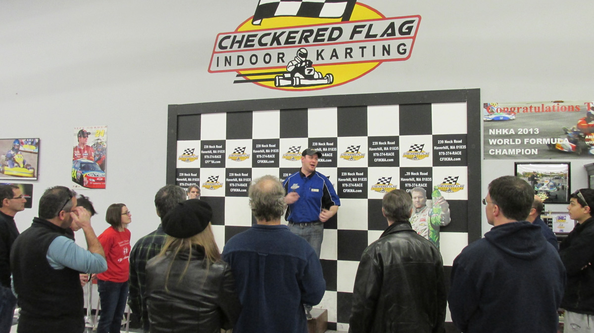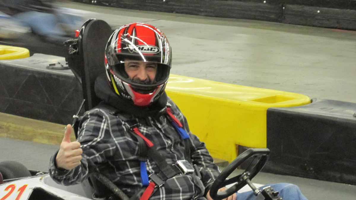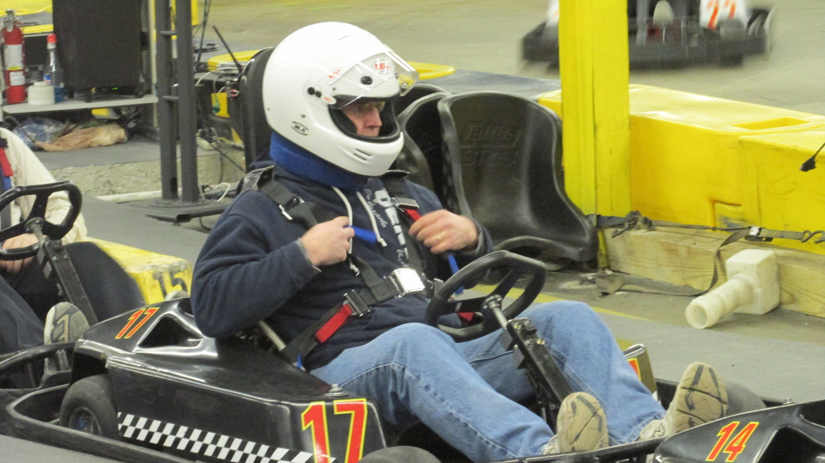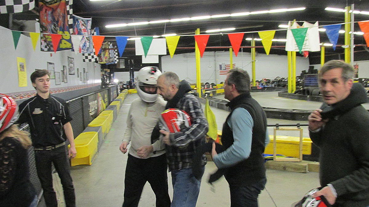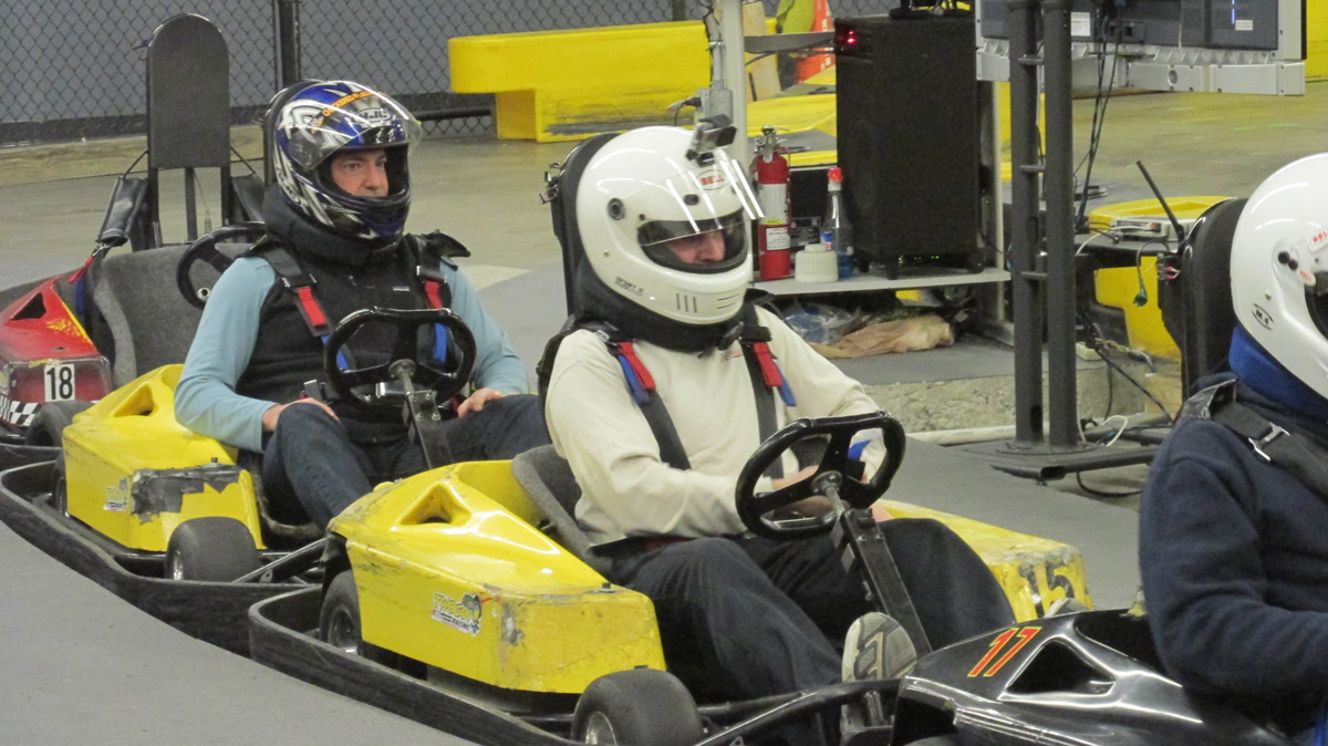 The inaugural AONE Kart Racing Event was a blast! The Winter weather was waning and the AONE racers were in top form! Eighteen members were on hand for a fun afternoon, while satisfying the NEED for SPEED. The race gang arrived at the scheduled time, some with trepidation about how they would perform once on the track. This wasn't without reason, as a number in attendance had brought their own helmets. "Say, haven't I seen pictures of that guy driving a race car at Lime Rock?"