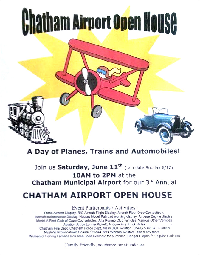 From 10am until 2pm, the Chatham Airport will be hosting their 3rd annual Open House. It is a day of Planes, Trains and Automobiles. Alfas are invited to enjoy this no-fee event, with displays of exotic cars, aircraft, and model trains. You can add a vehicle to the displays alongside aircraft or just come for the fun. There will be food, a flower drop competition for aircraft, remote controlled planes, aviation art, raffles throughout the day, and displays by fire, police, life safety and armed forces units. Please come and enjoy the day!