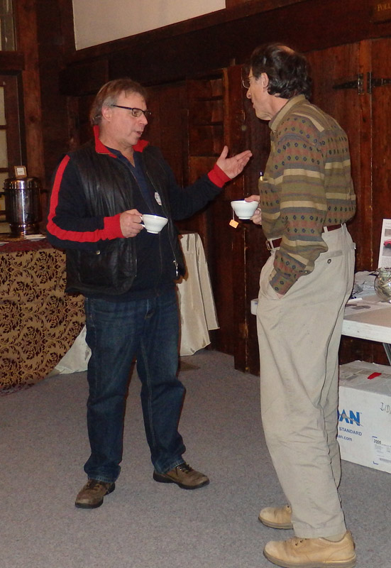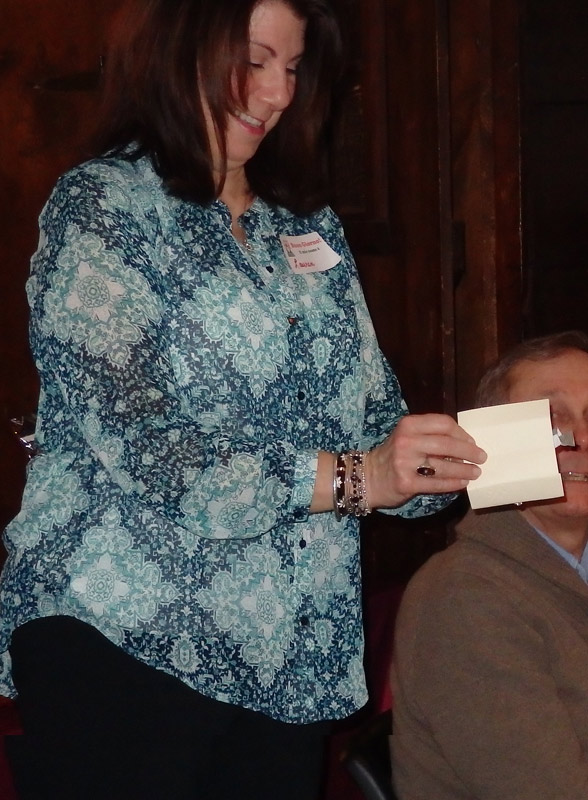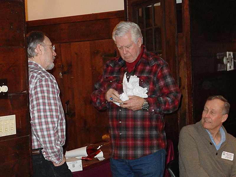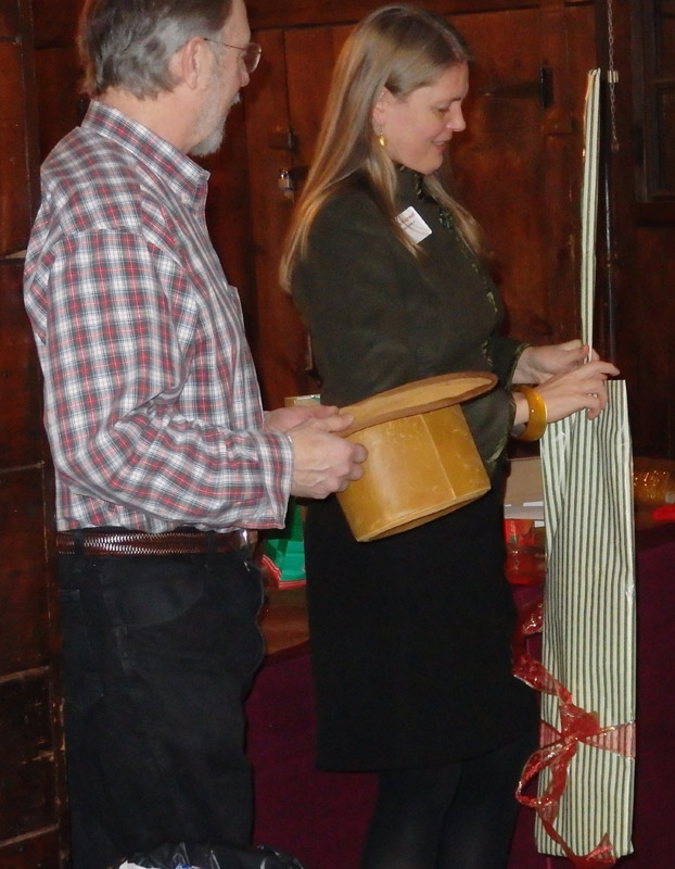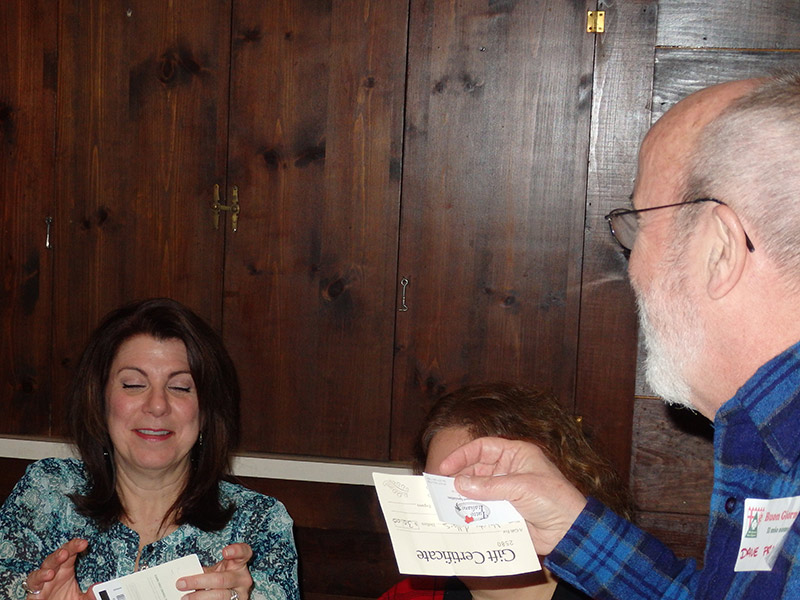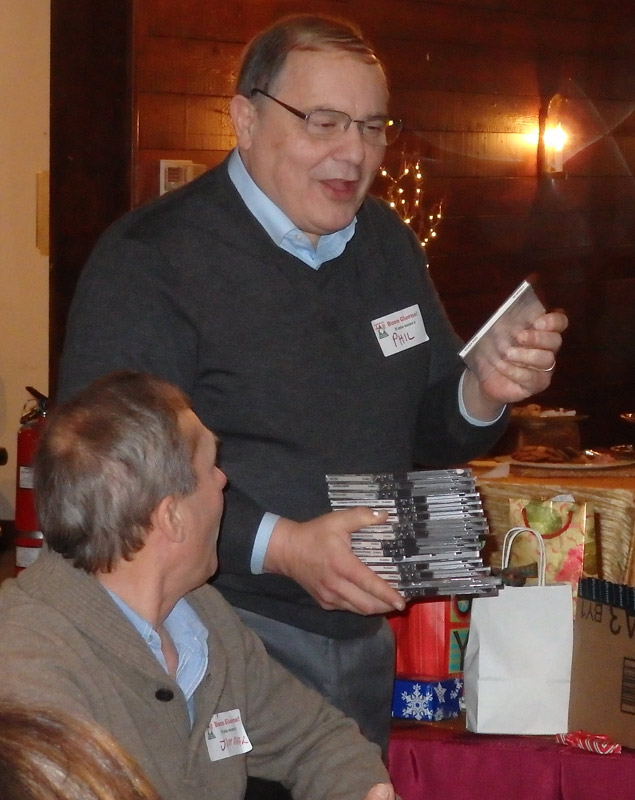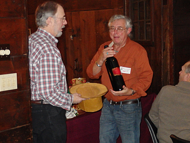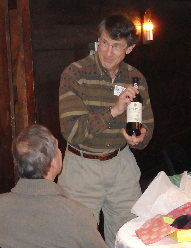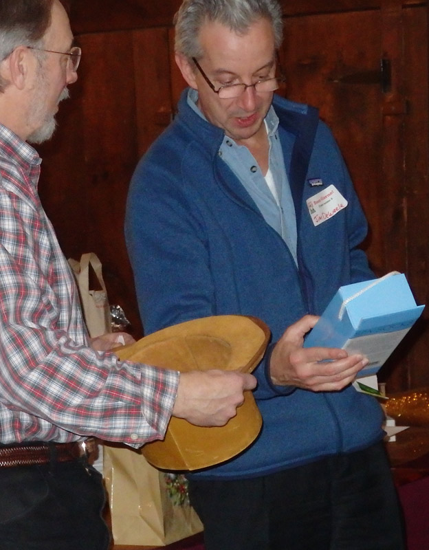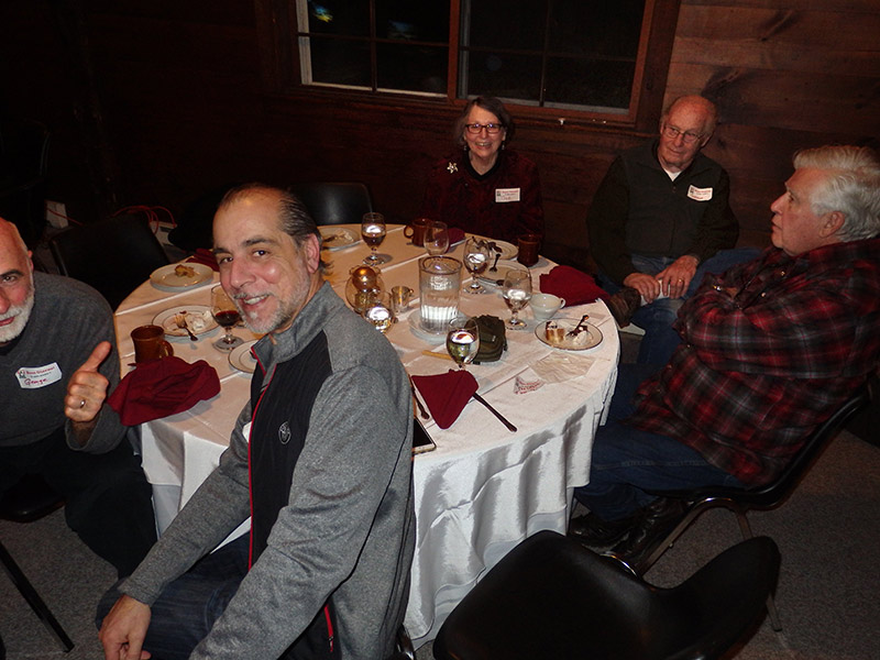 Text and photos by Dave Pratt Well, we did it again! Pulled off another one of our warm and fun annual AONE Holiday Parties at the Josiah Smith Tavern in Weston, MA, on Saturday, December 17th. Mother Nature threatened to make this one a little dicey, having dumped around five inches of snow in our area the very morning of our soiree. But rising temps and a change to rain (and eventually no precipitation at all) made travel easier than it could have been, and no one canceled due to the weather! The Town of Weston, though, completely ignored plowing out the Tavern. President Tom Lesko had to shovel out in front of the door, in order for the caterers (and us) to get in, and later Dan Donovan was spotted shoveling out the mouth of the driveway. (Wish I'd gotten a photo of that!) Only as we were leaving, over four hours later, did the town plow come through! But all was well once the three dozen of us were inside, where we were welcomed by the friendly and capable Tastings Caterers wait staff, who wandered among us offering their delectable hors d'oeuvres. The various beverages we'd brought were uncorked and uncapped, and we proceeded to enjoy the food, drink and each other's company. Besides the delights delivered to us on trays, there was a table set up with even more offerings in the appetizer department. Tom Lesko had also prepared a free-running slide presentation displaying photos from all of our AONE events of the past year, accompanied by some holiday background music. (In one of the slides from the Cape Crusade, Tom fittingly displayed my Lesser Car upside down.) When the main course was announced as ready for us to partake, we all grabbed plates and descended on the buffet. Our caterer again provided us with their excellent cuisine and didn't disappoint! We were all seated around five large tables, and it was easy to tell by watching and listening what a great time everyone was having. As promised, Tom did not wear his Alfa party shirt, and no one had to participate in our sing-along of corrupted Alfa-centric Xmas tunes that we've forced on you in previous years. In fact, only one person even mentioned it (Hi, Angela!), so it was surely not missed. Just as Gene Durso sat down with his dessert, a candle got stuck in it, became ignited, and the crowd belted out an impromptu 'Happy Birthday' in his honor. What better way to cap a birthday than at the AONE Holiday Party! (And at least we got to do a little singing.) Finally, the moment everyone was waiting for arrived — the start of the Yankee gift swap! It's always a ton of fun, and this year's was no exception. Interestingly, last year there were seven bottles of Limoncello, but this year there was none! Still, a lot of nice bottles of wine (and other fluids) traded hands, as well as many other neat gifts. If you look through the photos, you'll get an idea of the variety of interesting items that found new homes. Our thanks go once again to Tom Lesko for making all the arrangements for our always eagerly-anticipated annual Holiday Party. Great food, venue, people ... and hence a great event! |